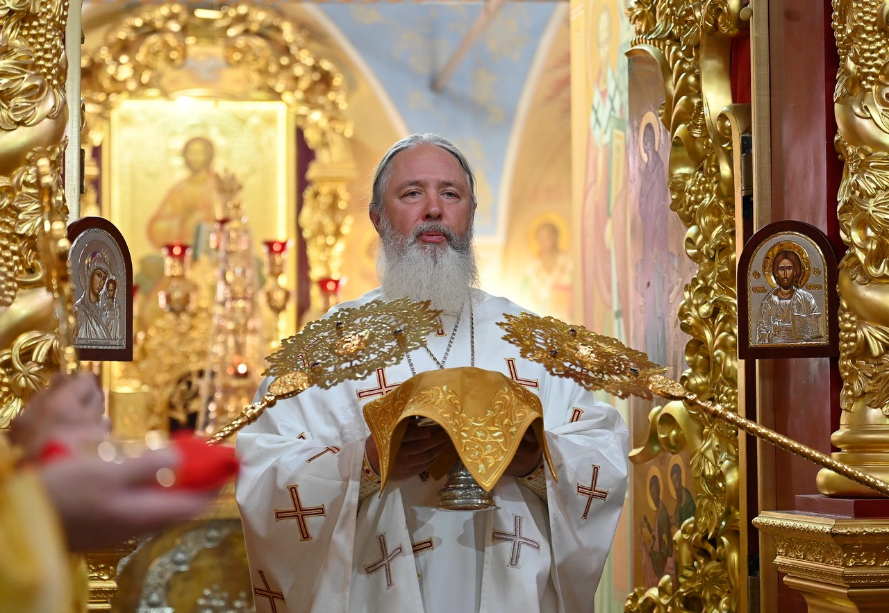 Правящему архиерею сослужили секретарь Иркутской епархии и ключарь собора священник Стефан Бажков, протоиерей Андрей Тарасов...