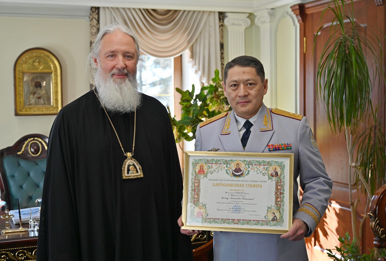Вручая Благословенную грамоту генералу-лейтенанту Леониду Сагалакову, митрополит Максимилиан пожелал ему Божией помощи в трудах по воспитанию, исправлению и наставлению на путь истинный его подопечных и выразил надежду на дальнейшее плодотворное сотрудничество с Иркутской митрополией. ...