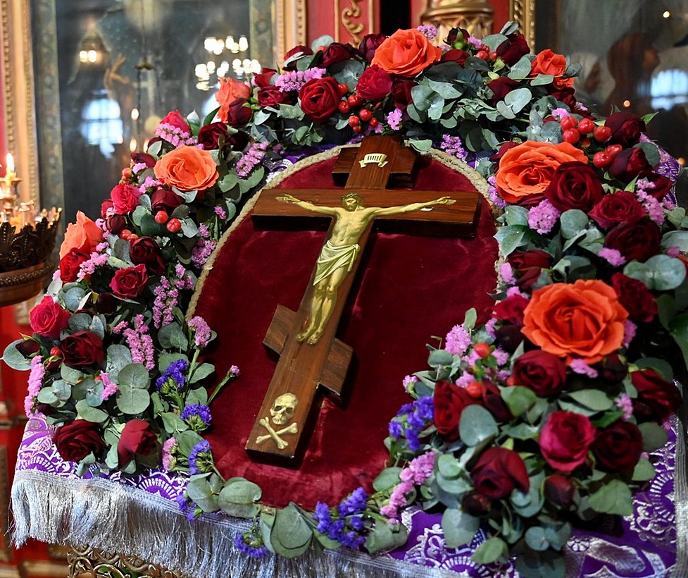 На утрени правящий архиерей изнес из алтаря на середину храма Крест Господень, который по Уставу Святой Церкви традиционно выносится в этот день для поддержания в середине поста духовных сил христиан. ...