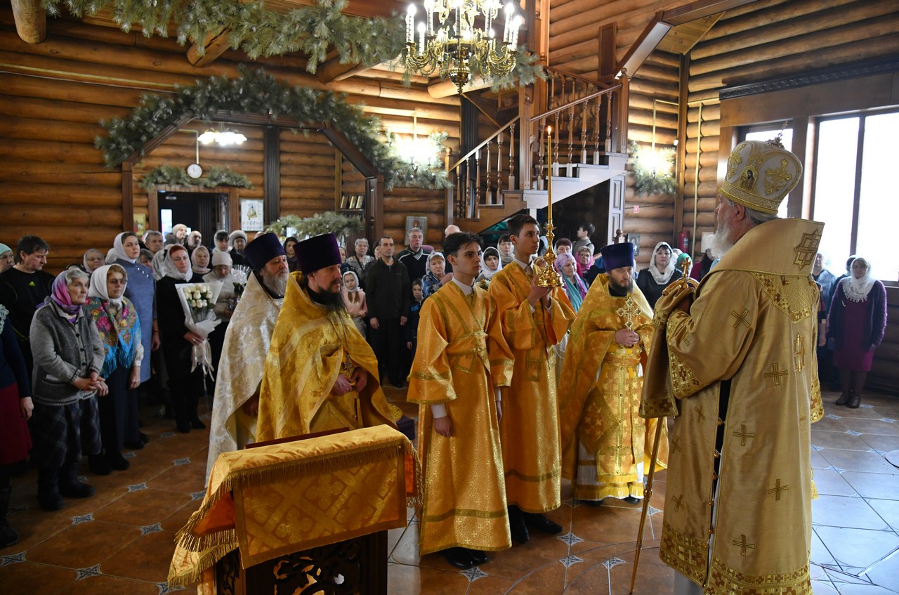 В приветственном слове к молящимся митрополит Максимилиан поздравил всех с Воскресным днём - Неделей о блудном сыне - и попразднством Сретения Господня; подчеркнул опасность заблуждения в разных сферах жизни, опасности духовного, умственного и физического блуда и пожелал каждому жить истинно по-христиански по Воле Божией.