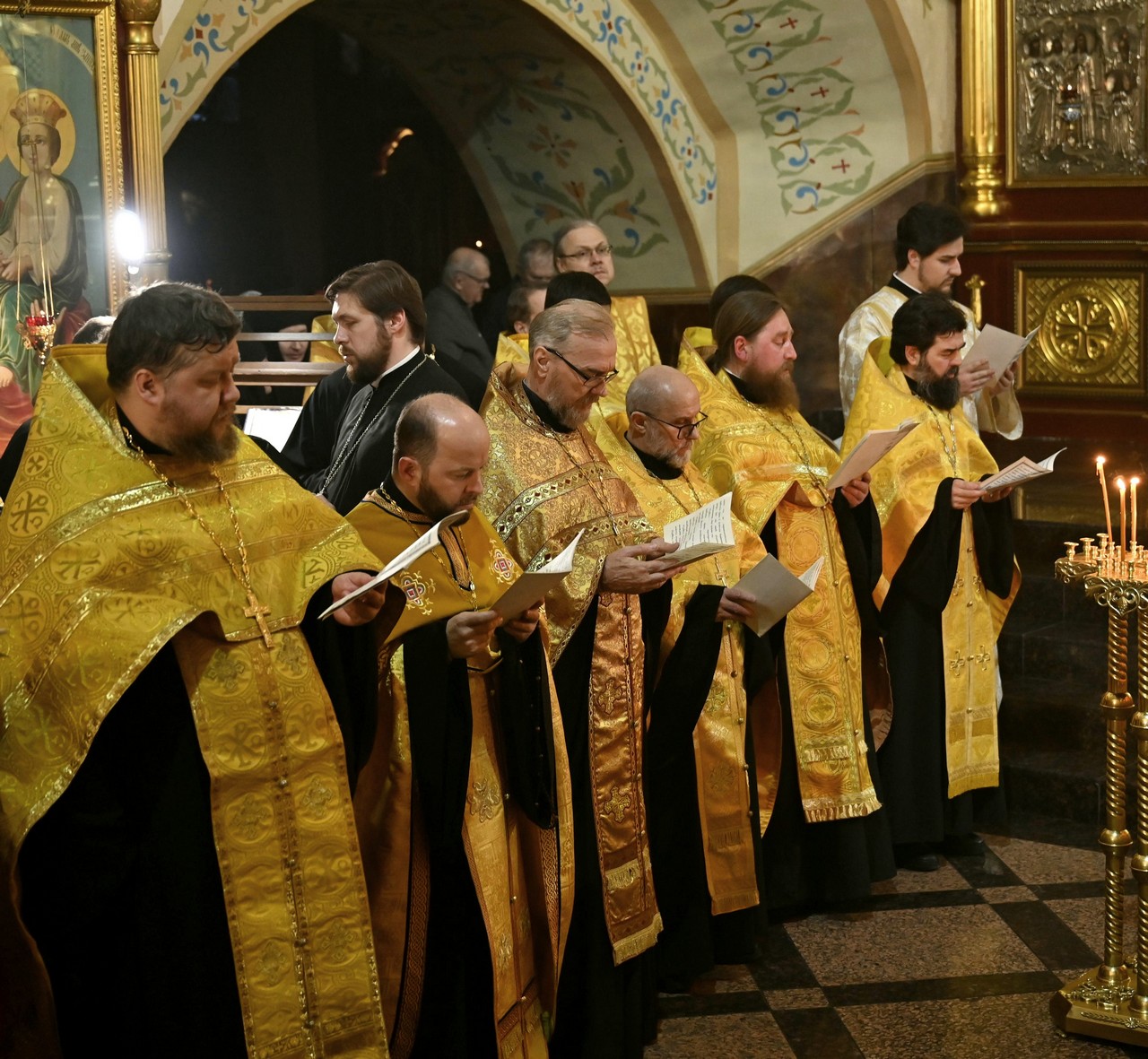 Песнопения всенощного бдения и акафиста исполнили правый хор Богоявленского кафедрального собора (регент - Галина Левина) и епархиальный хор (регент - Трофим Поподько).