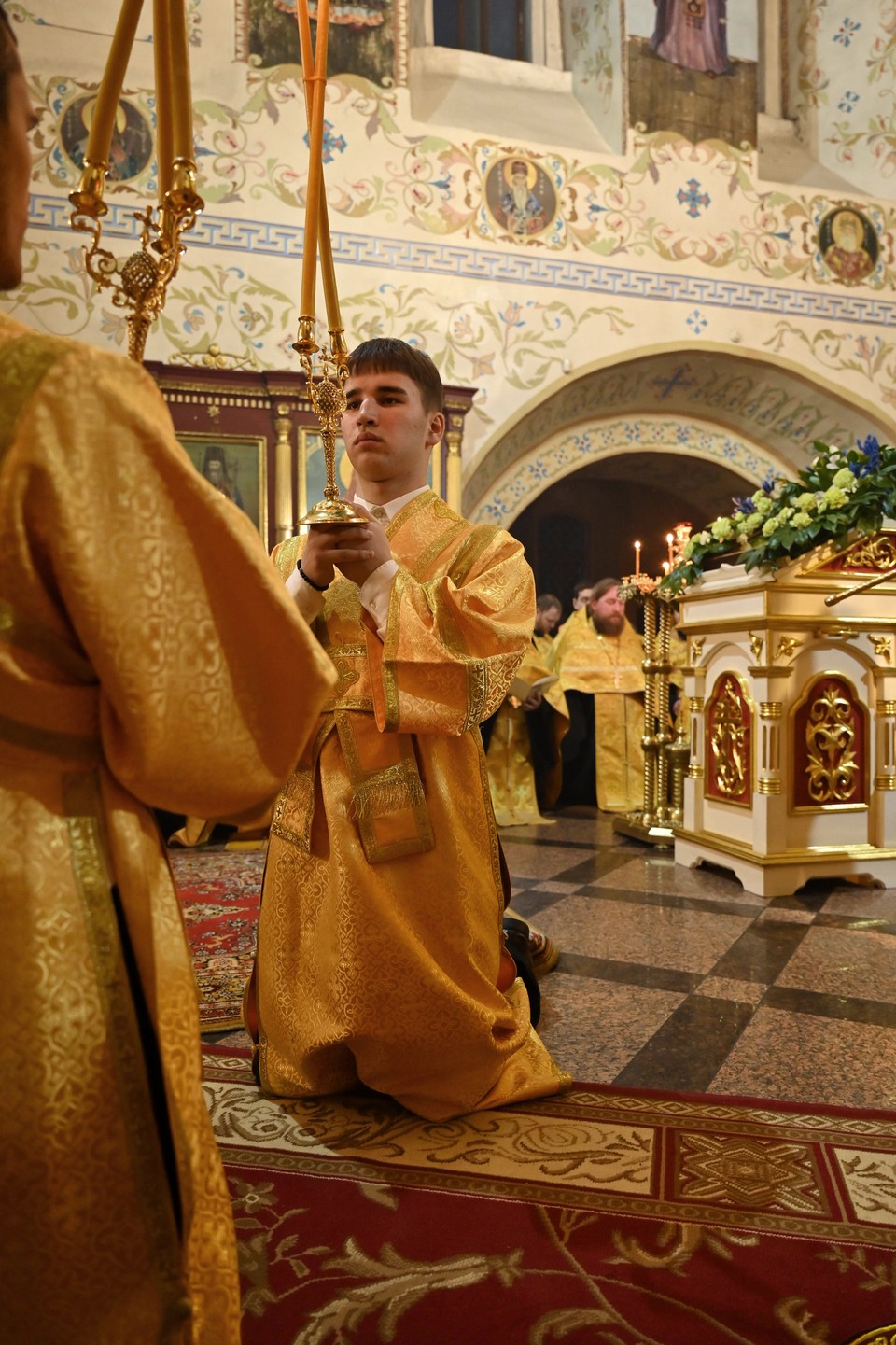 20 февраля 2025 года, накануне празднования Первого обретения мощей святителя Иннокентия Иркутского, Первого епископа Иркутского, в Знаменском соборе состоялось торжественное всенощное бдение с пением акафиста. Возглавили праздничное богослужение четыре архиерея: митрополит Иркутский и Ангарский Максимилиан, митрополит Омский и Таврический Дионисий, епископ Саянский и Нижнеудинский Алексий и епископ Братск и Усть-Илимский Константин.