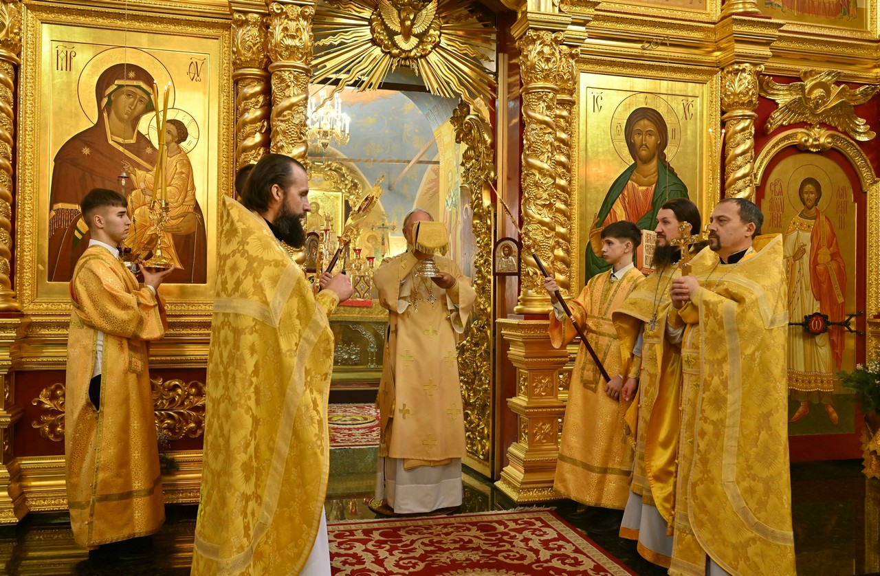 Воскресная Божественная литургия архиерейским служением 2 марта 2025 года, в Неделю Сыропустную, Воспоминания Адамова изгнания, состоялась в кафедральном соборе Богоявления Господня.