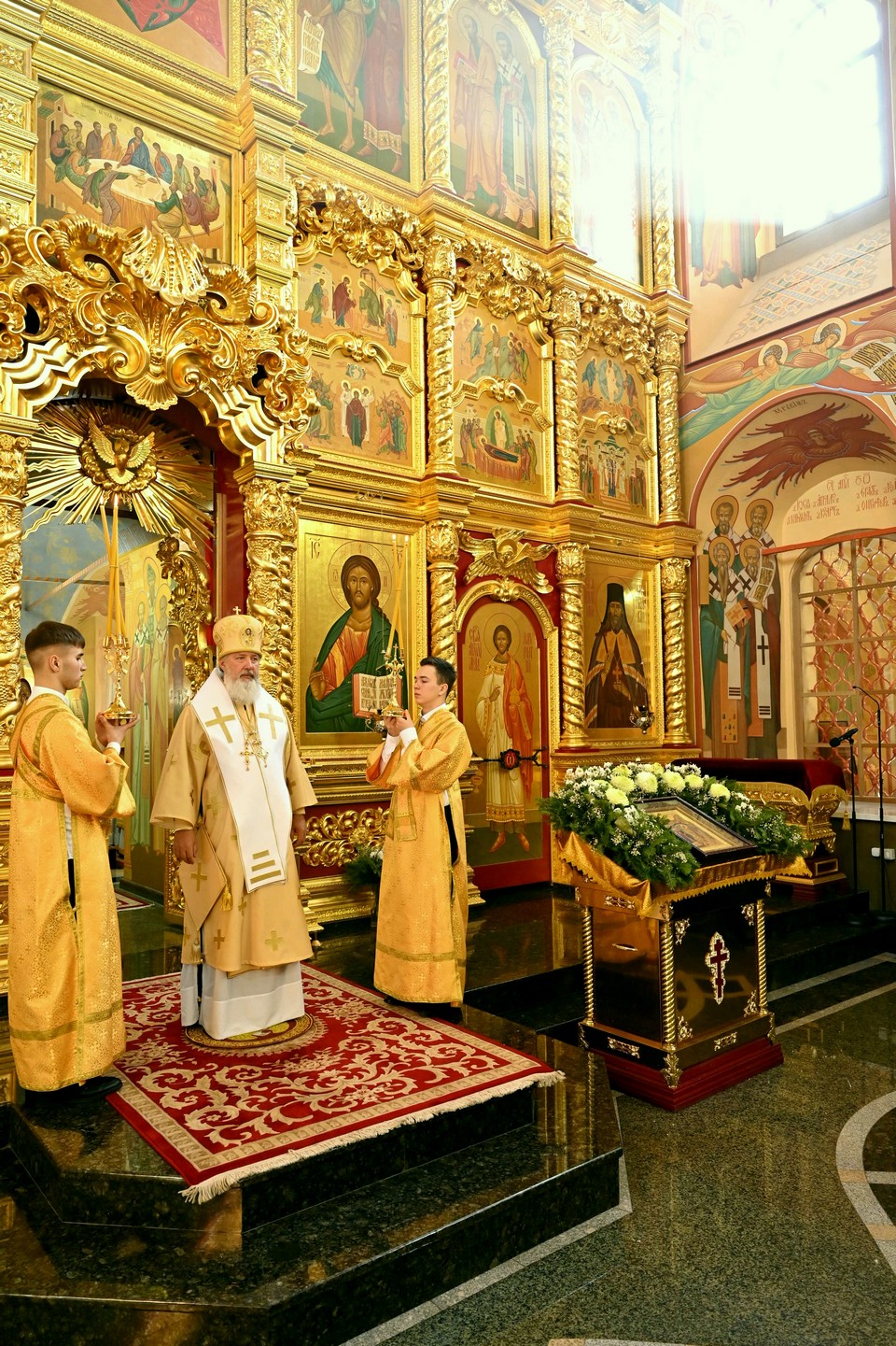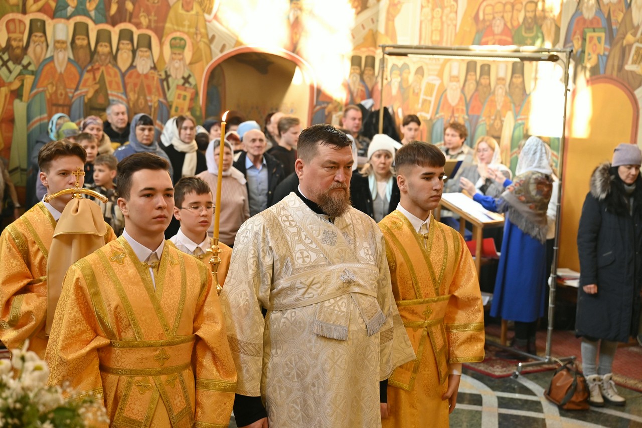 Высокопреосвященнейшему владыке сослужили клирики собора: ключарь храма, секретарь иркутской епархии священник Стефан Бажков, протоиерей Андрей Тарасов, священник Евгений Копытов, священник Вячеслав Куприянов, протодиакон Димитрий Бухаров и диаконы Петр Новоселов и Владимир Соколов.