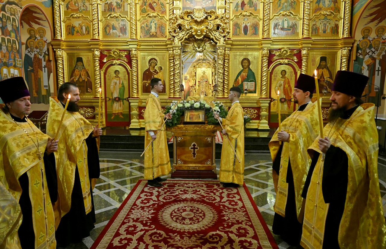 Накануне митрополит Иркутский и Ангарский Максимилиан возглавил в соборе служение всенощного бдения.