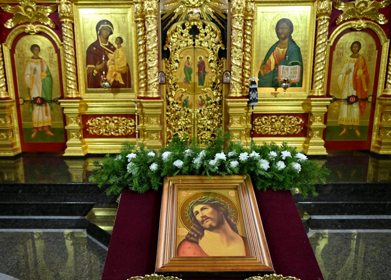 Правящему архиерею сослужили братия собора: ключарь храма священник Стефан Бажков, протоиерей Андрей Тарасов, священники Сергий Новиков, Евгений Копытов и Вячеслав Куприянов.