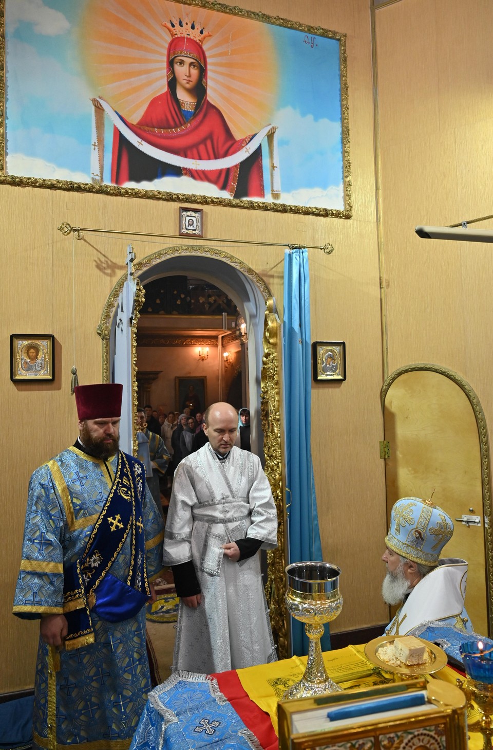 В проповеди перед Причастием настоятель храма протоиерей Александр Маликов подчеркнул, что «высшим служением Богу является право печалиться о ближних и приносить их скорби ко Господу», как до сих пор приносит ко Господу наши скорби и печали Пресвятая Богородица, находясь уже пред Престолом Божиим.