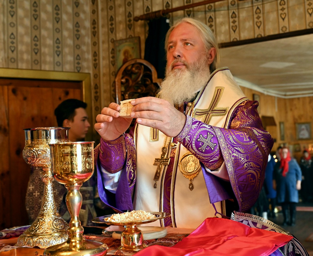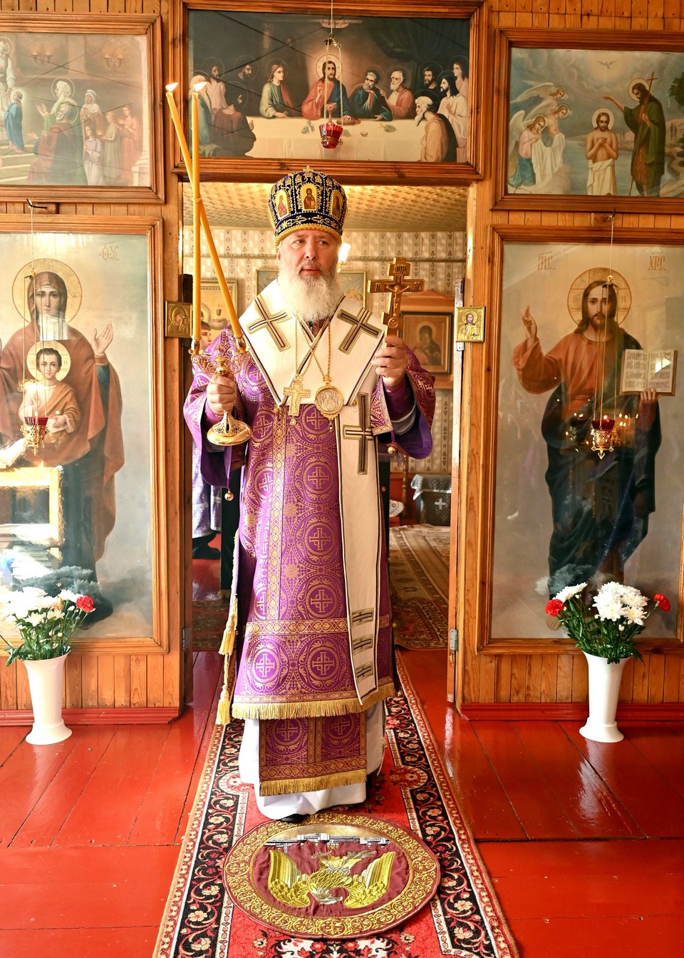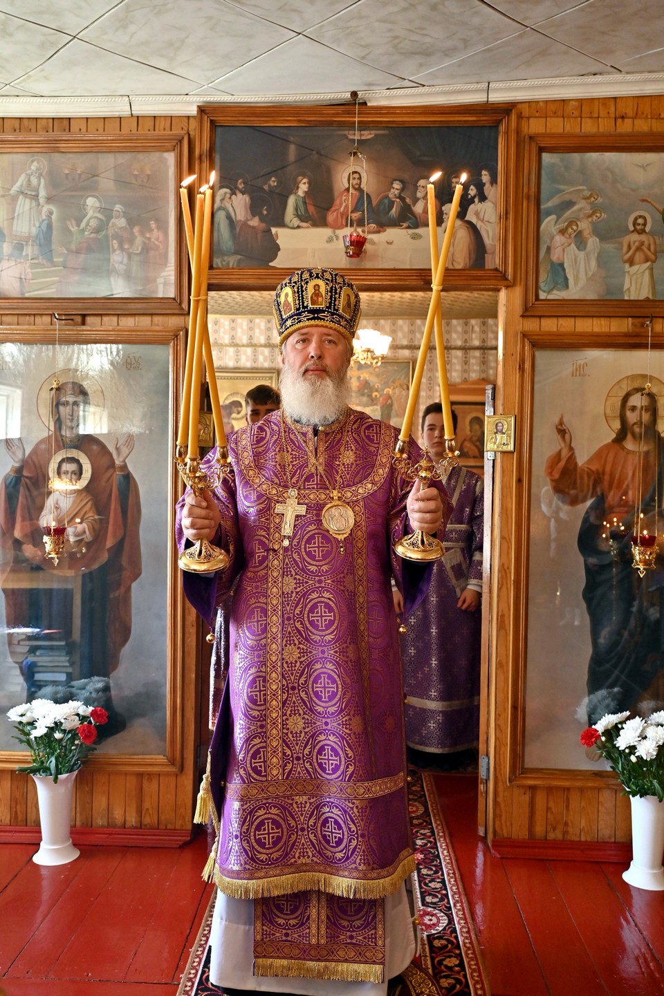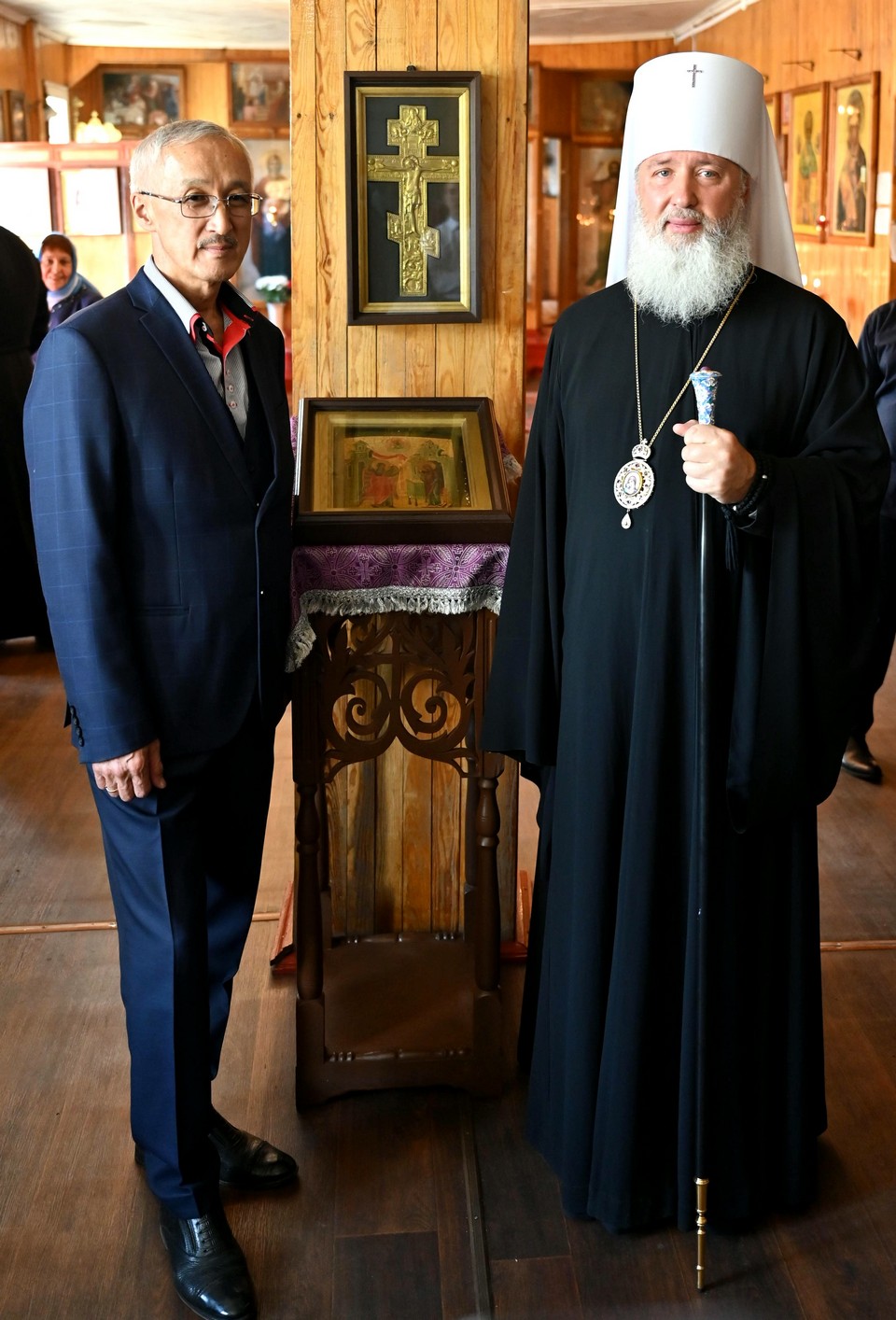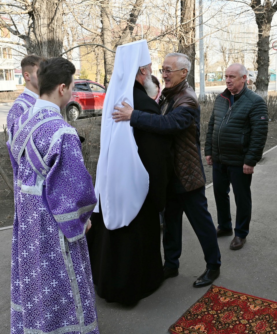 На богослужении присутствовал также Владимир Степанович Орноев, мэр города Свирска, который встретил правящего архиерея перед началом службы.