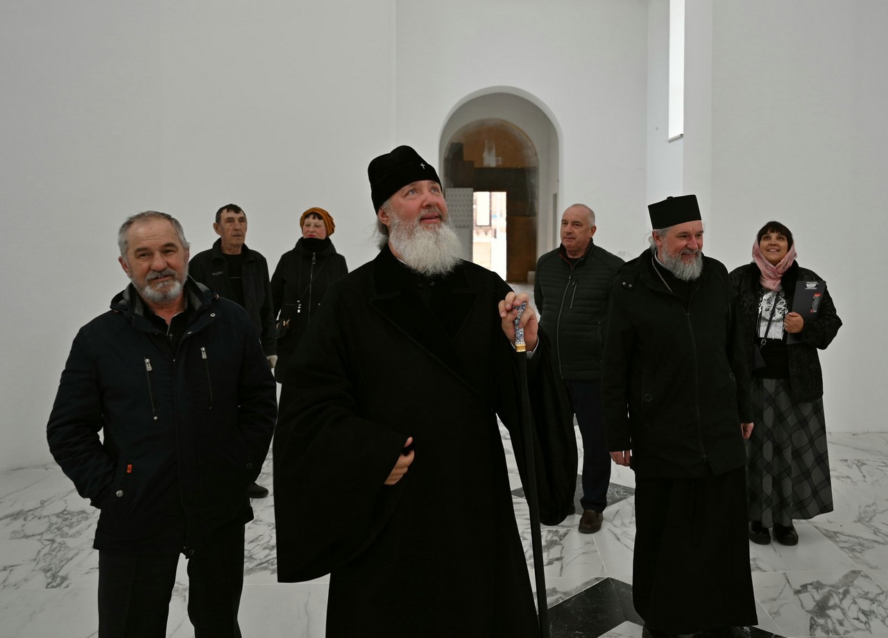 По окончании богослужения митрополит Максимилиан в сопровождении мэра города Владимира Орноева, представителей администрации, благочинного и настоятеля храма и духовенства осмотрел строящийся храм.