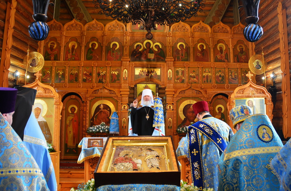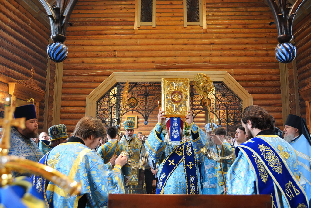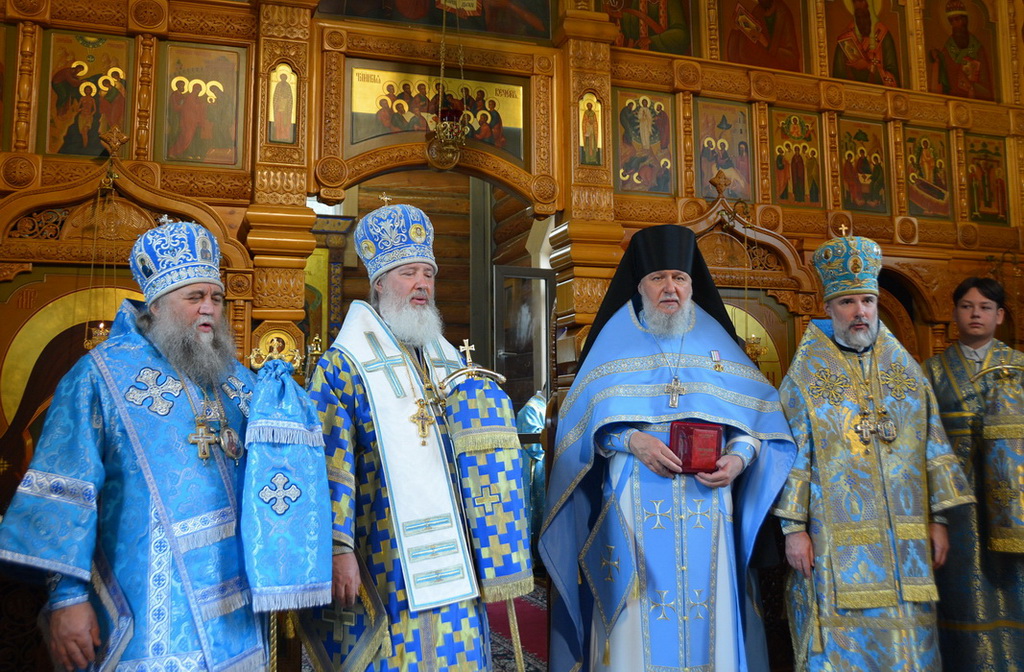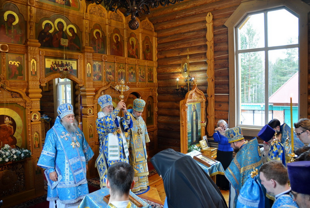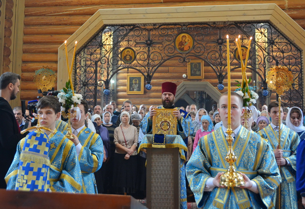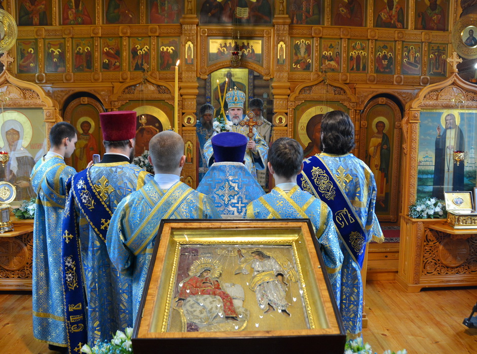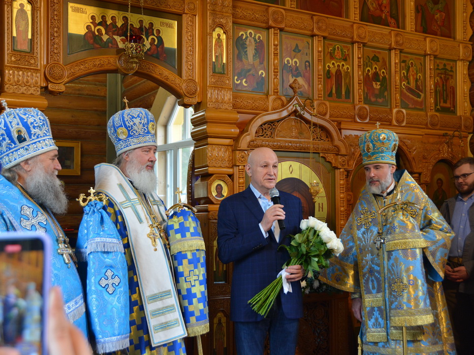 Перед богослужением архипастыри приняли участие в торжественной церемонии передачи православному приходу кафедрального Благовещенского храма исторической иконы Благовещения. Святыню, находившуюся в семейном иконостасе, передал верующим Саянска Почётный гражданин города Виктор Кузьмич Круглов.