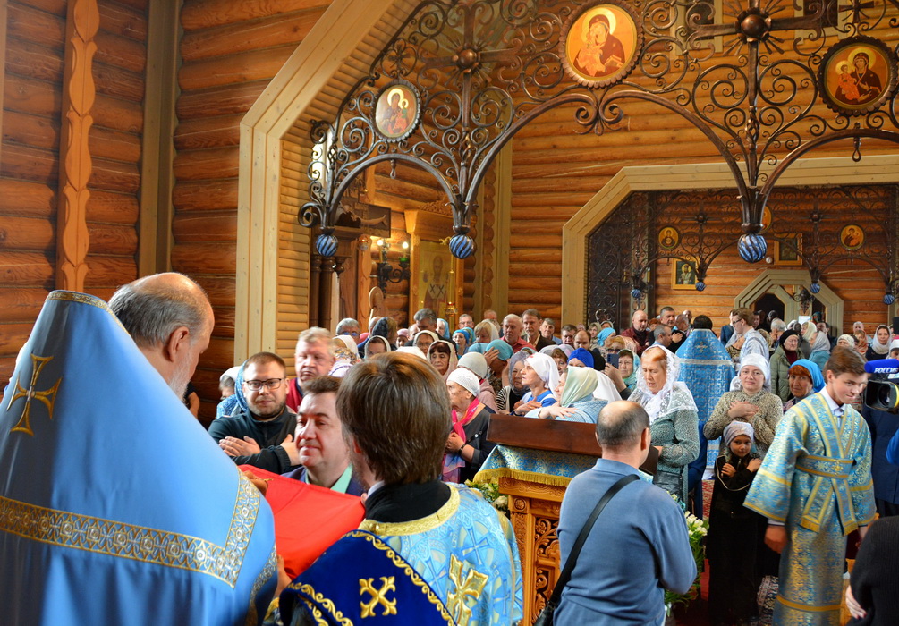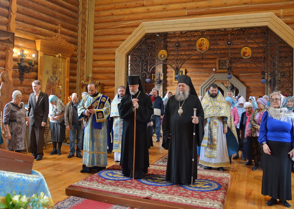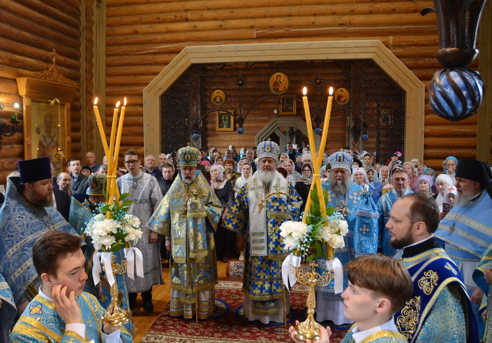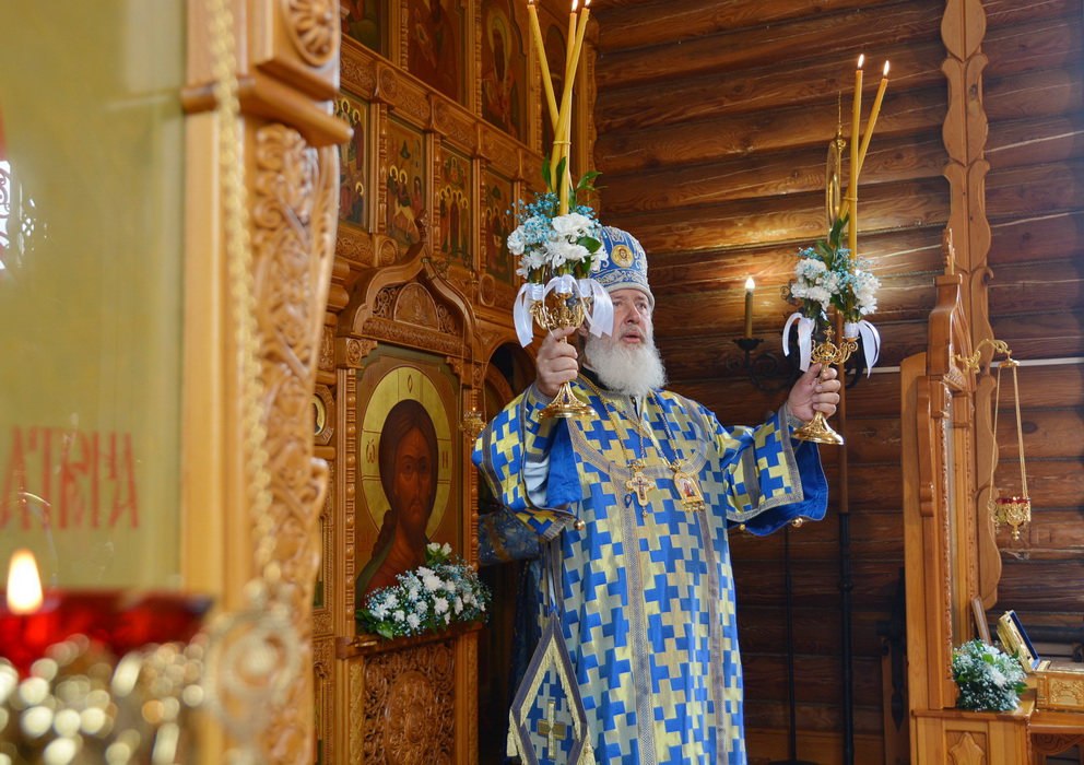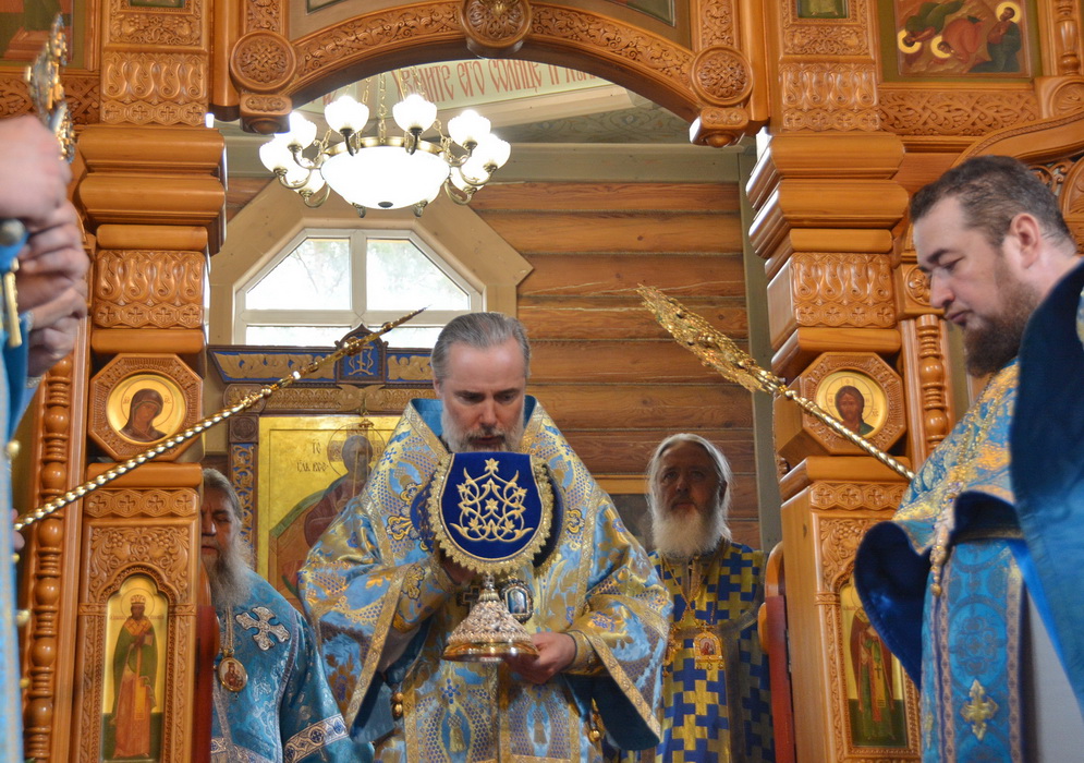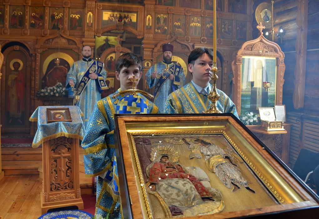 Перед богослужением архипастыри приняли участие в торжественной церемонии передачи православному приходу кафедрального Благовещенского храма исторической иконы Благовещения. Святыню, находившуюся в семейном иконостасе, передал верующим Саянска Почётный гражданин города Виктор Кузьмич Круглов.