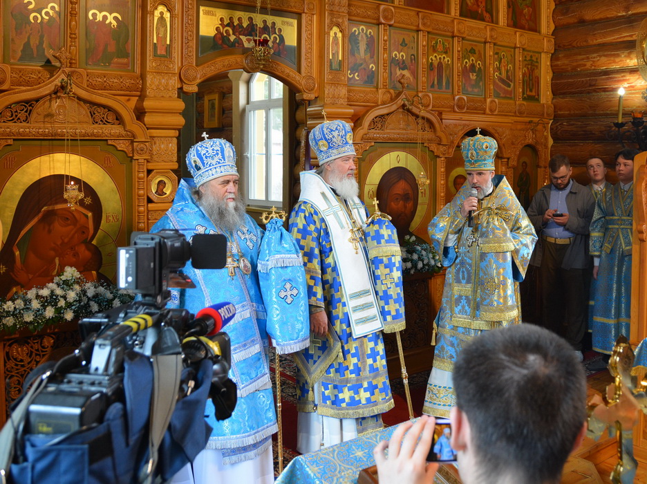 После богослужения, по праздничной традиции, митрополит Максимилиан, епископ Алексий, епископ Константин, иеромонах Алексий (Середин), А.В.Ермаков в окружении прихожан отпустили в небо голубей.