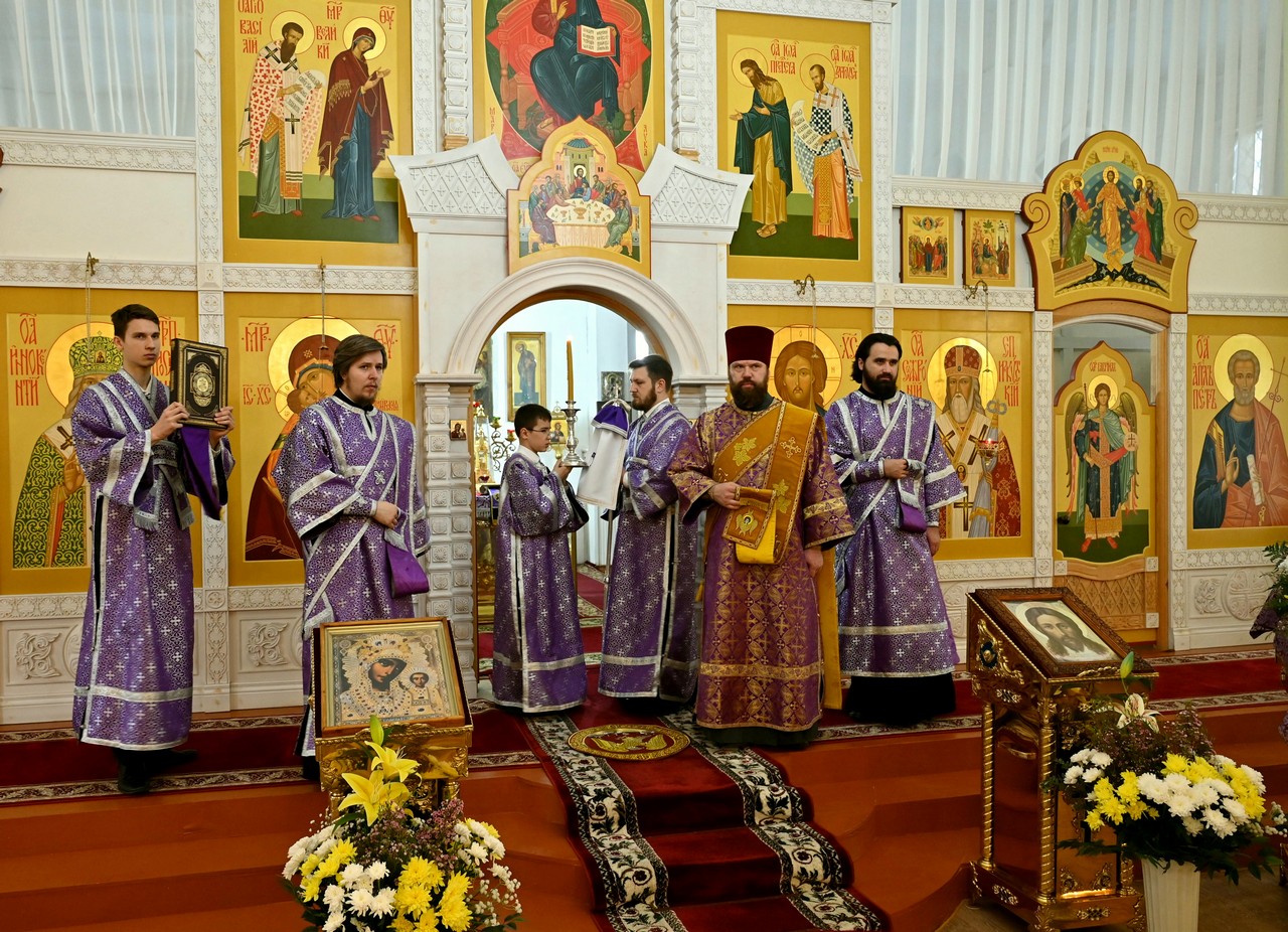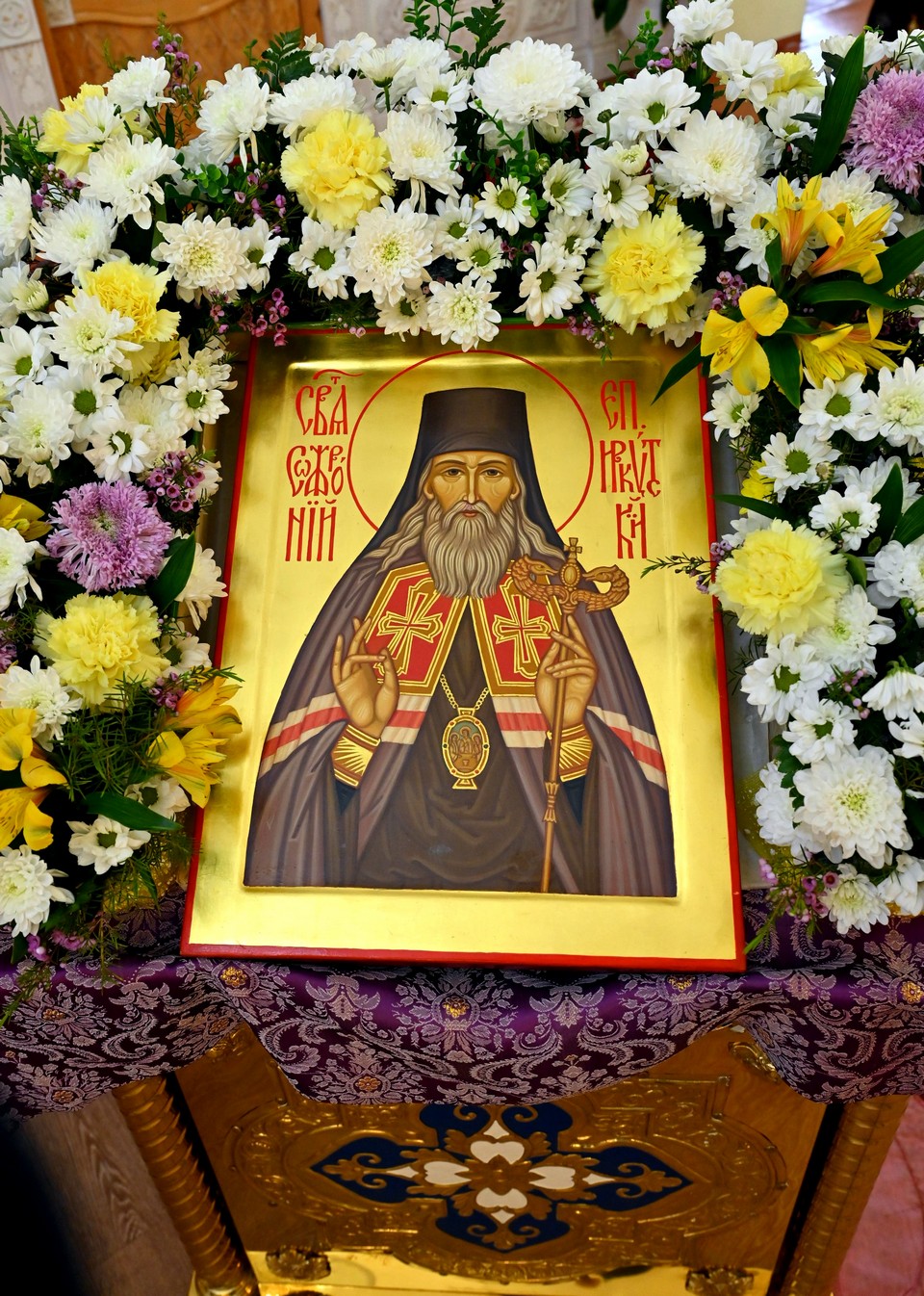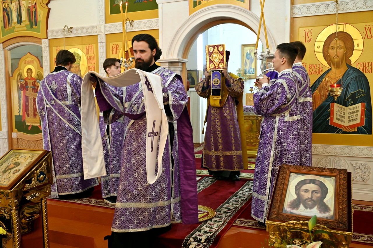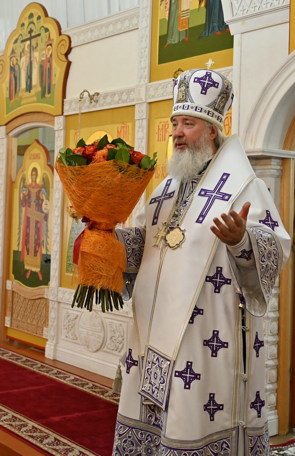 Приветствуя прихожан, владыка Максимилиан сердечно поздравил всех с праздниками сегодняшнего дня, отметив богоугодные дела святительского служения Лазаря Четверодневного, ставшего впоследствии епископом на Кипре, и святителя Софрония Иркутского. Оба святых были руководителями поместных Церквей и много потрудились на ниве Христовой для спасения порученных им Богом человеческих душ и устроения Христовой Церкви.