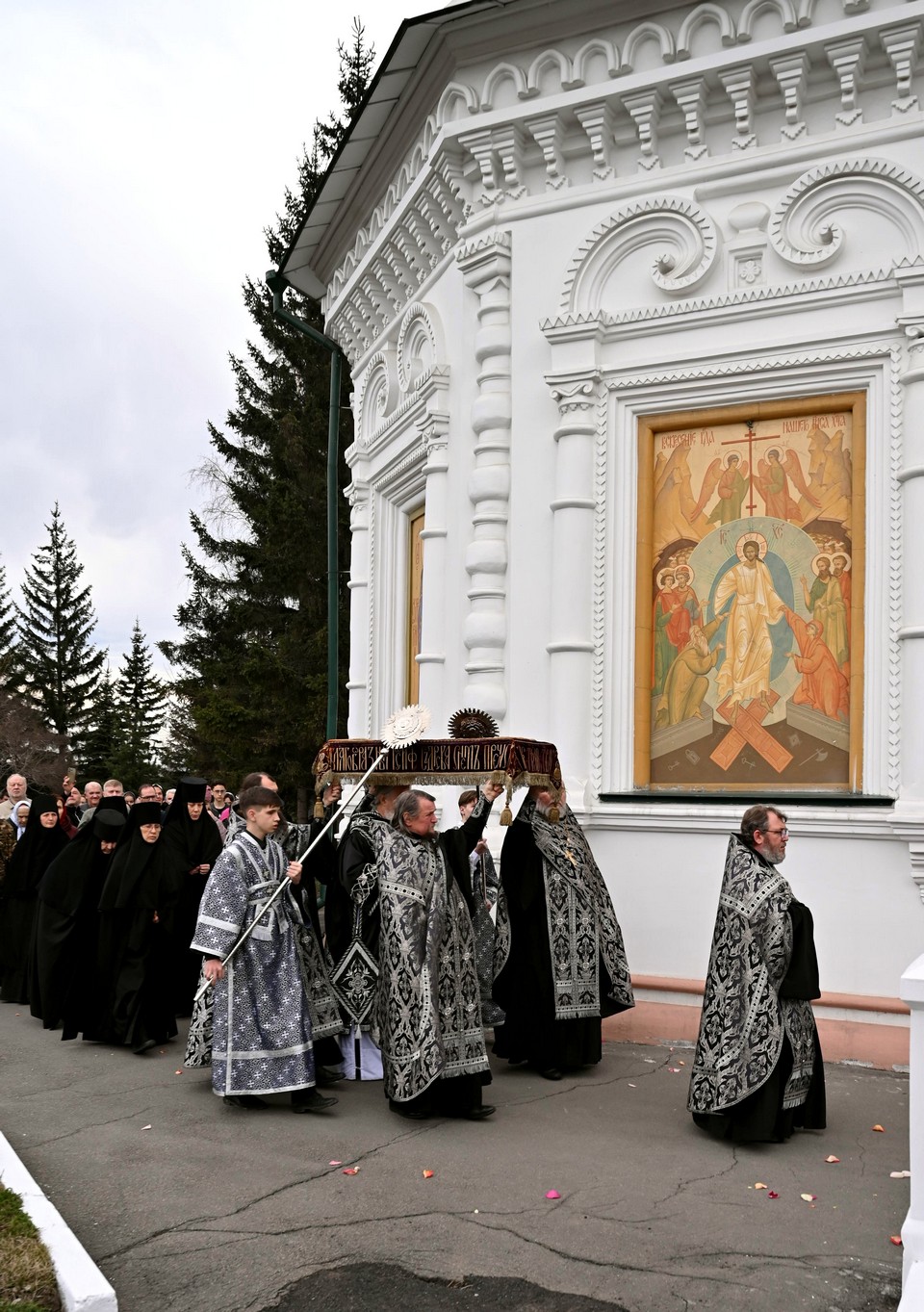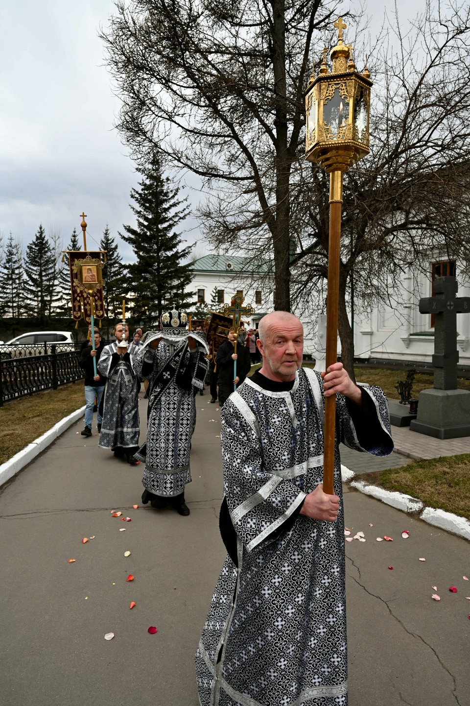 Вечером 18 апреля 2025 года, в канун Великой Субботы, митрополит Иркутский и Ангарский Максимилиан совершил утреню с чином погребения Господа нашего Иисуса Христа в Знаменском соборе Иркутска.