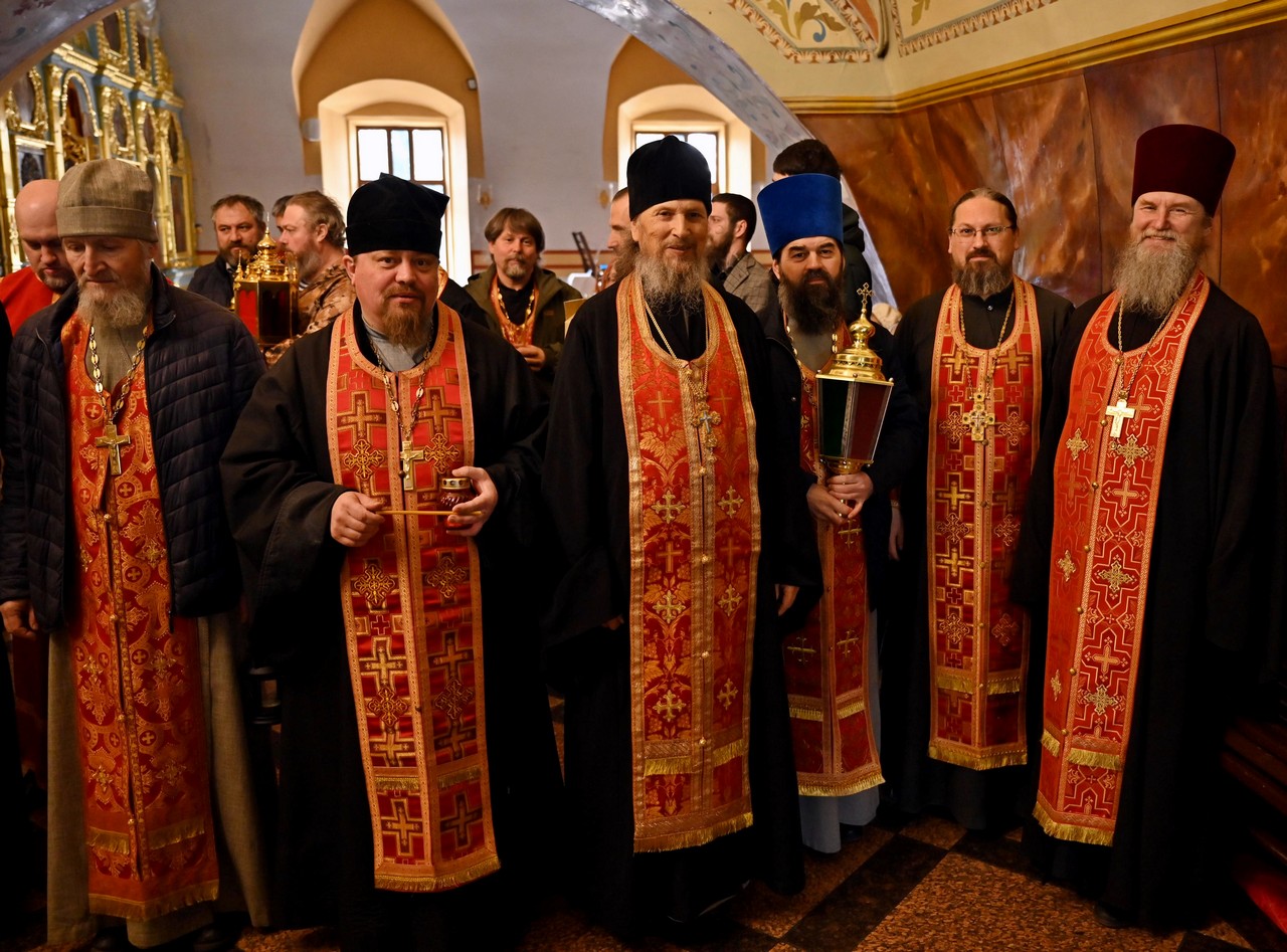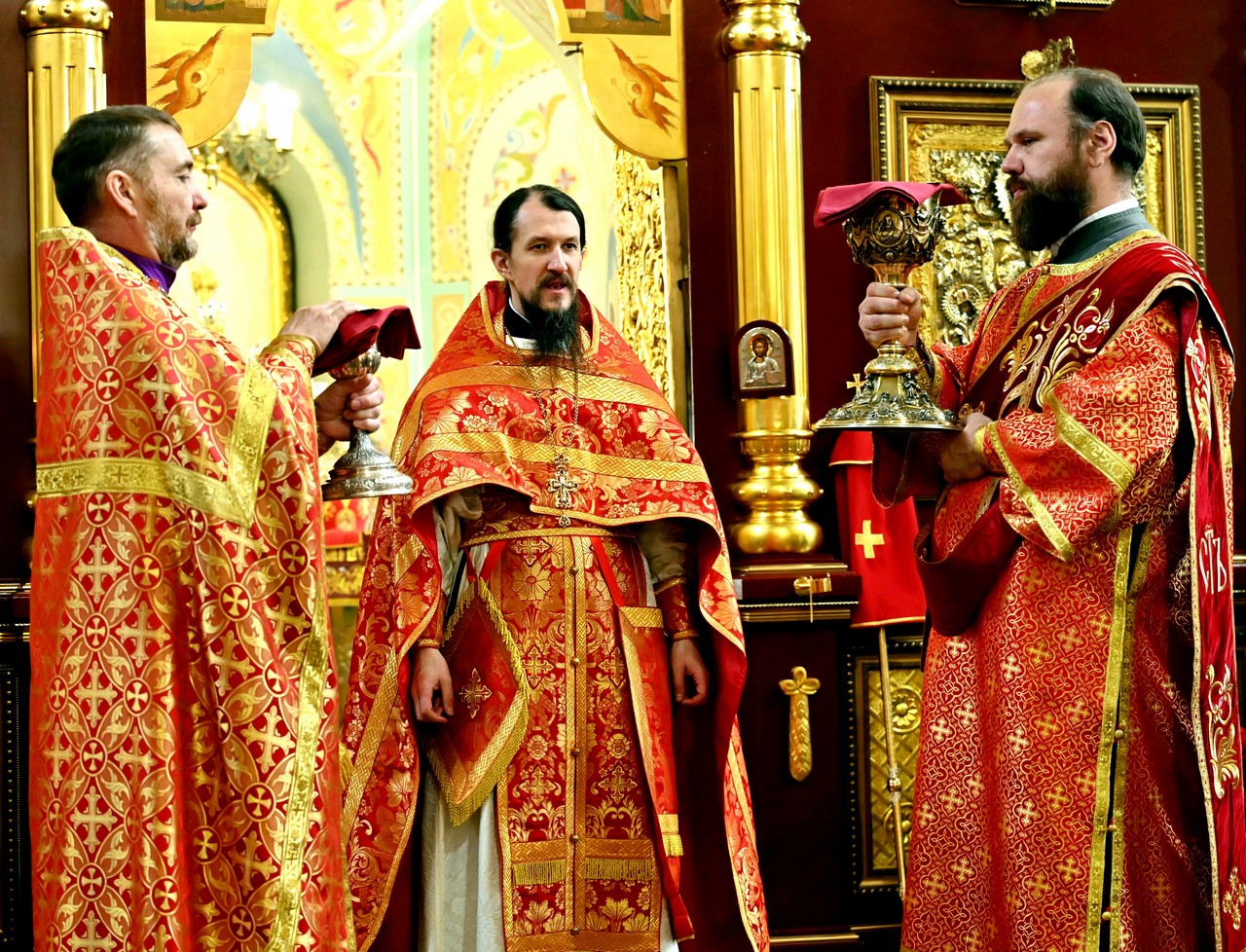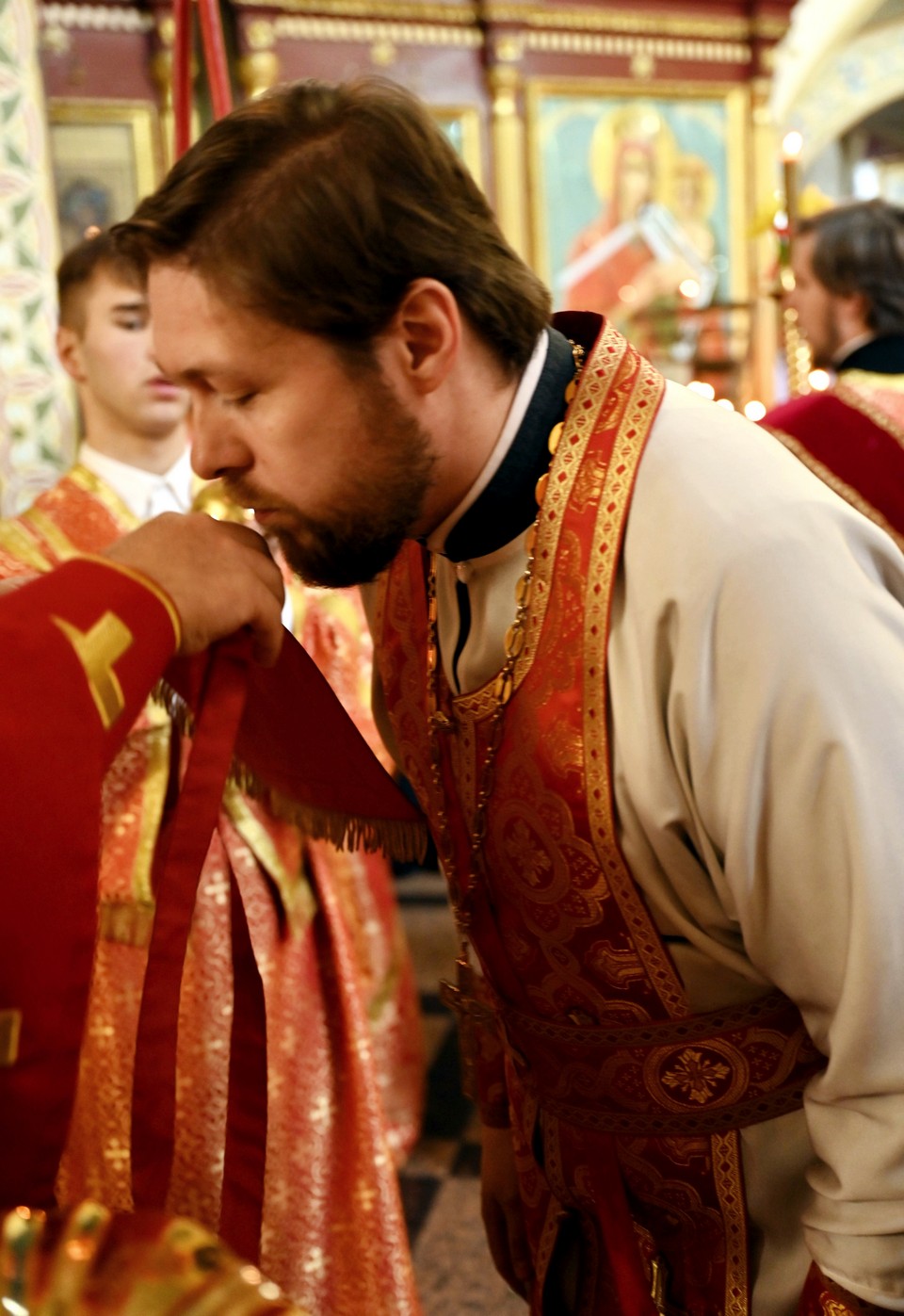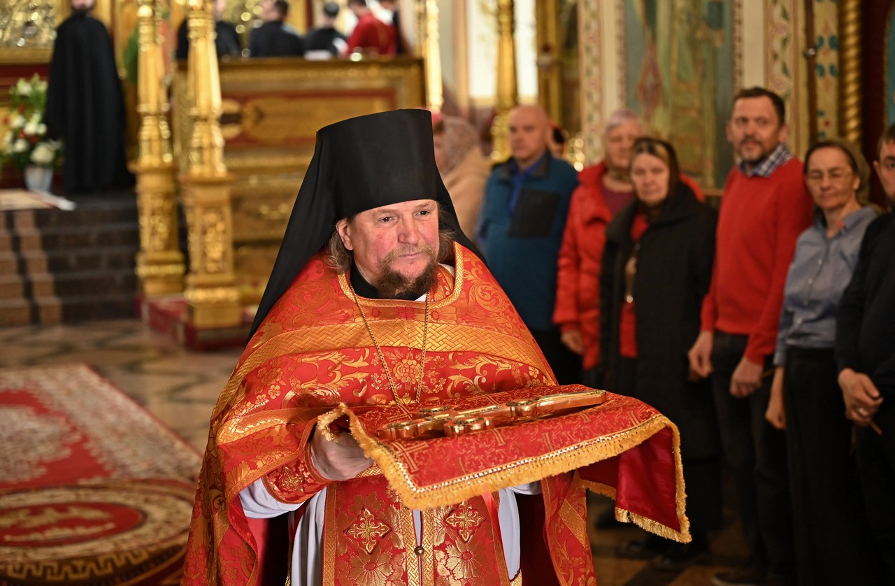 В честь праздника Святой Пасхи по завершении Входа с Евангелием владыка Максимилиан наградил нескольких клириков Иркутской епархии иерархическими наградами.