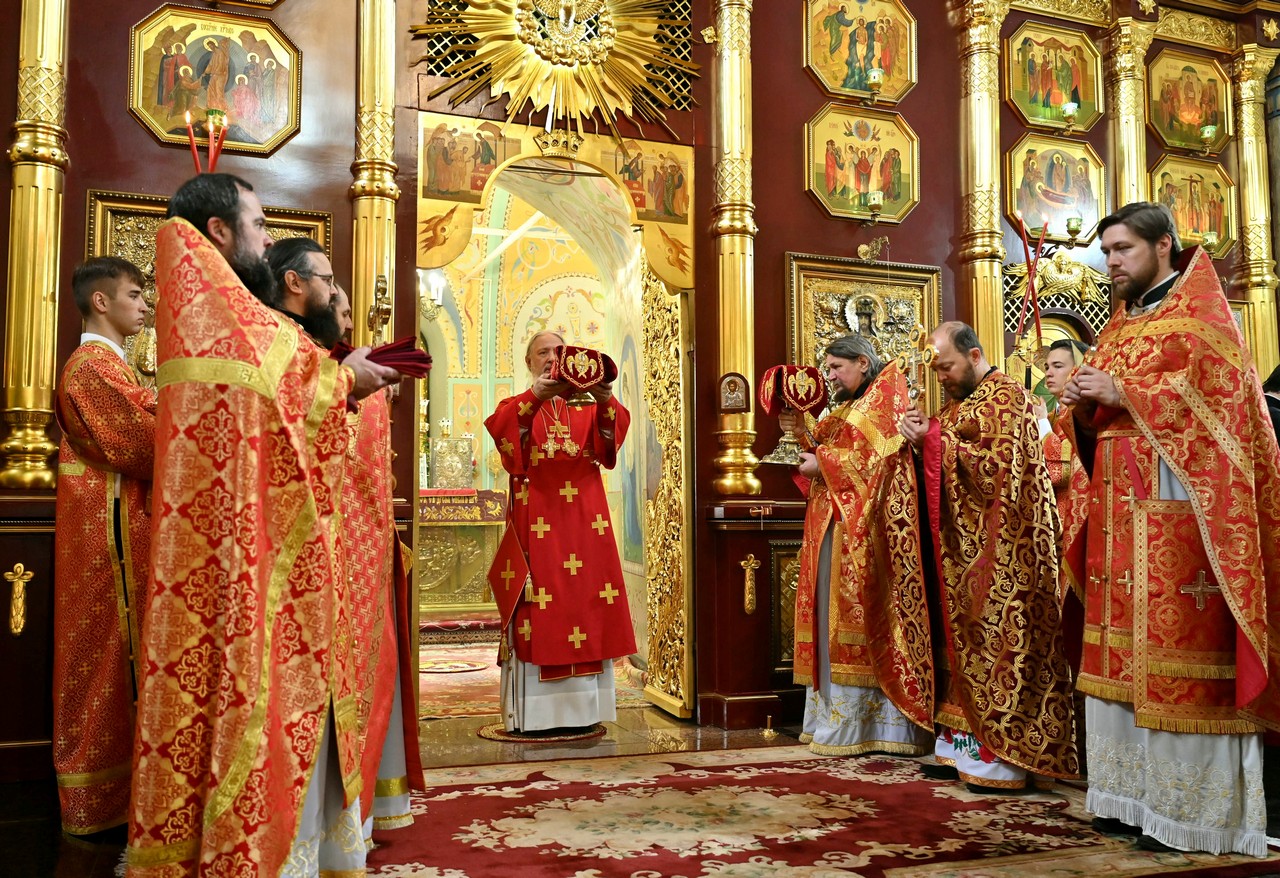 Соборную Божественную литургию в Знаменском монастыре возглавил митрополит Иркутский и Ангарский Максимилиан в сослужении духовенства епархии.