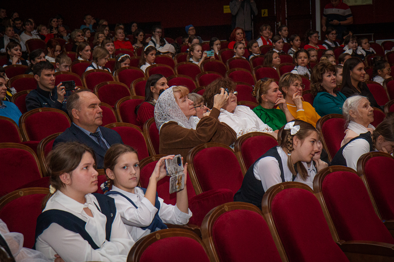 Открыл концерт церковный хор гимназии. По традиции, каждый класс гимназии постарался приготовить номер к праздничному концерту. Кроме того, в концерте приняли участие воспитанники ансамблей «Илиотропион» и «Узорочье», кадеты и даже дети с ограниченными возможностями здоровья. Театральная студия гимназия подготовила для концерта добрую и поучительную сценку.