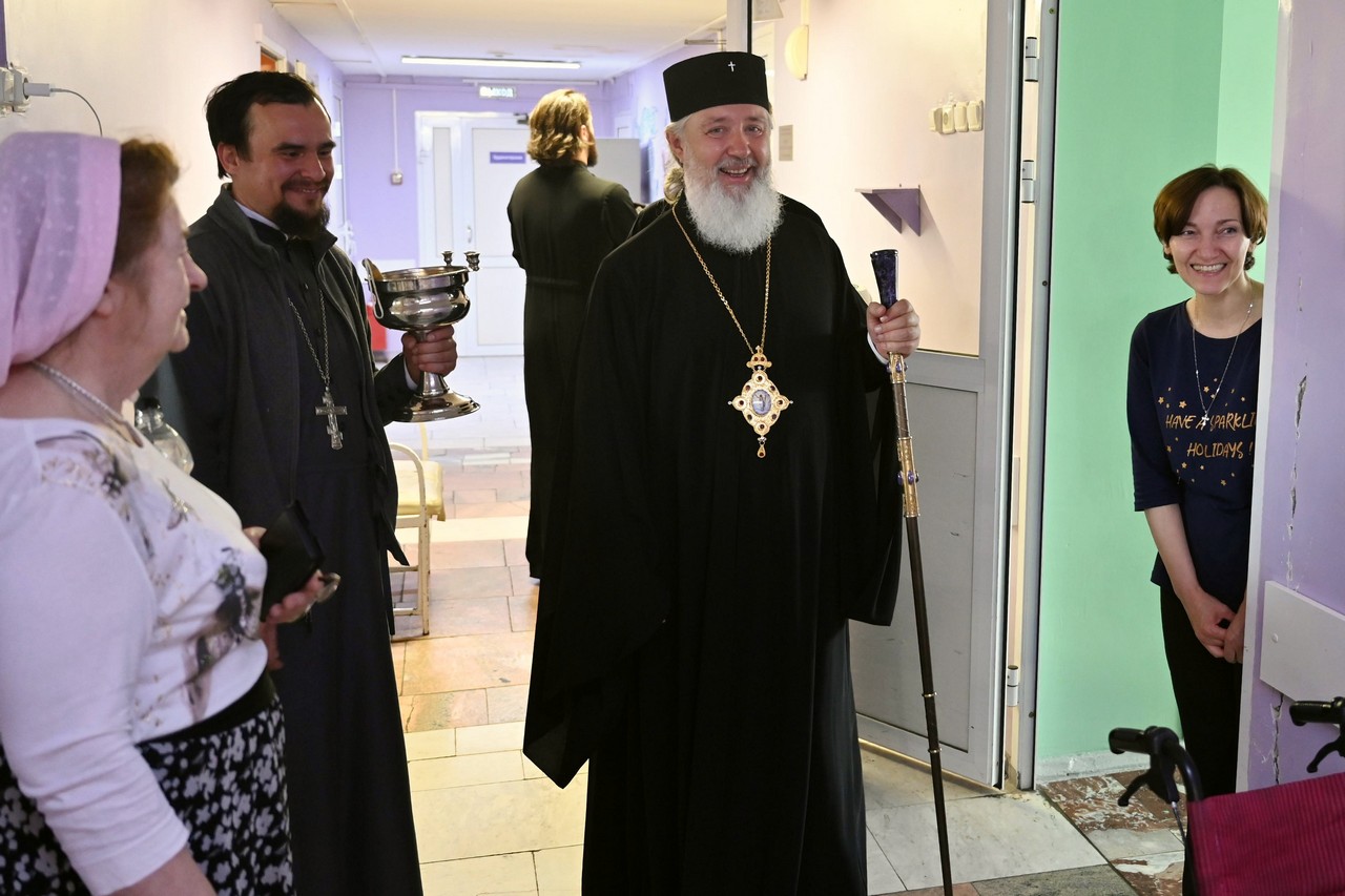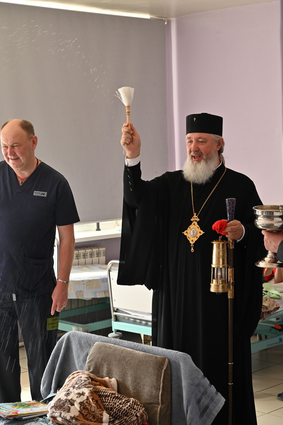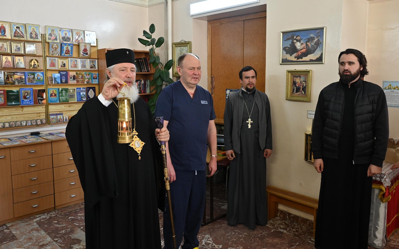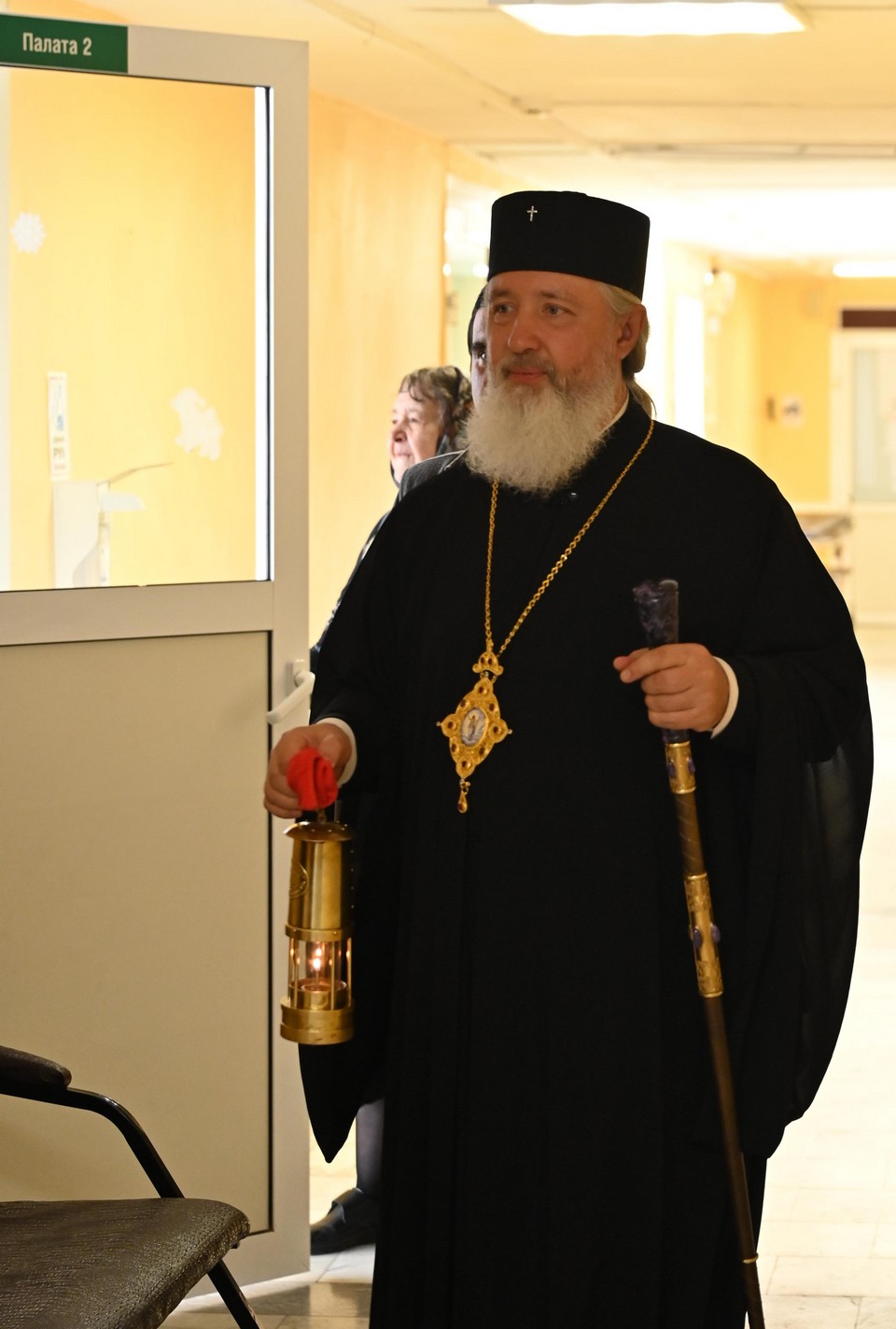 Правящего архиерея сопровождал также священник Никита Семёнов - клирик Преображенского храма, который окормляет больничную часовню.