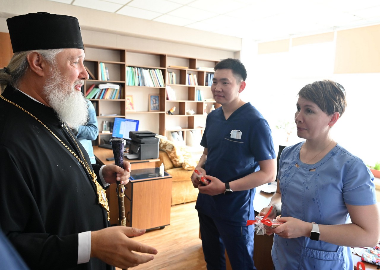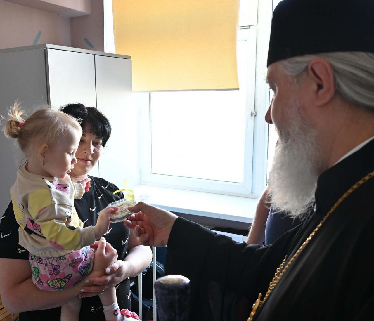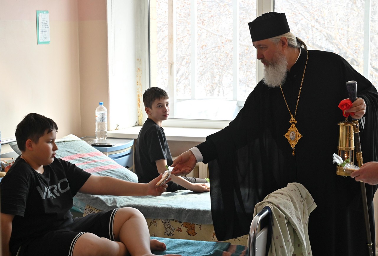В Светлую пятницу 25 апреля 2025 года митрополит Иркутский и Ангарский Максимилиан навестил пациентов Областной детской клинической больницы города Иркутска и вместе с главврачом Юрием Андреевичем Козловым побывал в часовне во имя Святых Царственных Страстотерпцев и в четырех отделениях больницы.