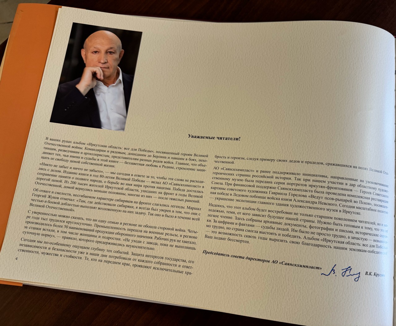 Альбом увековечил память о героях Иркутской области и Усть-Ордынского Бурятского автономного округа, самоотверженный подвиг и труд которых приблизил долгожданный день Великой общероссийской Победы.