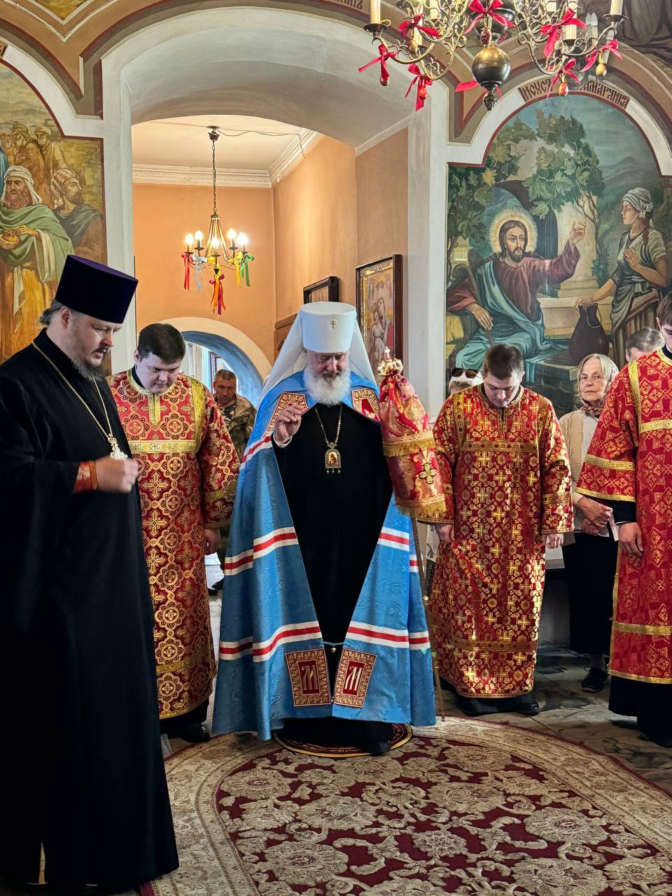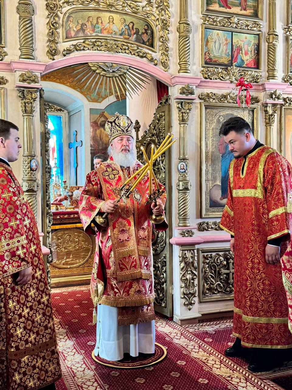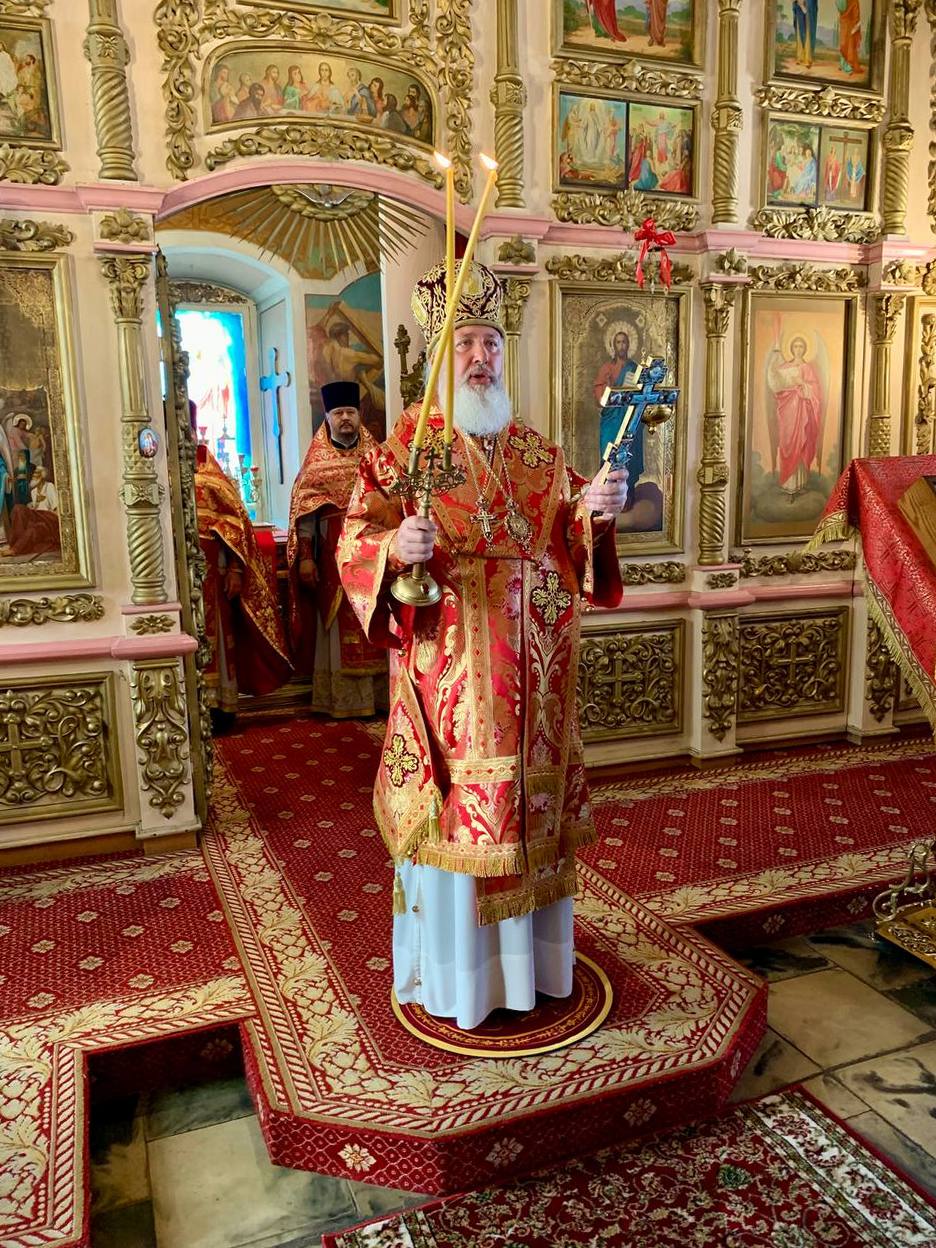 В приветственном слове к молящимся митрополит Максимилиан напомнил, что сегодняшнее Воскресное богослужение совершается Пасхальным чином в последний раз перед праздником отдания Пасхи, а также, обращаясь к сюжету дневного Евангельского чтения, подчеркнул, что «все мы до встречи со Христом были «слепорожденными», потому что не знали, для чего мы живем; посвящали все свои душевные и телесные силы тому, чтобы здесь, на земле, каким-то образом устроиться; жить «как все» или даже лучше окружающих». Но без Христа все на земле тщетно, временно и бесплодно, «и только Христос Спаситель принес нам правильное понимание жизни», и теперь мы знаем, что «нас ждет жизнь вечная, которая зависит от нашего выбора на земле: что мы возлюбим в жизни земной, для чего будем трудиться, то и наследуем в жизни вечной. И в этом открылось наше духовное зрение».