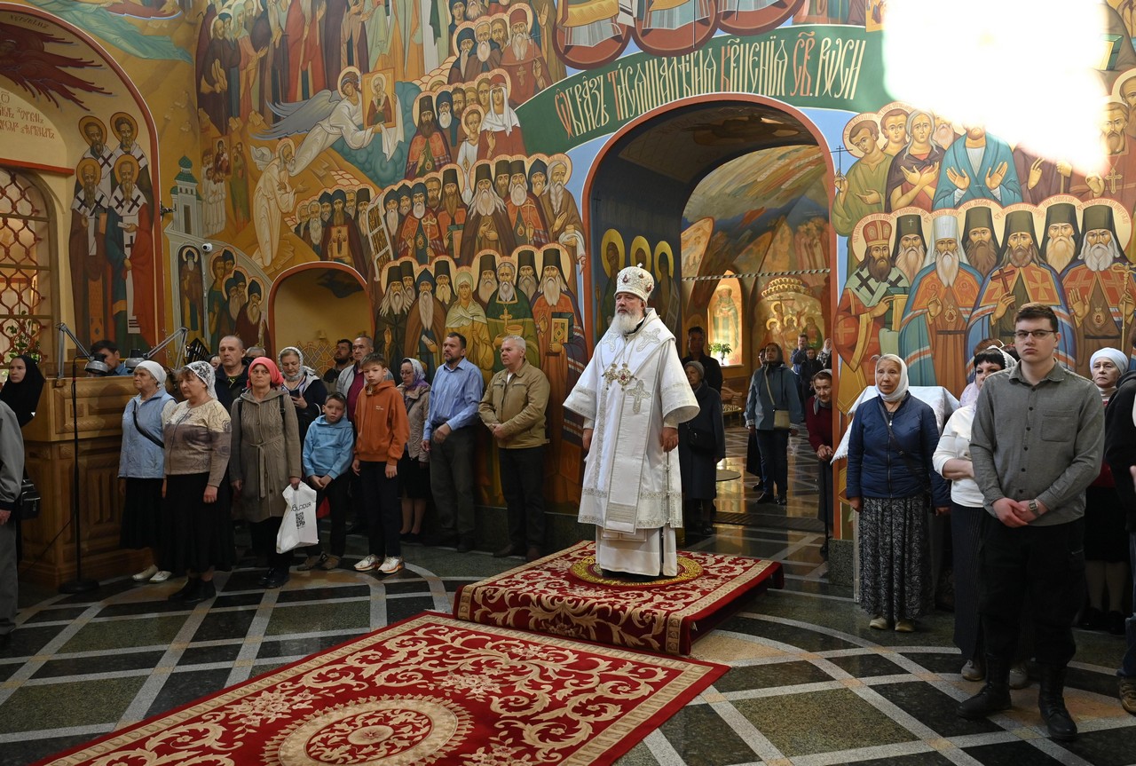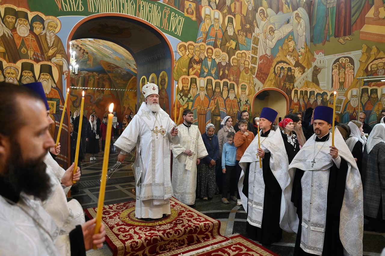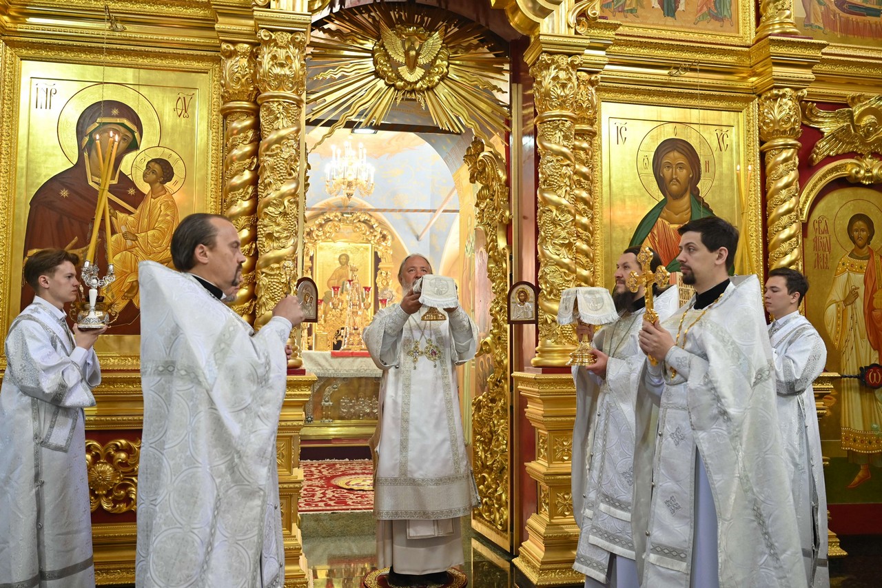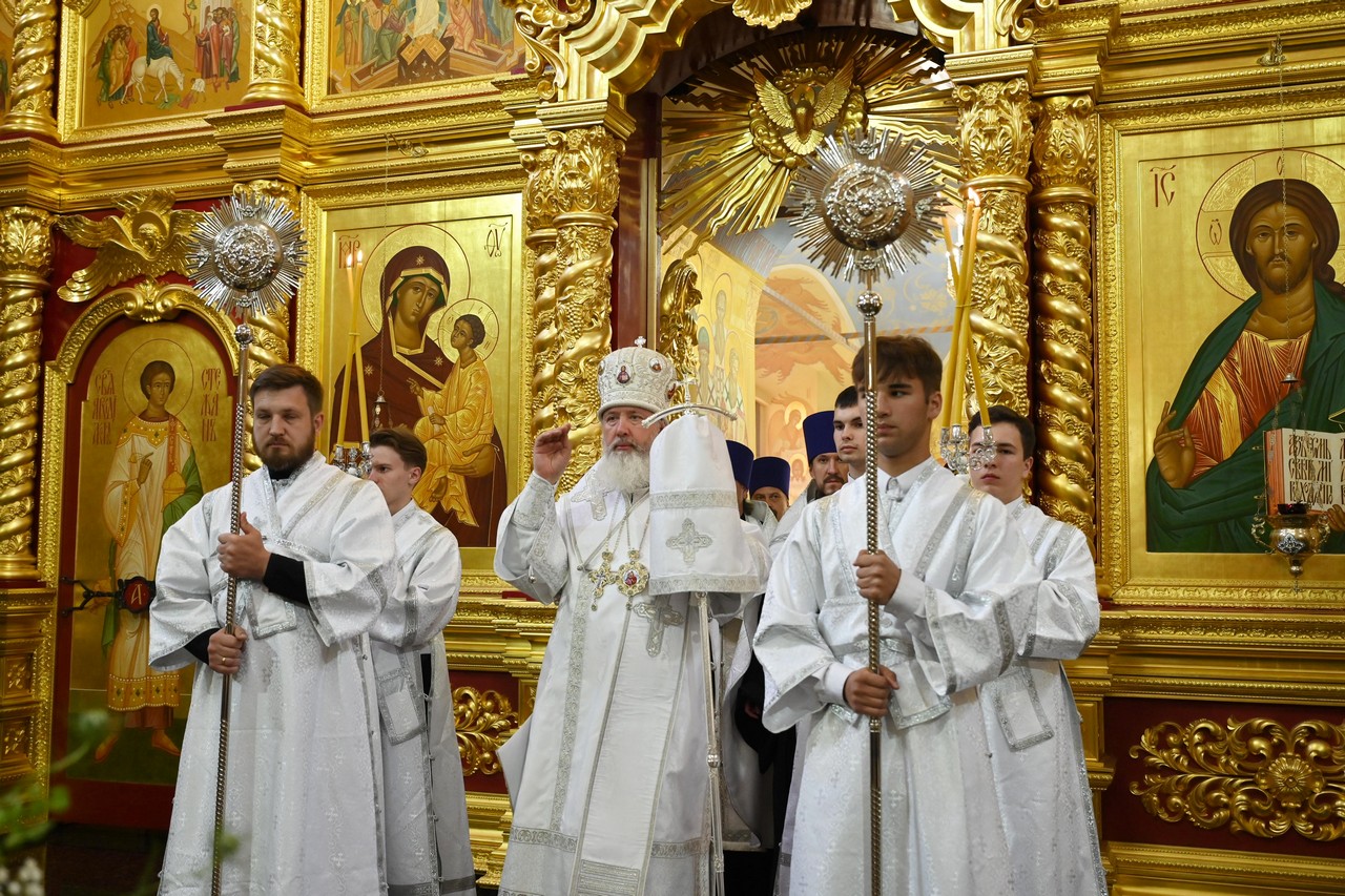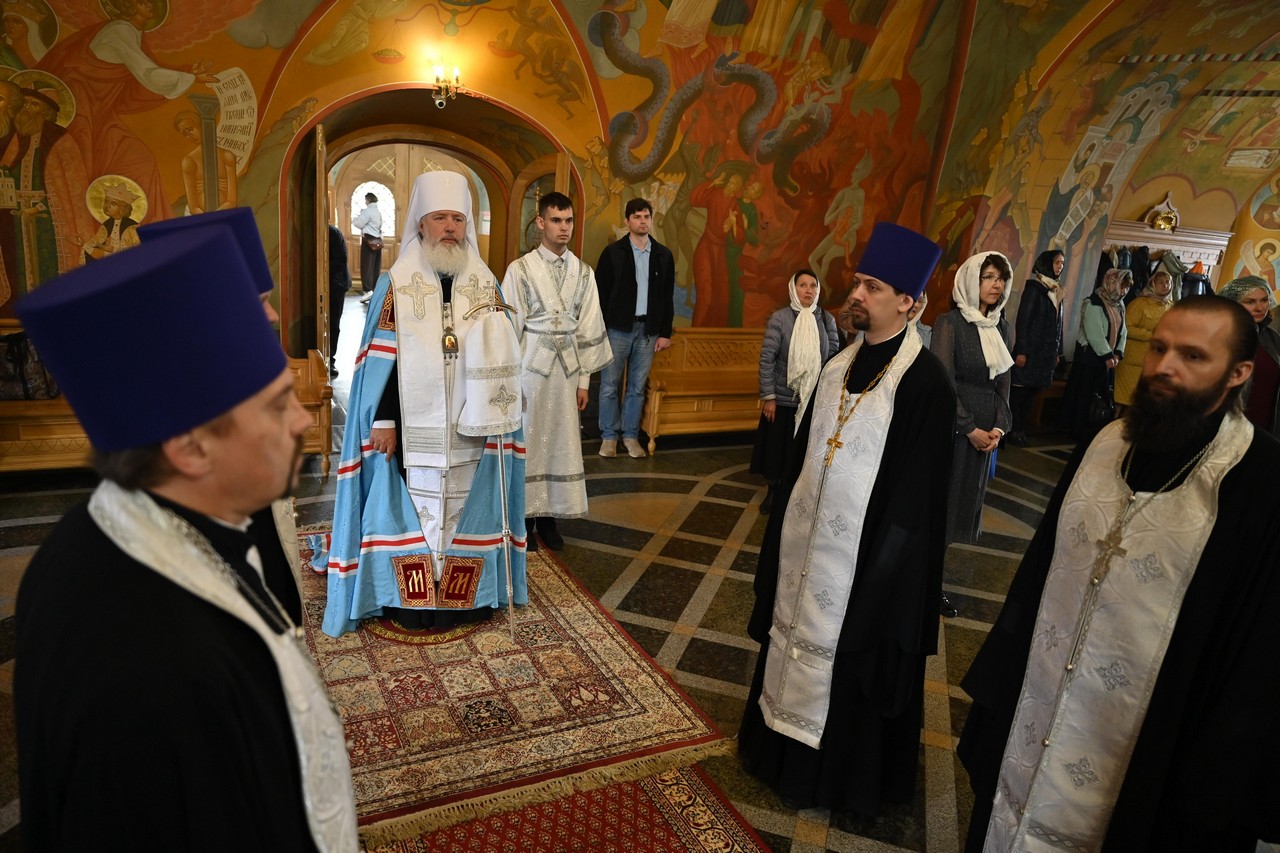 Накануне вечером в соборе владыка совершил праздничное всенощное бдение.