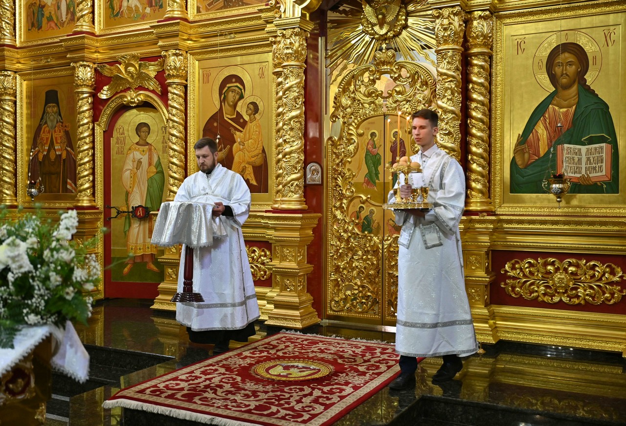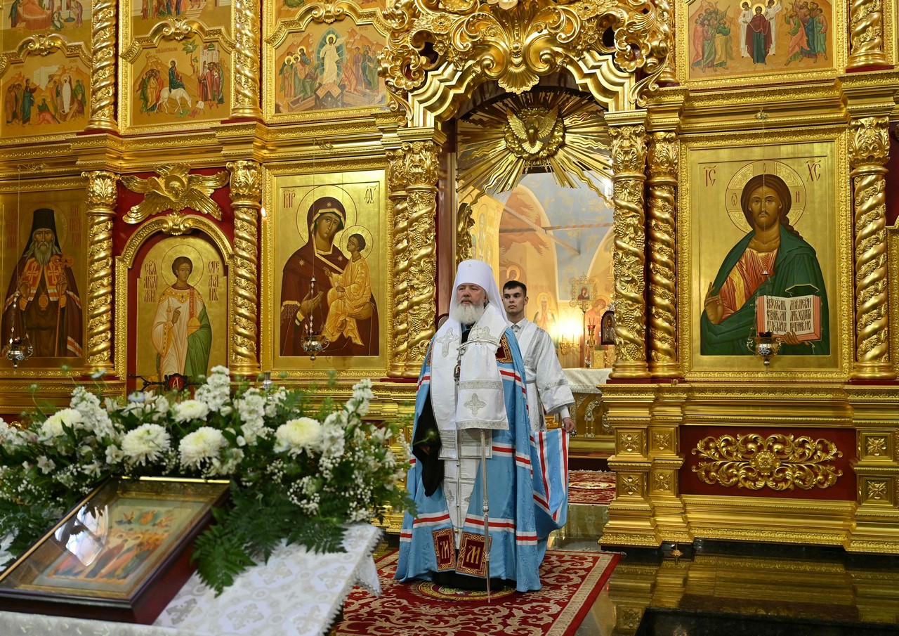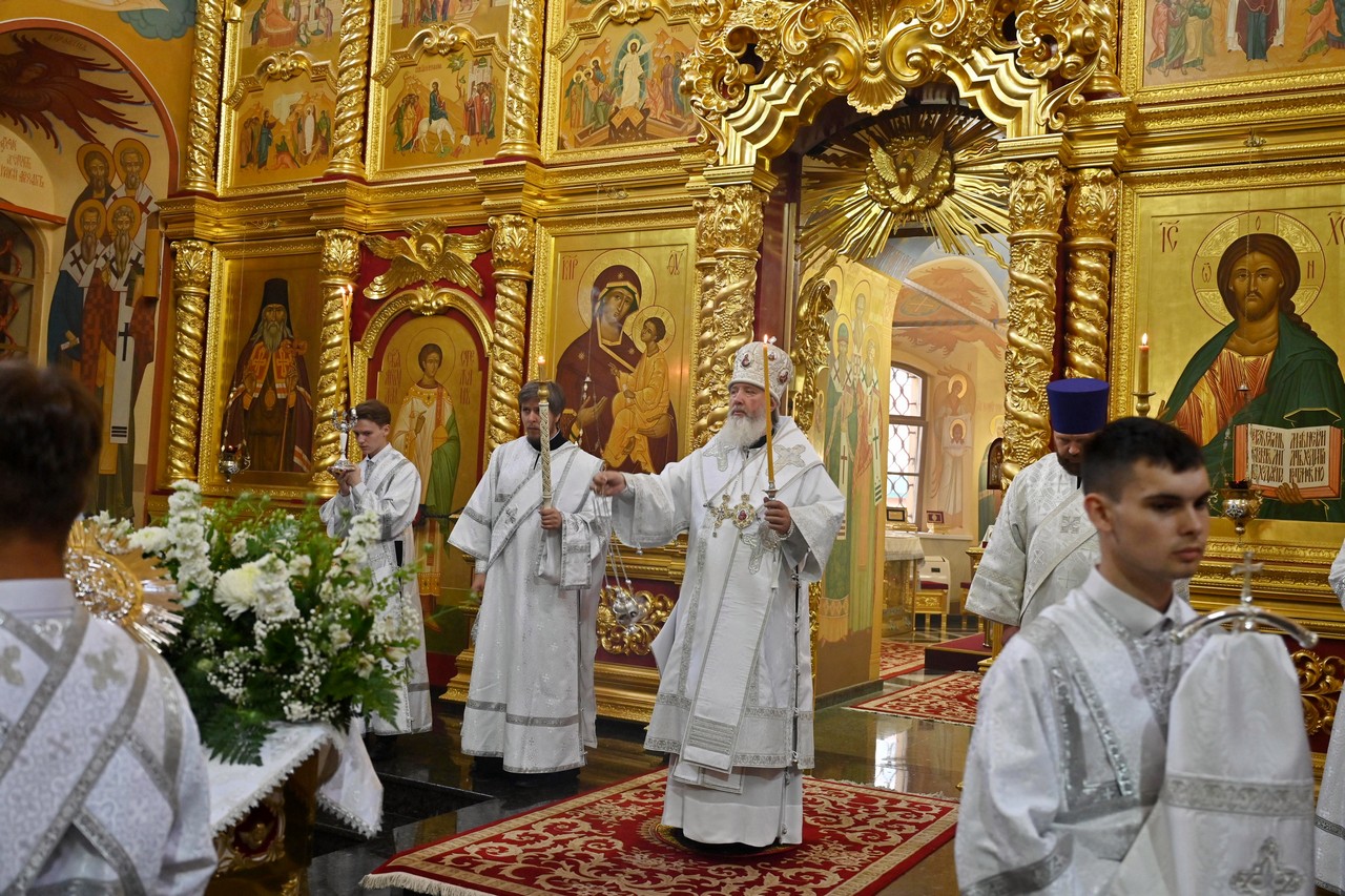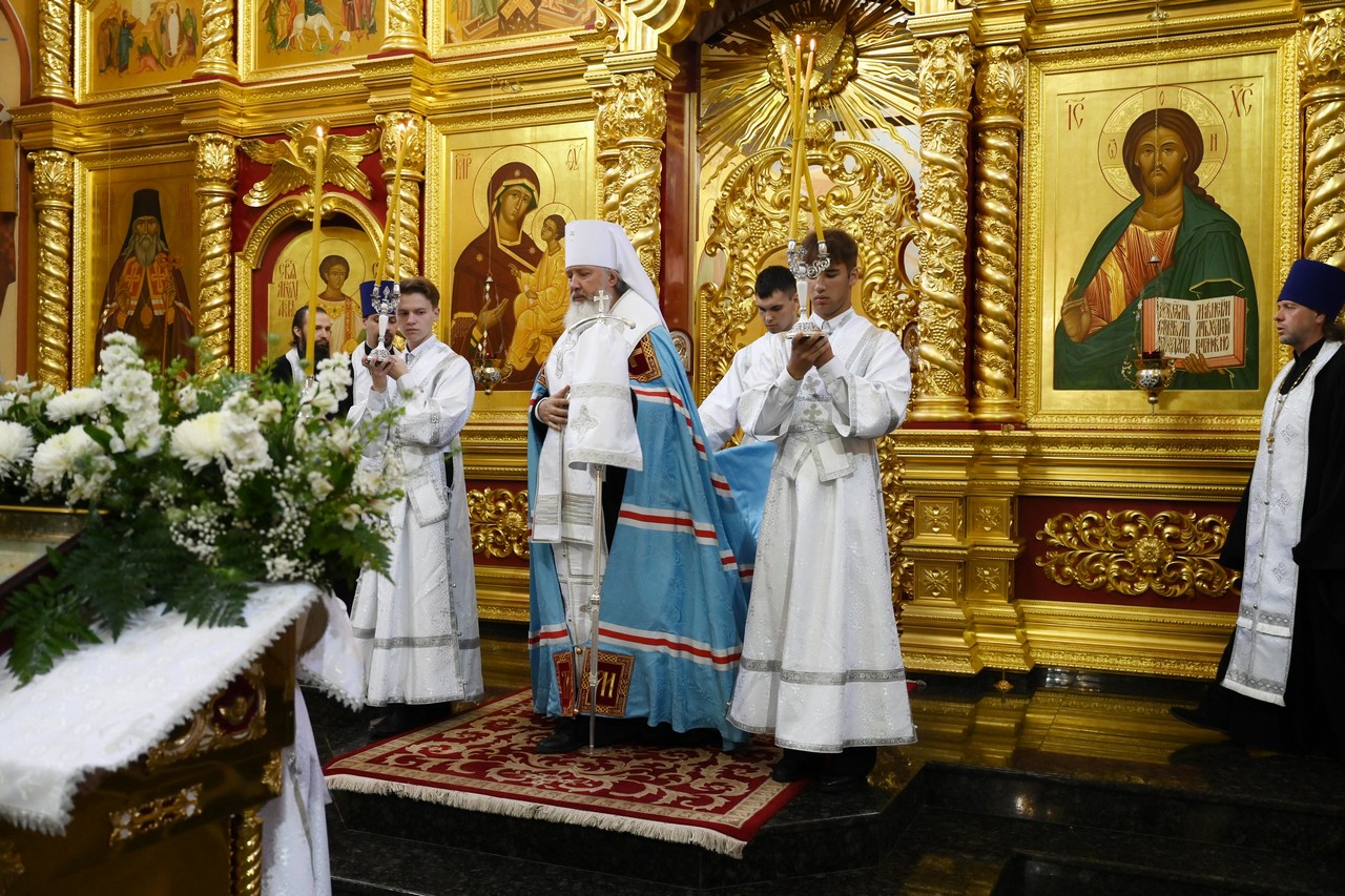 Накануне вечером в соборе владыка совершил праздничное всенощное бдение.