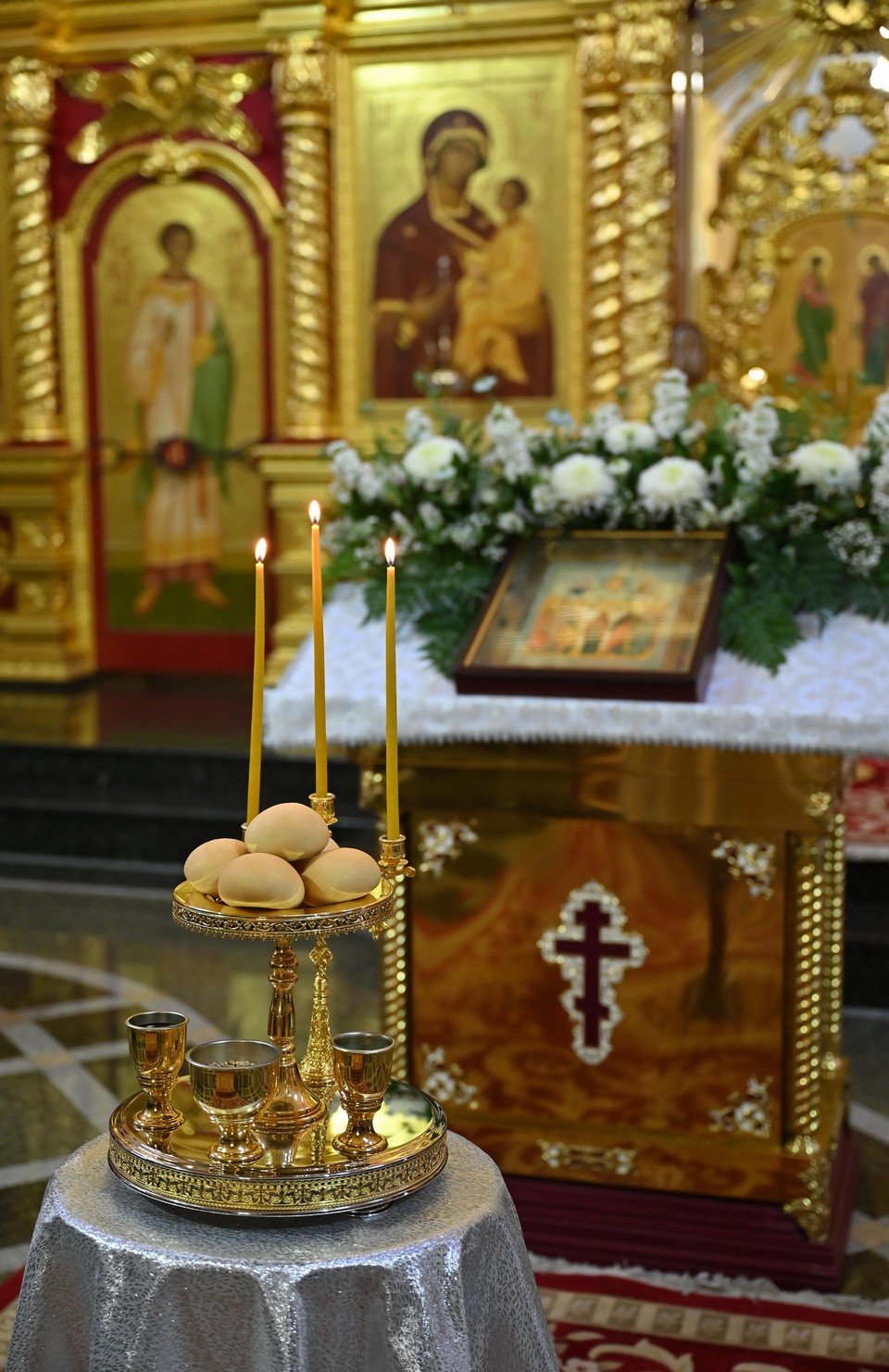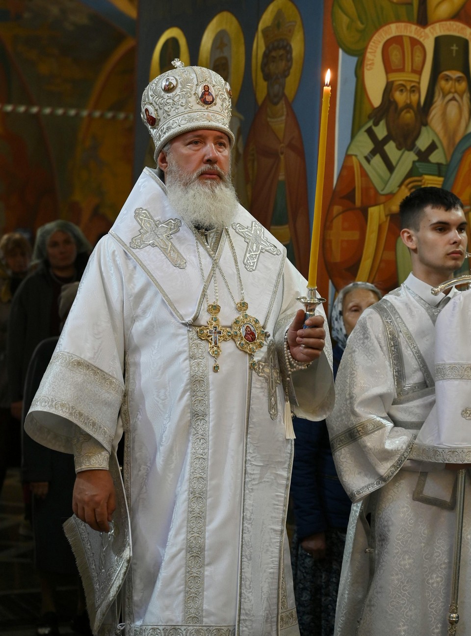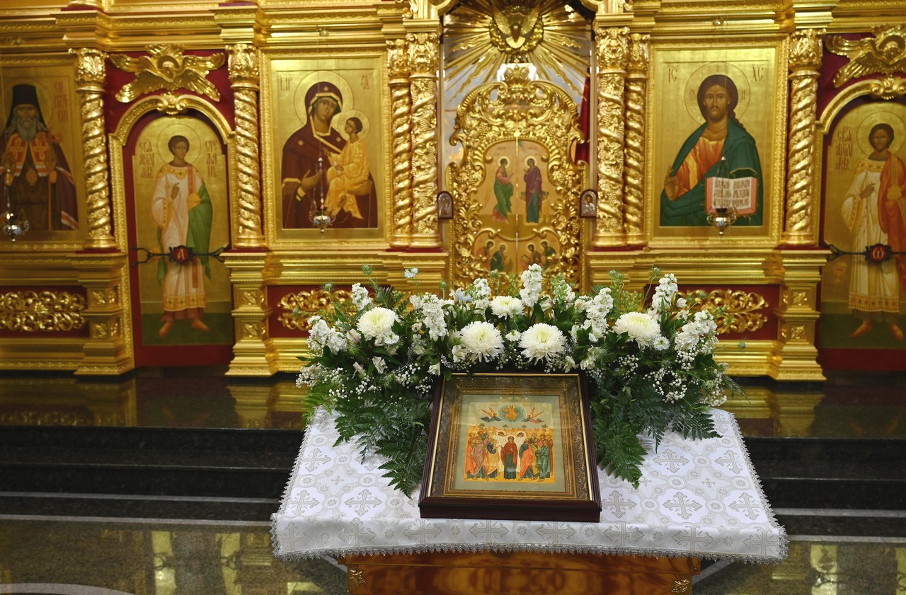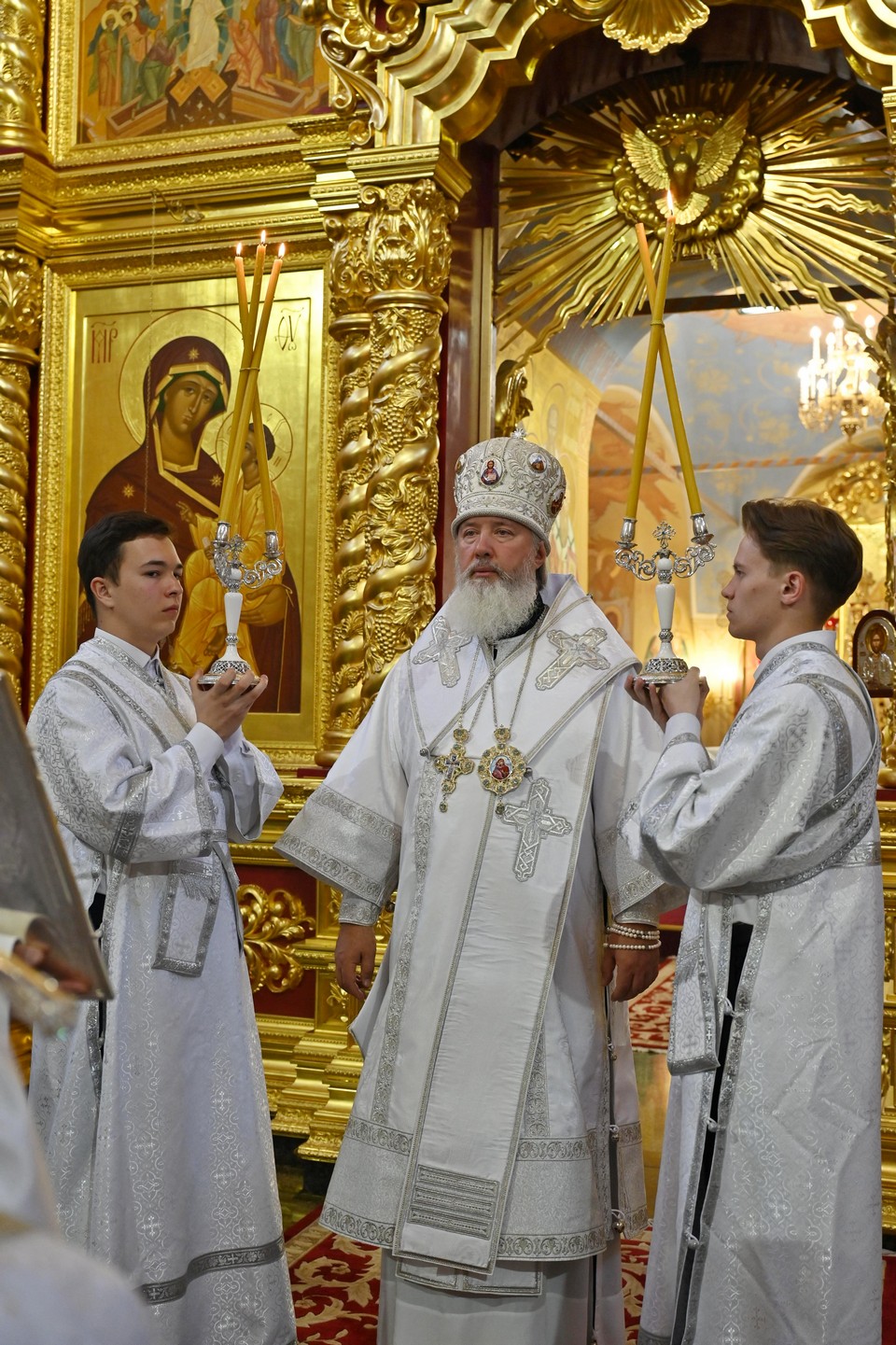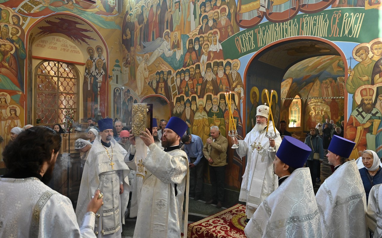Накануне вечером в соборе владыка совершил праздничное всенощное бдение.