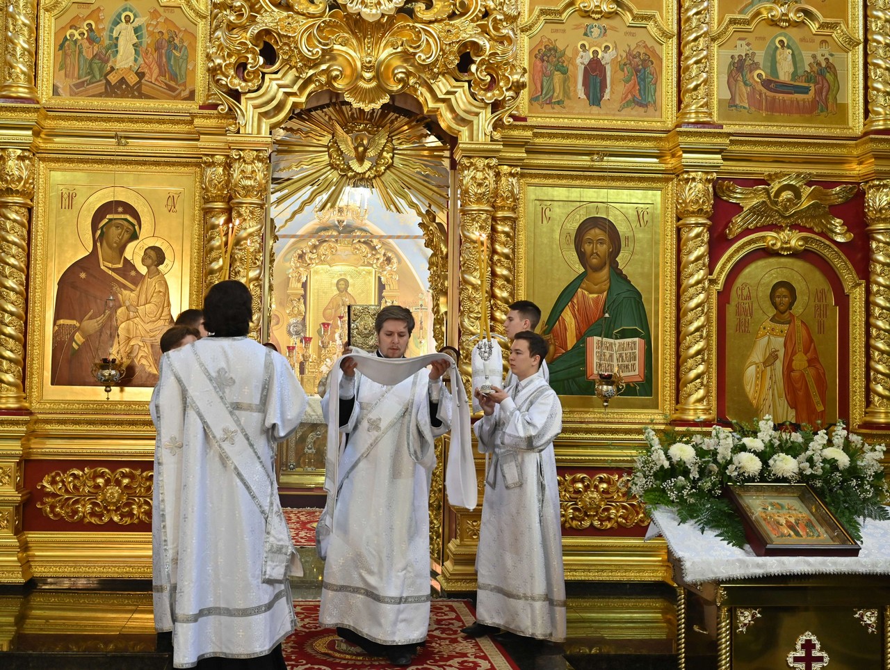 Правящему архиерею сослужили: ключарь собора и секретарь Иркутского Епархиального управления священник Стефан Бажков, протоиерей Андрей Тарасов, священник Сергий Новиков, священник Евгений Копытов, протодиакон Димитрий Бухаров, диакон Петр Новоселов и диакон Владимир Соколов.