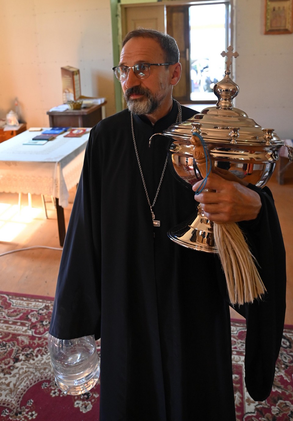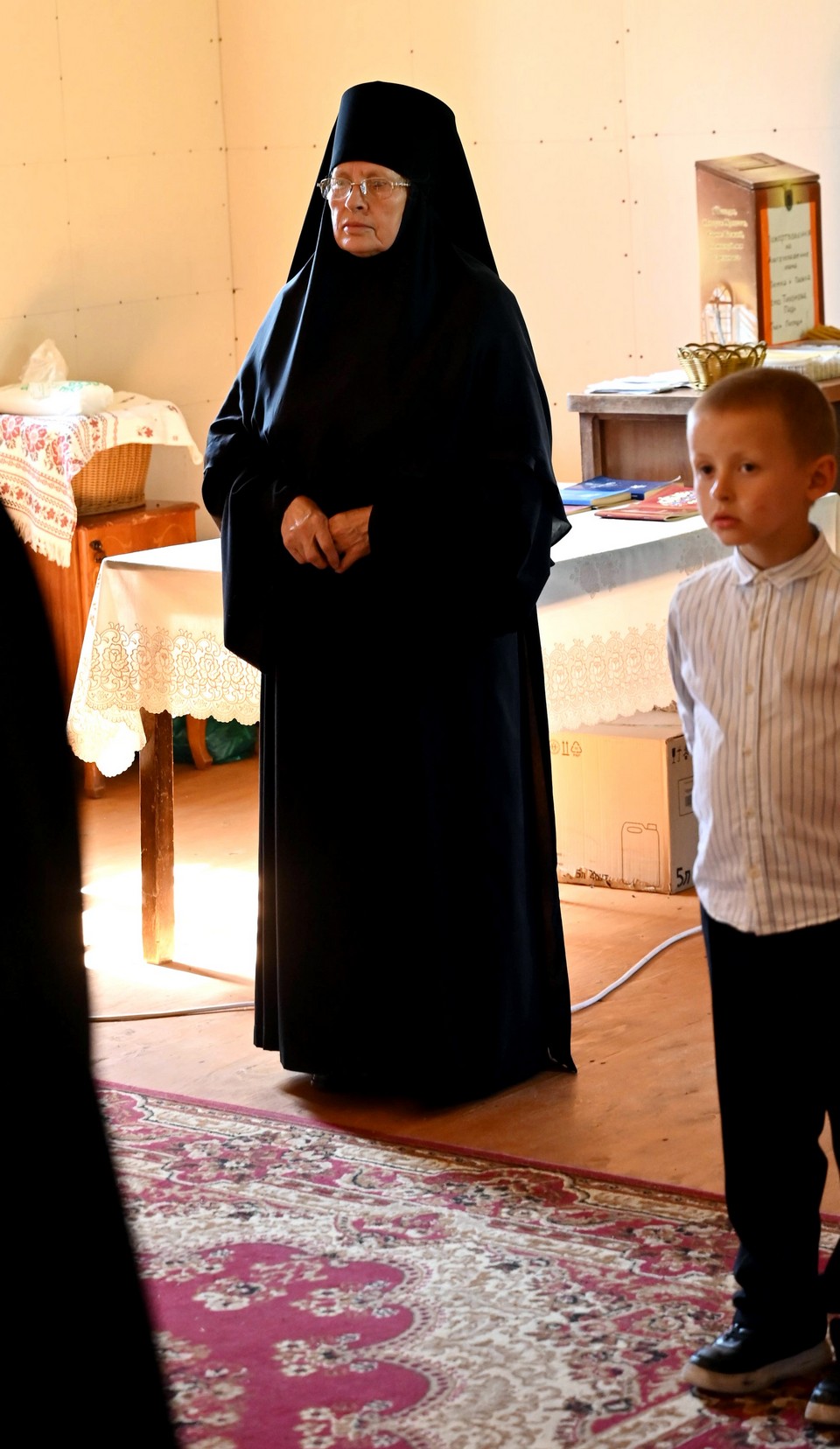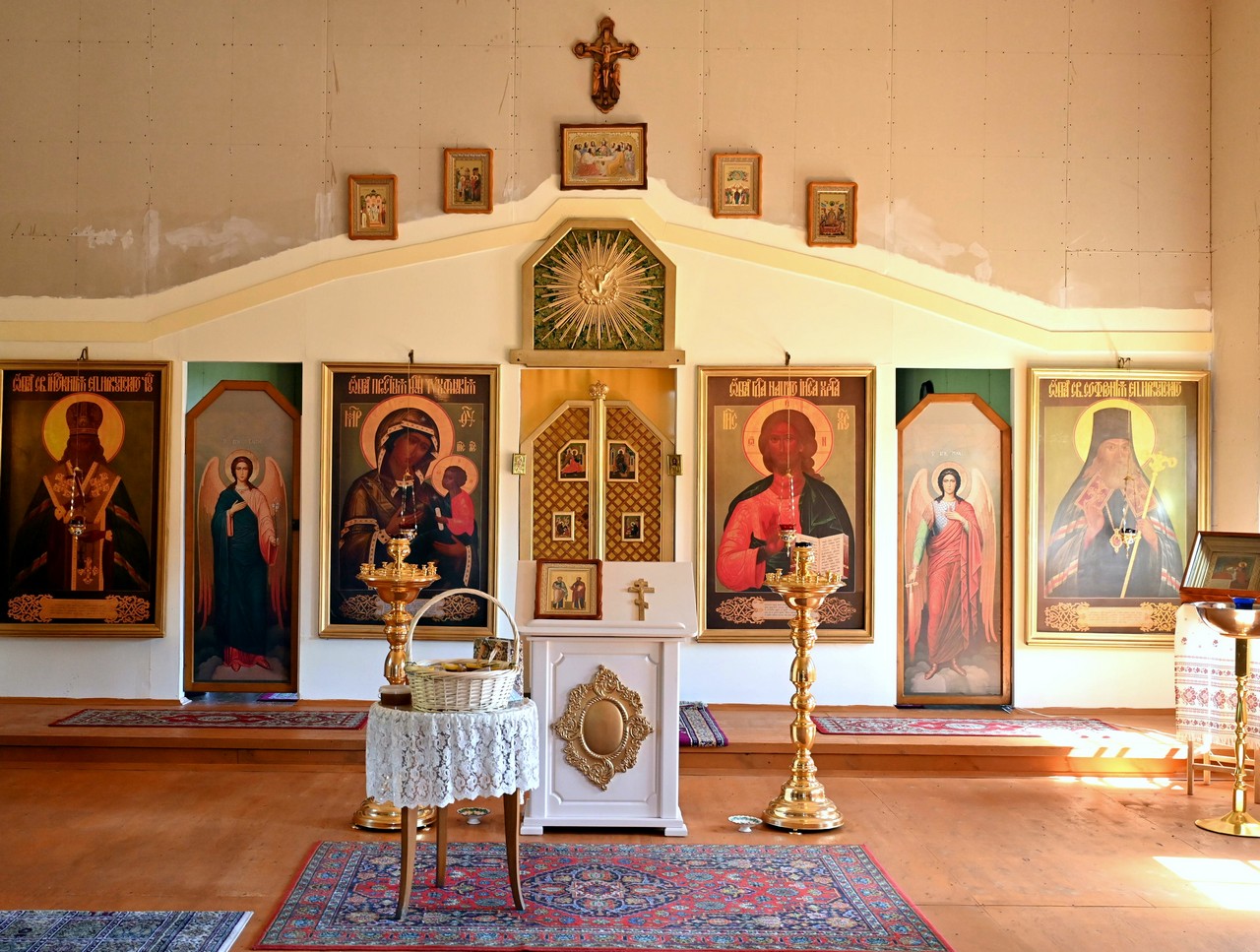 В сопровождении секретаря Иркутской епархии священника Стефана Бажкова, благочинного округа протоиерея Вячеслава Пушкарева, настоятеля священника Георгия Воронова и старшей сестры монастыря монахини Иулиании (Новидонской) владыка осмотрел местный храм во имя святых первоверховных апостолов Петра и Павла и монастырское подворье с пасекой.