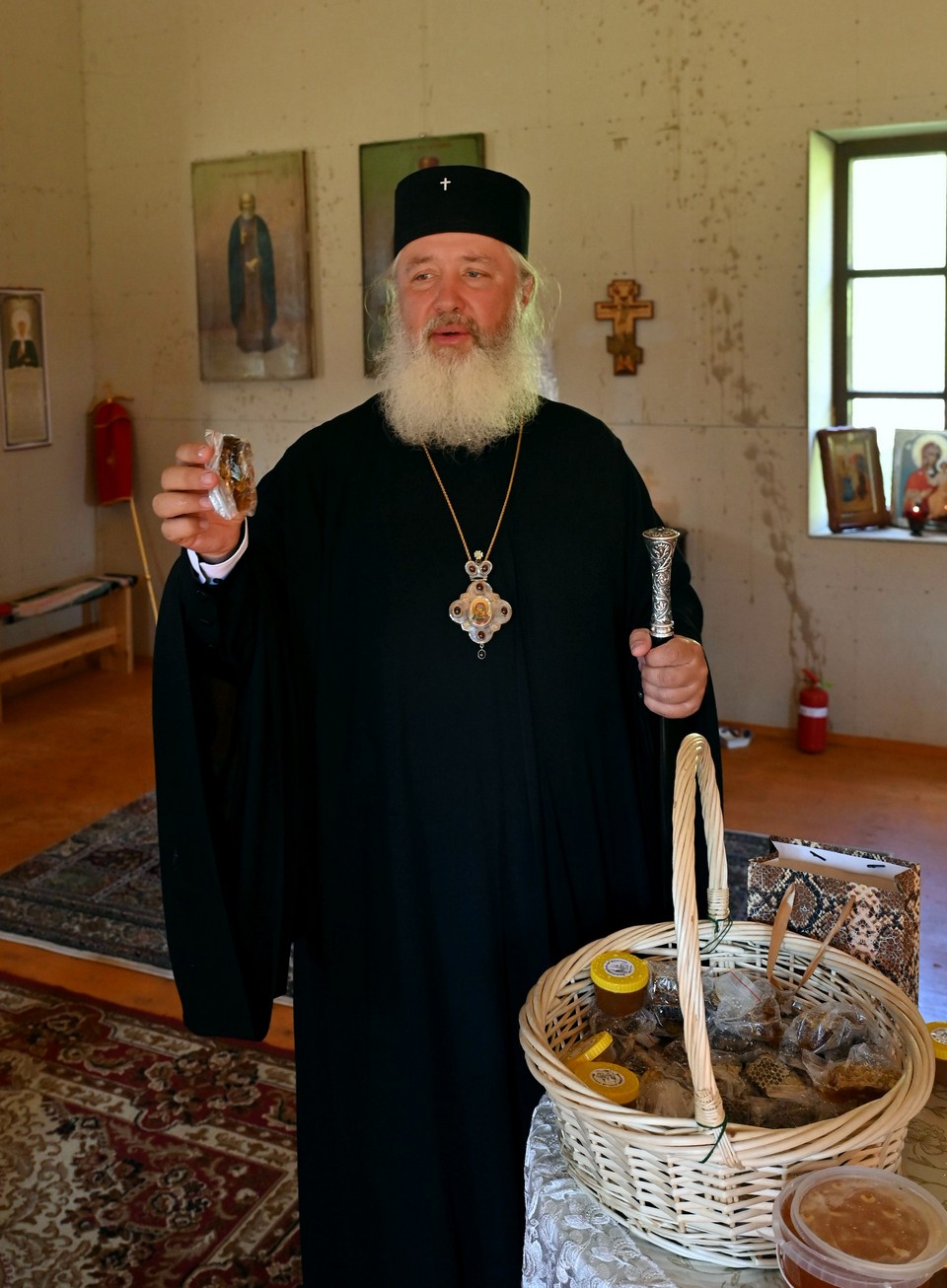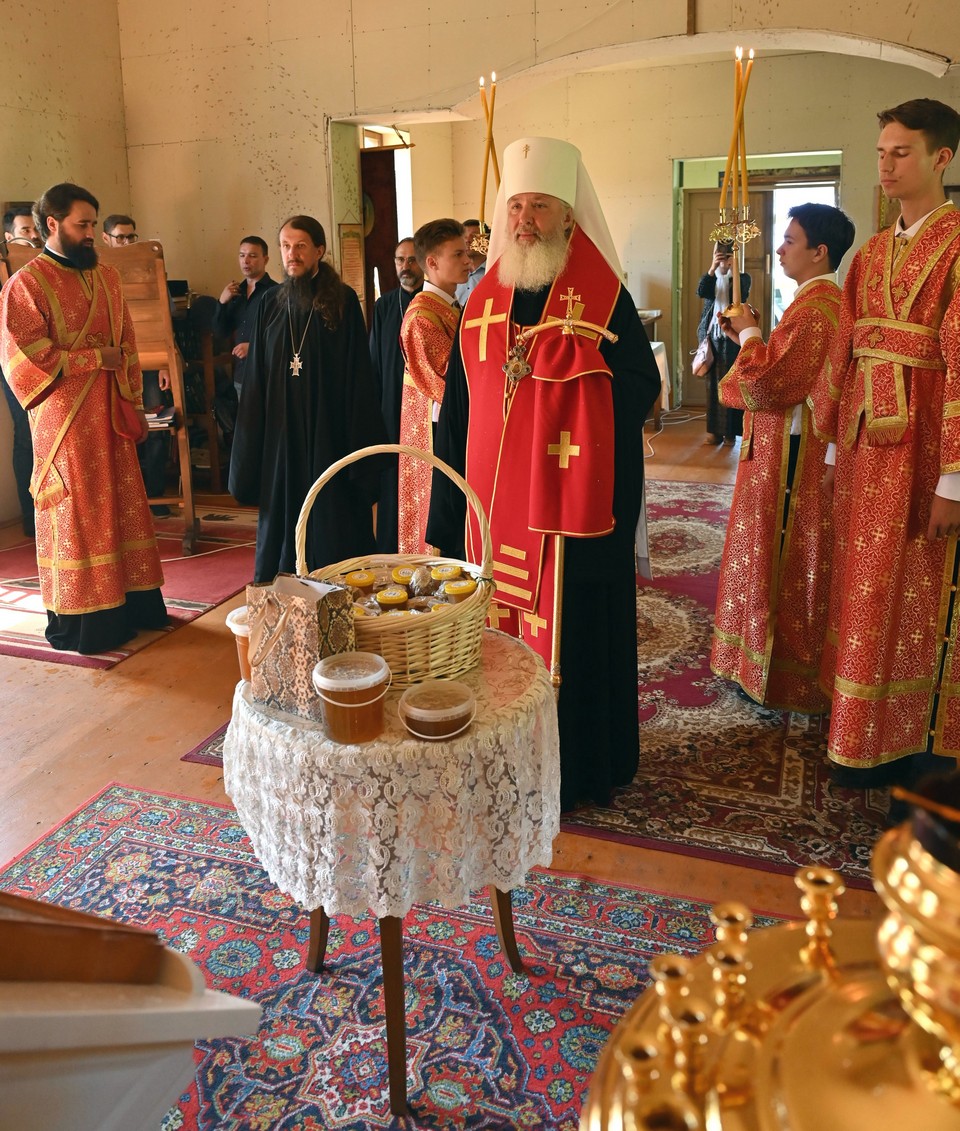 Владыка помолился в храме и освятил мед нового урожая, собранный матушками к этому дню.