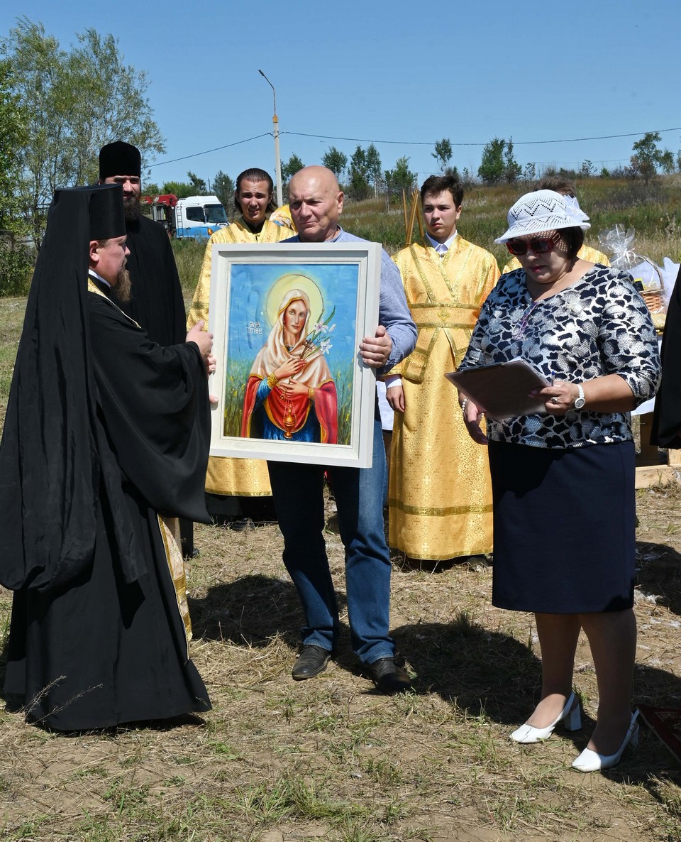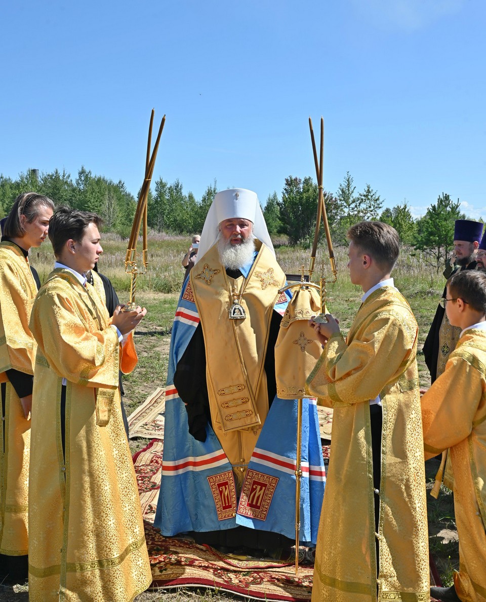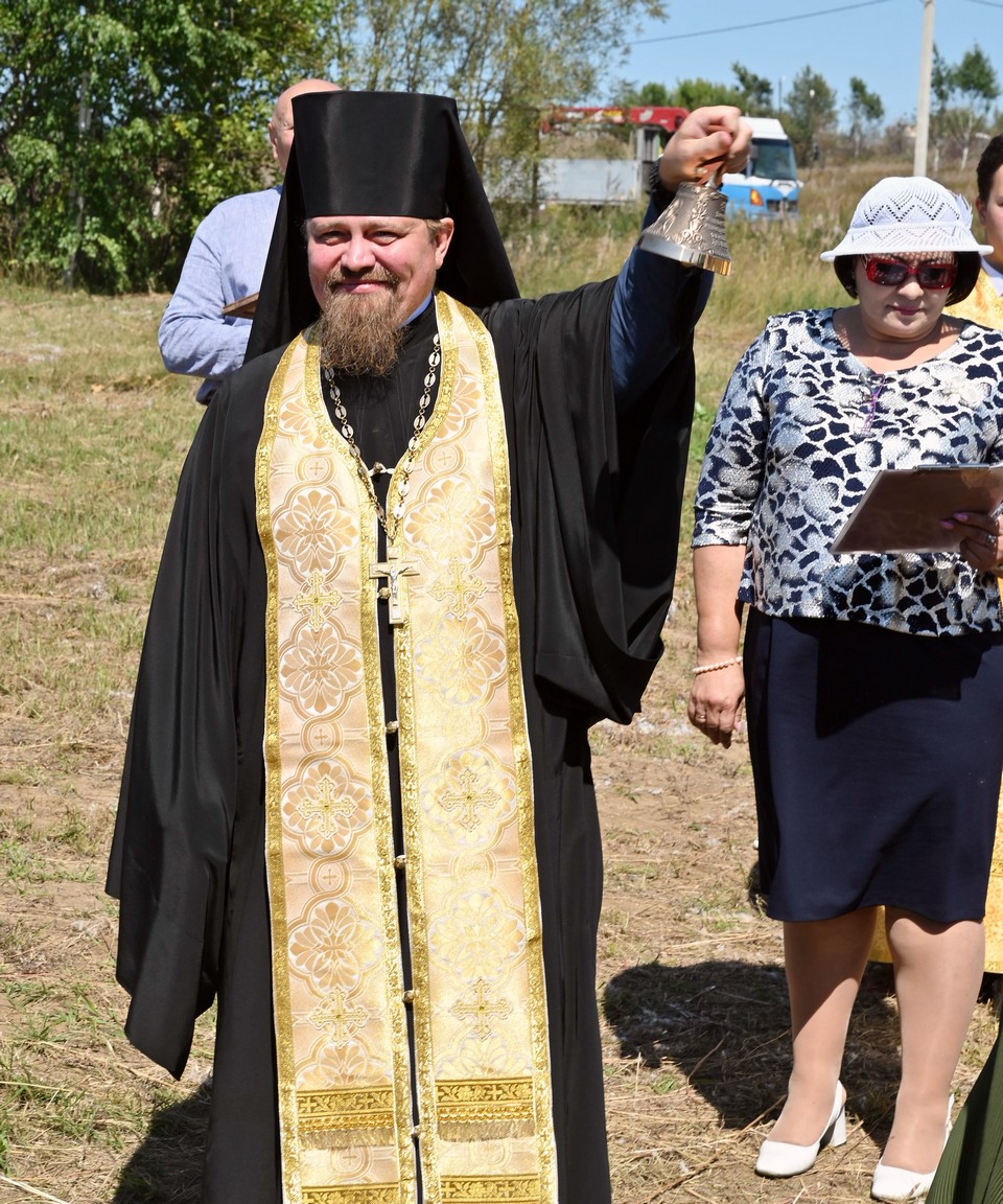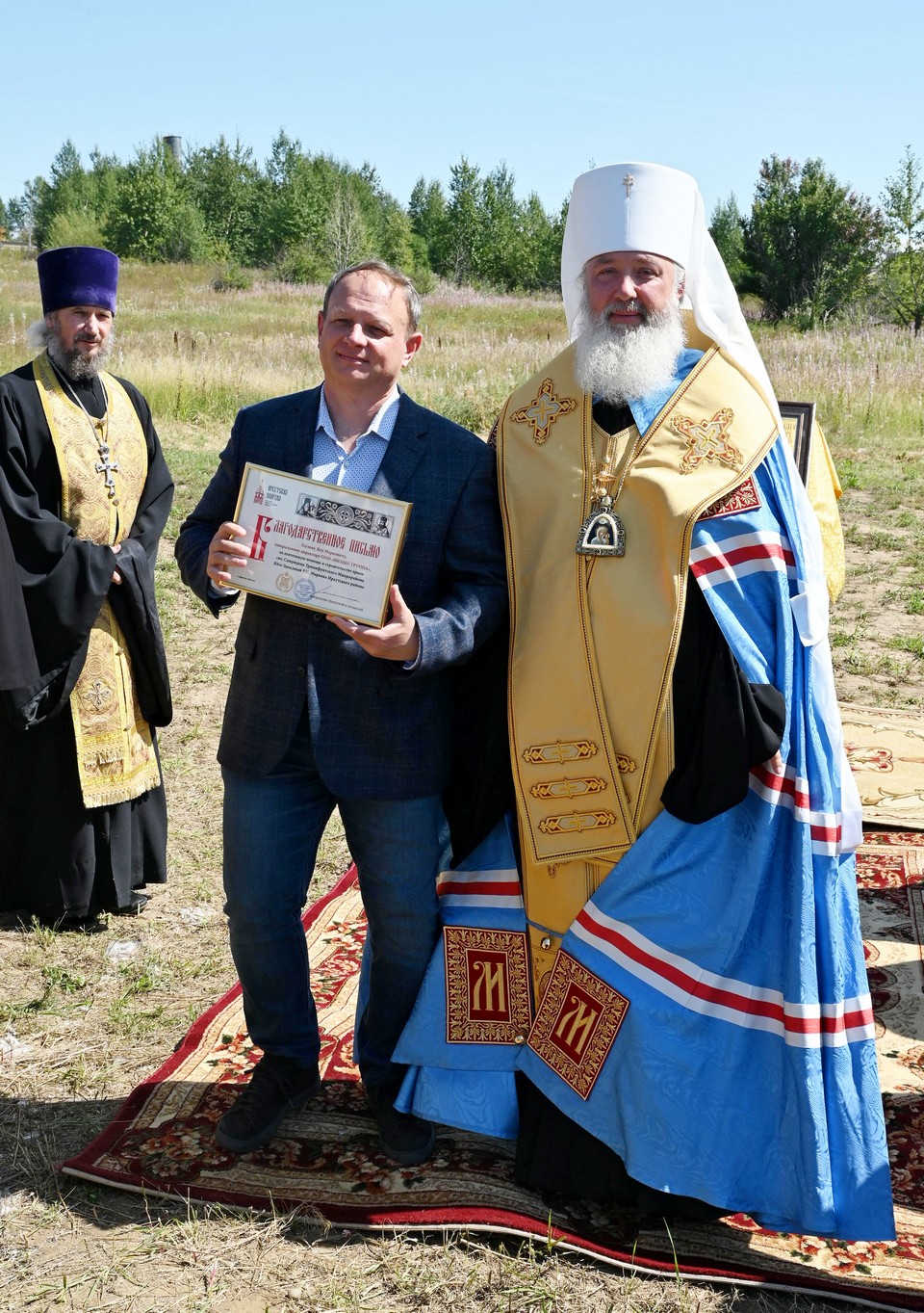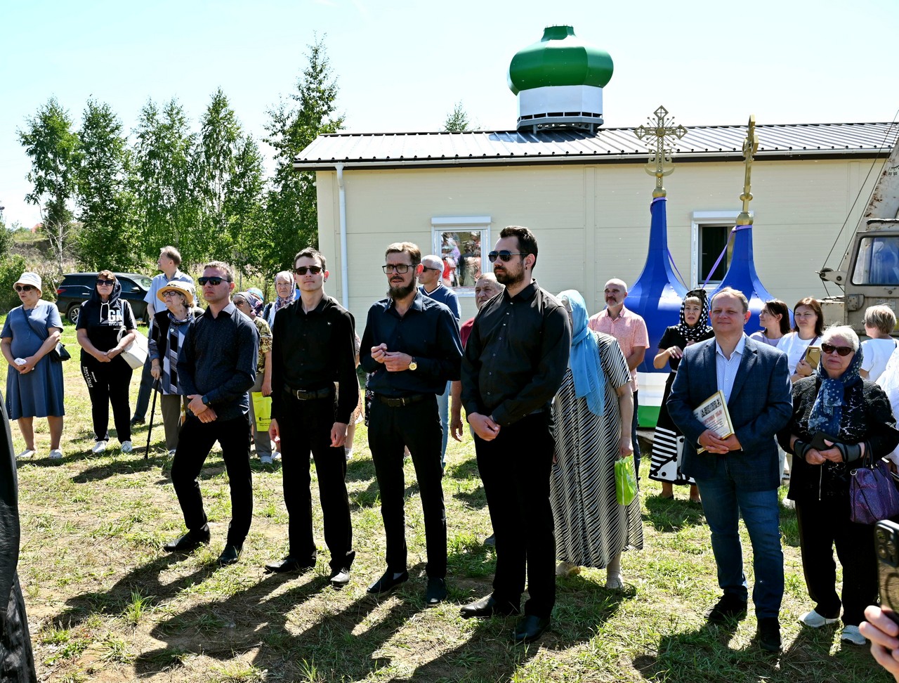 По окончании торжественной части два купола с крестами были подняты и установлены на крыше временного здания храма, первые богослужения в котором планируется начать уже в сентябре.
