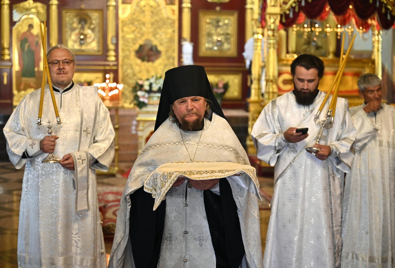 Вечером 18 августа, в канун праздника Преображения Господня, митрополит Иркутский и Ангарский Максимилиан в сослужении духовенства совершил торжественное всенощное бдение в Знаменском храме г.Иркутска.