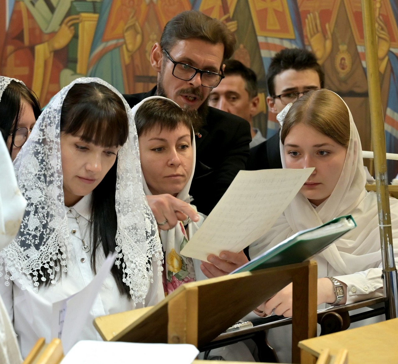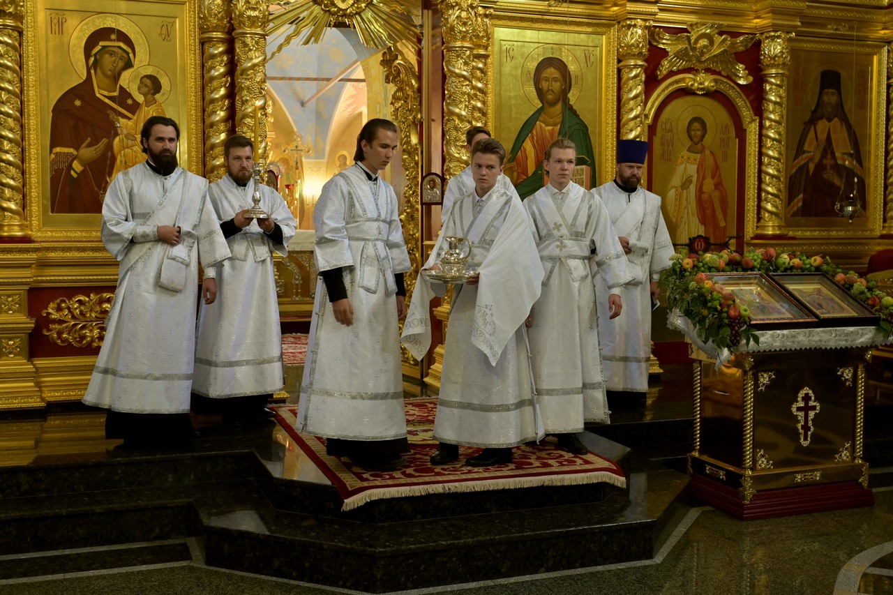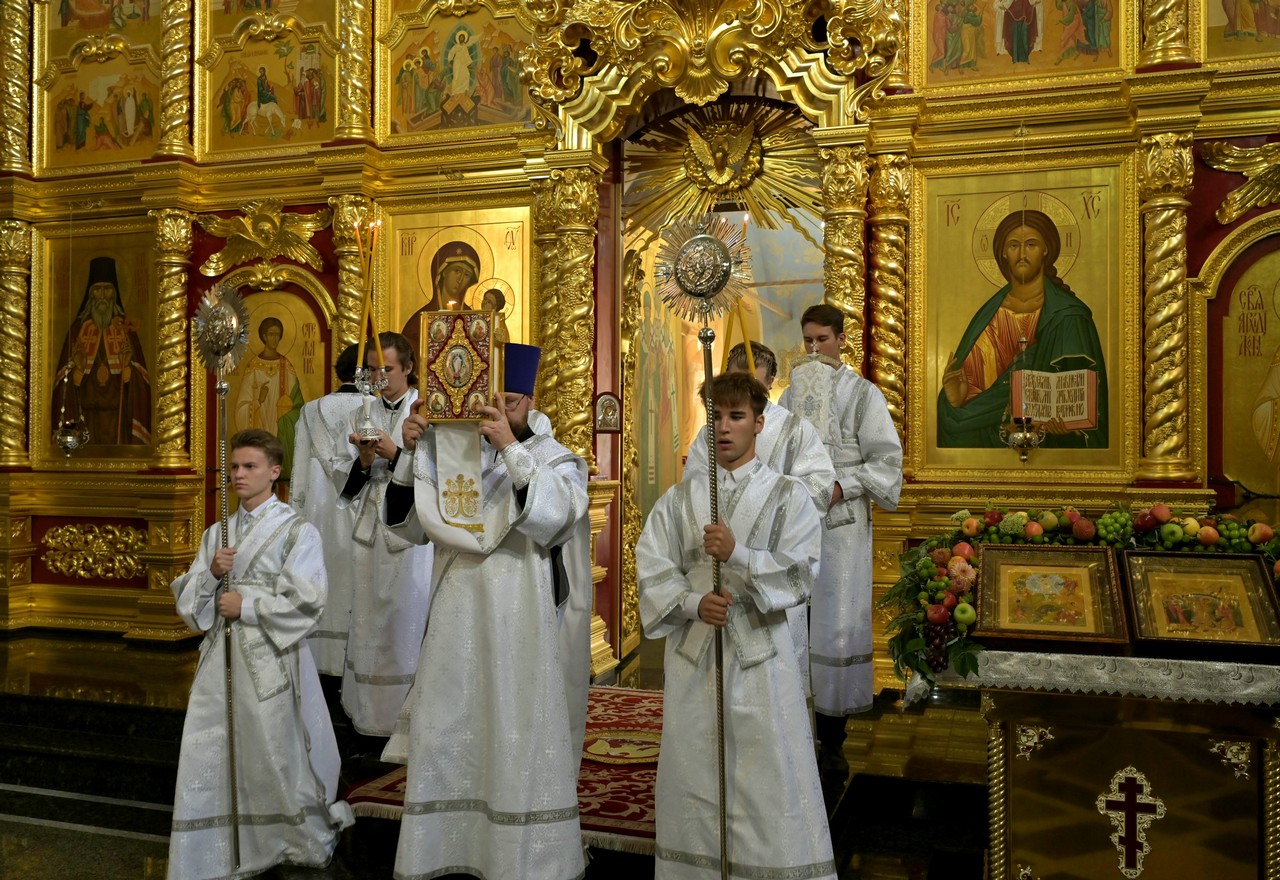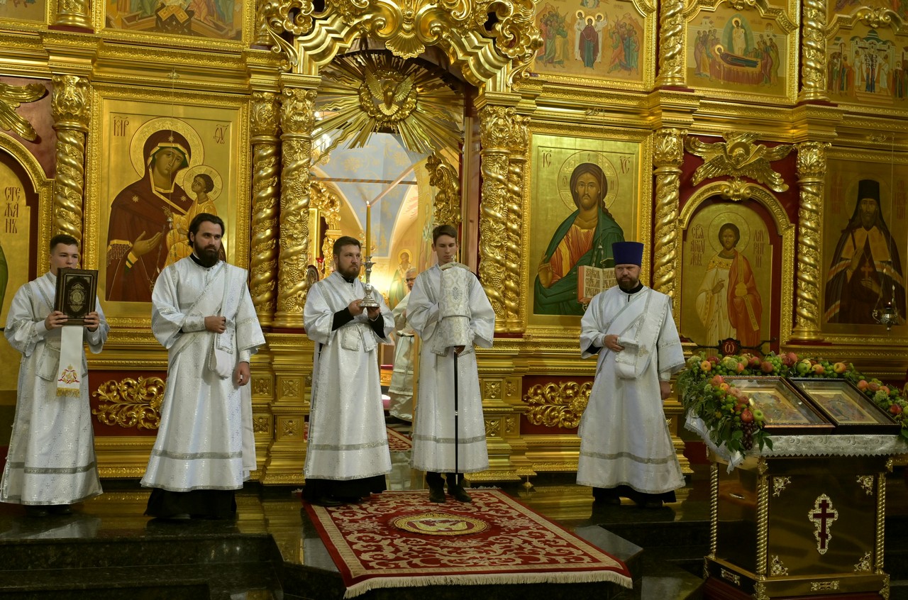 Песнопения Божественной литургии прозвучали в исполнении архиерейского хора собора под управлением Трофима Поподько.