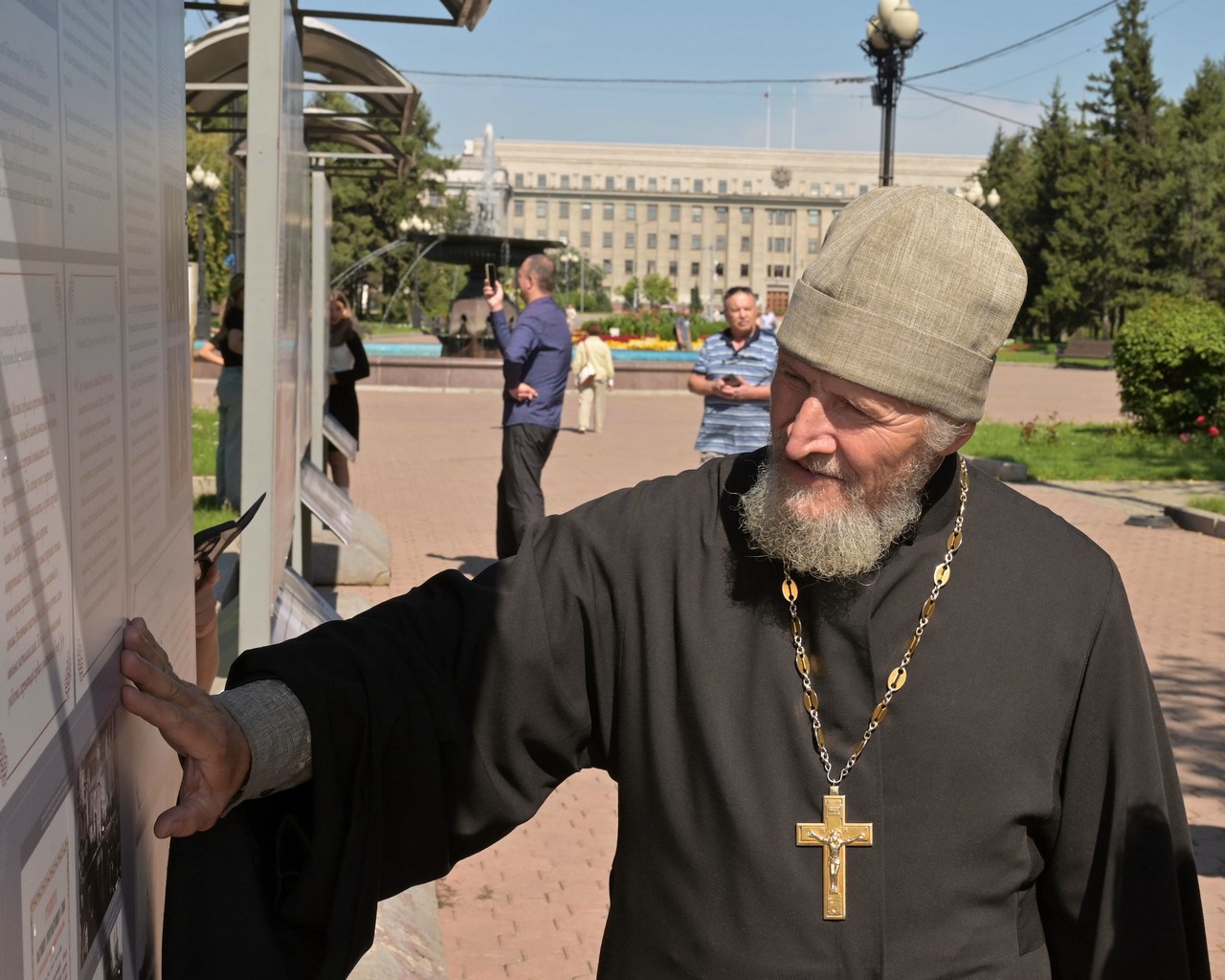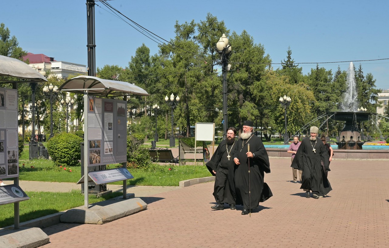 Также правящий архиерей отметил, что выставка проходит на исторически значимой для города площади, где в 1930-е годы был разрушен огромный Казанский кафедральный собор: после его разрушения площадь поднялась на несколько метров от останков кирпича от взорванного храма, и наш долг - восстановить этот собор, чтобы иркутяне помнили о своем долге быть благодарными, верующими и верными, чтобы чтили память наших благочестивых предков и их труды.