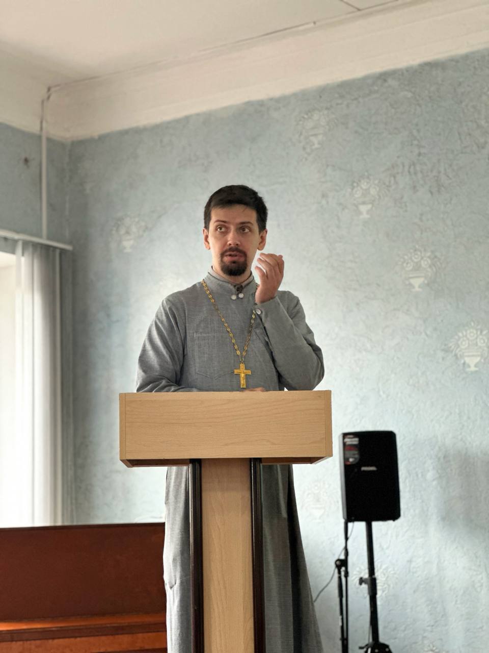 Духовник гимназии священник Сергий Новиков рассказал об итогах работы кафедры законоучителей в гимназии, подчеркнув, что не нужно преувеличивать роль ЕГЭ, который не должен становится смыслом и целью обучения. ЕГЭ лишь одна из задач, причем на относительно короткое время, поэтому гимназия должна готовить детей к жизни, помогать обрести веру.