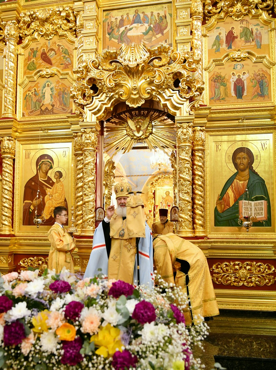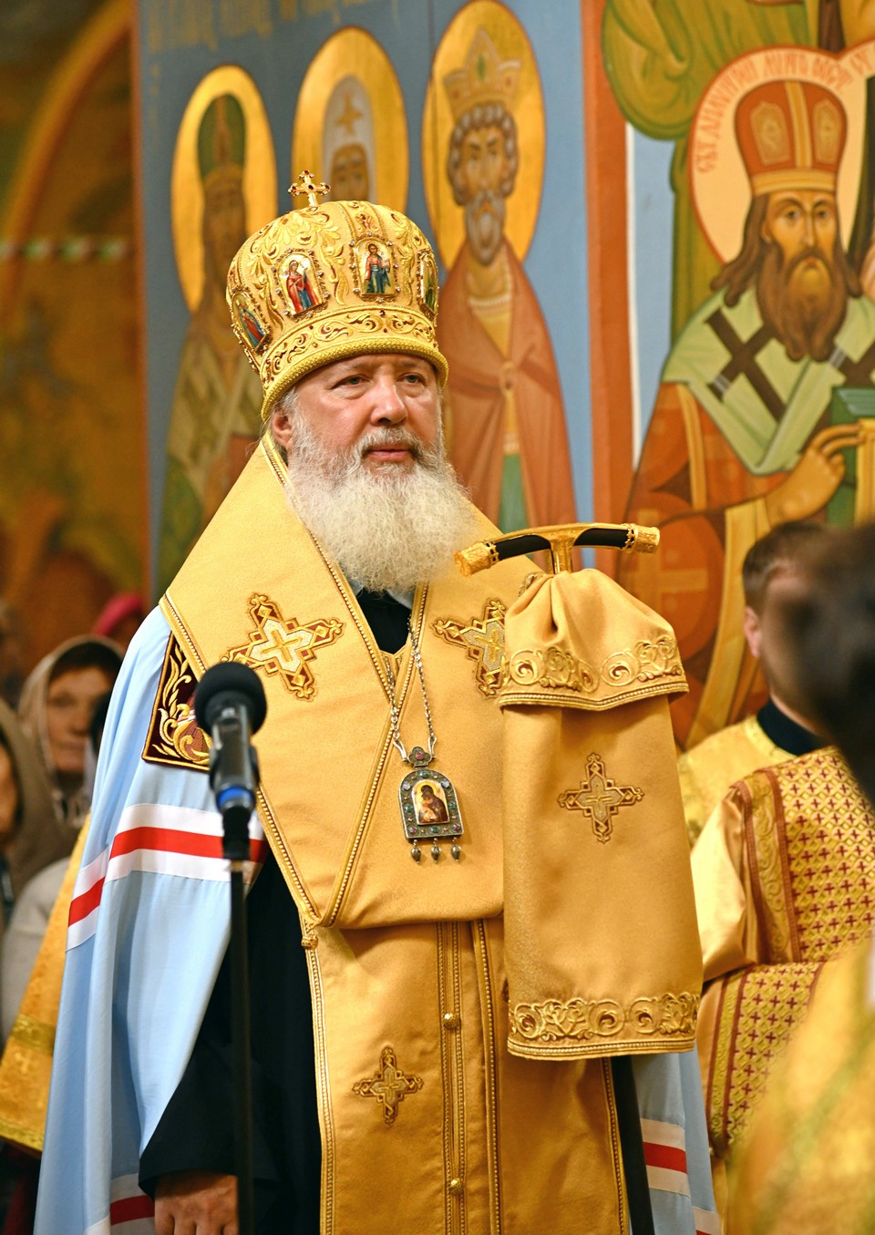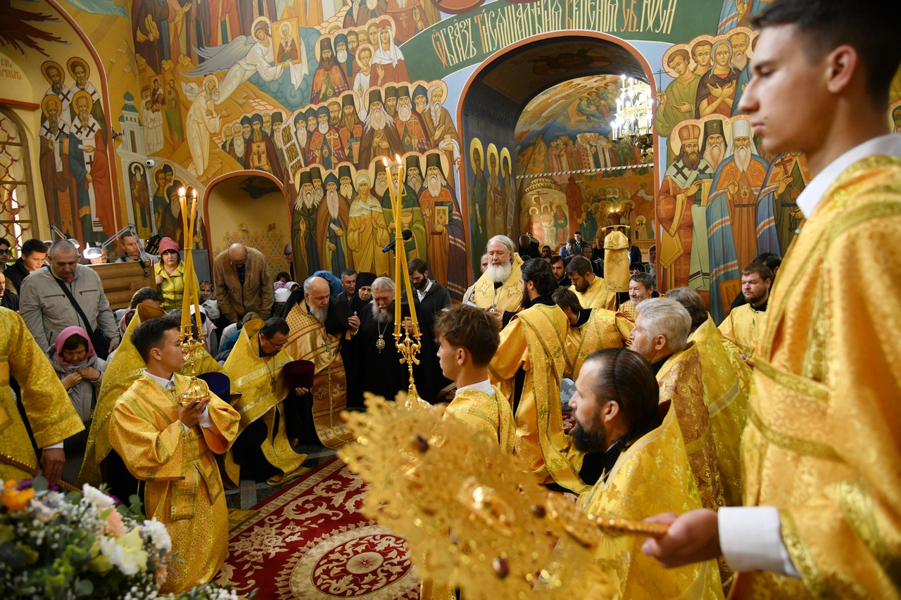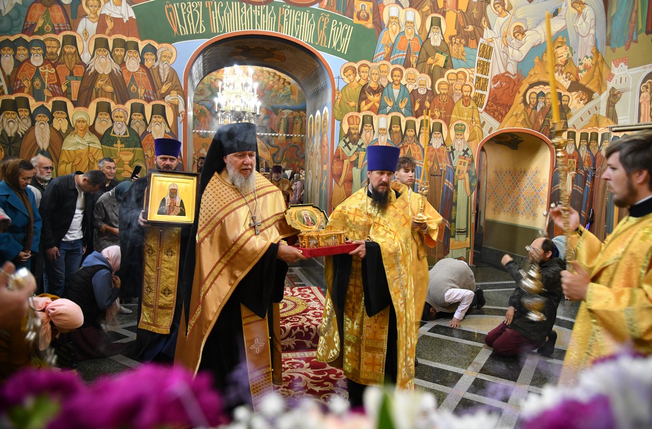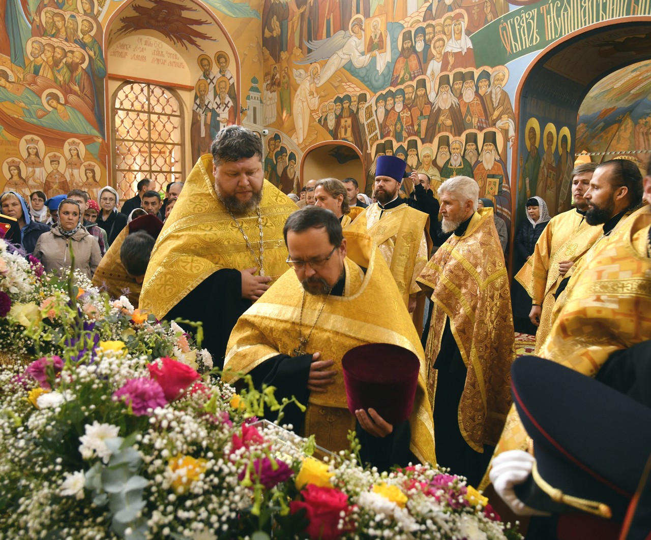 Правящий архиерей отметил, что в юбилейный год русские православные люди особенно молятся святителю Тихону , чтут его память и воспоминают его подвиг с надеждой, что «по его молитвам и примеру Земля наша Русская укрепится в нынешнее непростое время, когда страна наша находится в борении за свою независимость, за свои святыни, за свои традиции. Хочется, чтобы своим явлением Святитель укрепил и нас в вере, укрепил в делании Заповедей Христовых, укрепил в единении и силах, чтобы мы могли являть собою прежде всего Славу Божию, а через это Господь даст нам и все потребности для жизни. Хочется, чтобы мы осознали, что духовное все-таки приоритетнее материального»; «хочется, чтобы все: и руководители наши, и простые люди - больше думали об общем, думали о России и её нуждах. Чтобы каждый вкладывал свою толику в дело, её жизнь и прославление. И святитель Тихон являет нам свой подвиг, пример и свою молитвенную силу пред Господом».