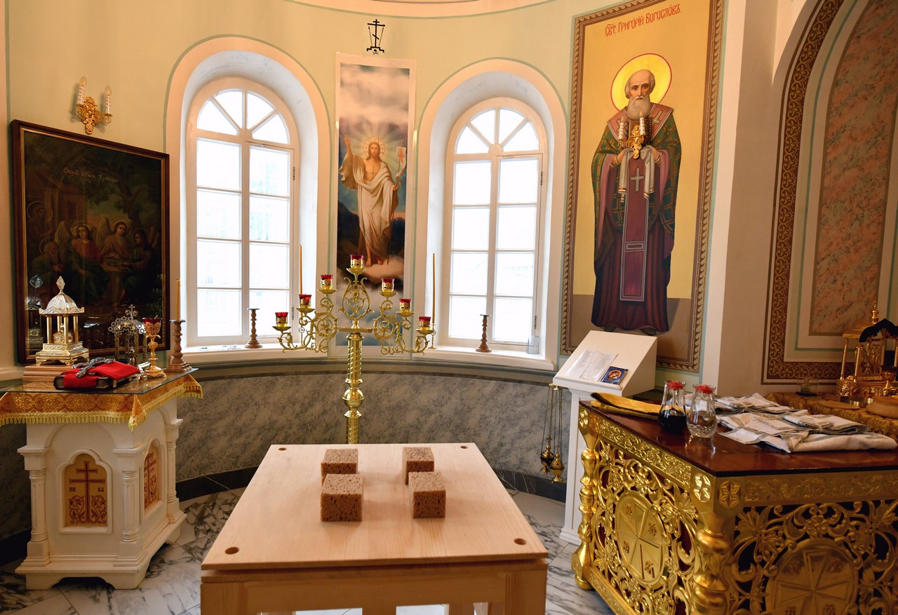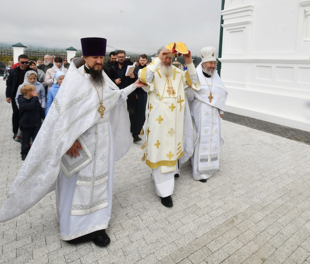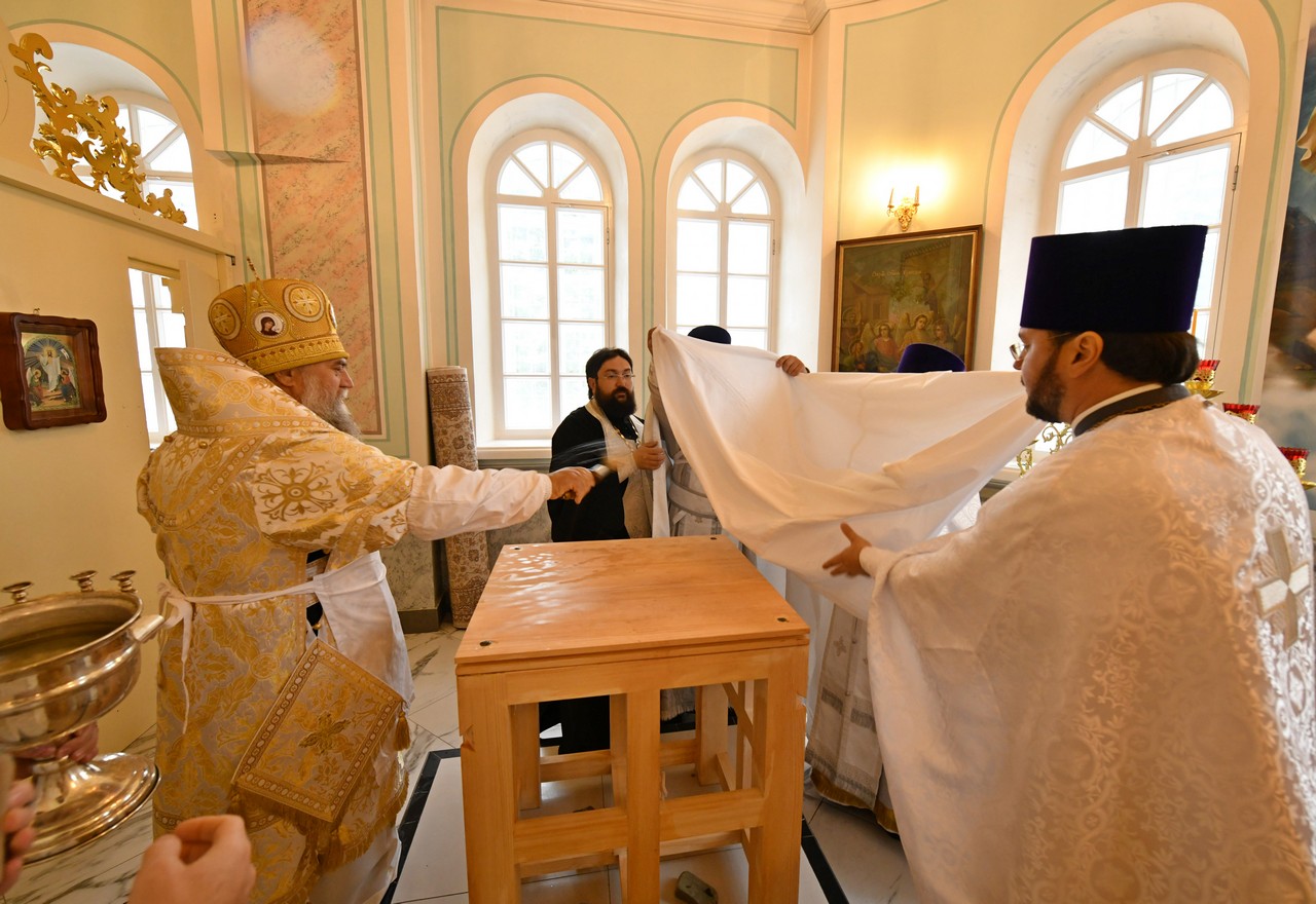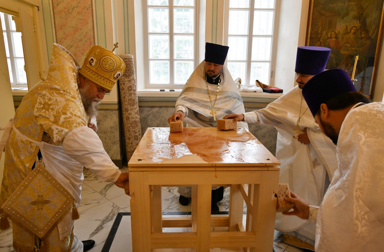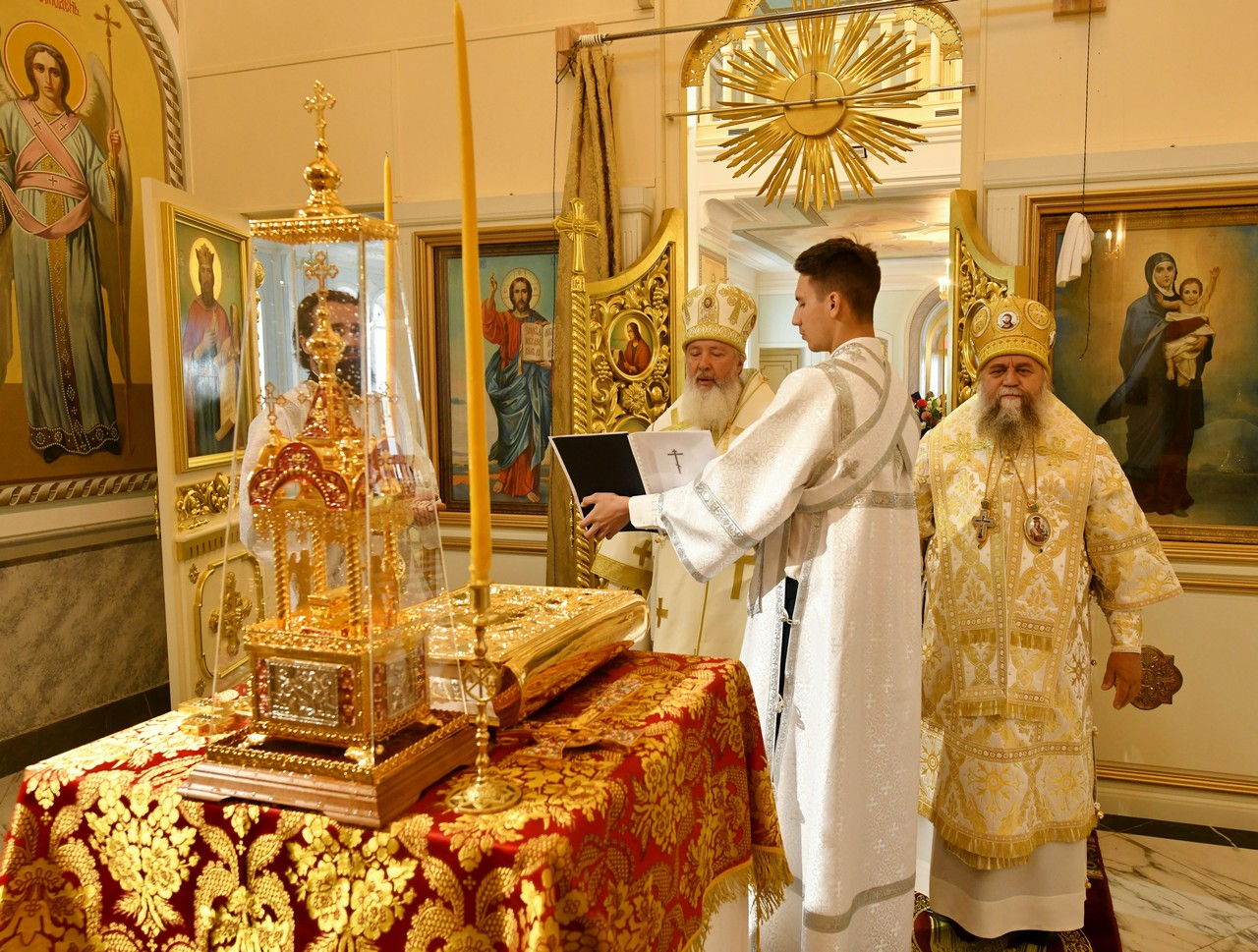 В соборе три придела: главный во имя Воскресения Христова, правый в честь Казанской иконы Божией Матери и левый в честь святителей Николая, Тихона Задонского и Григория Богослова. Казанский придел был освящен в июле, а сегодня освятили главный Воскресенский придел и придел трех святителей.