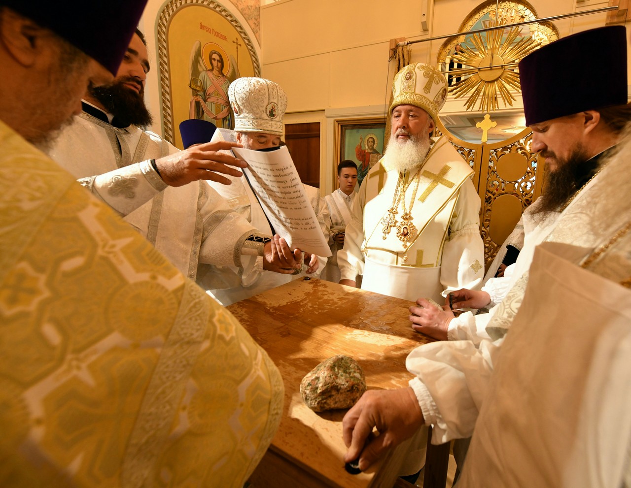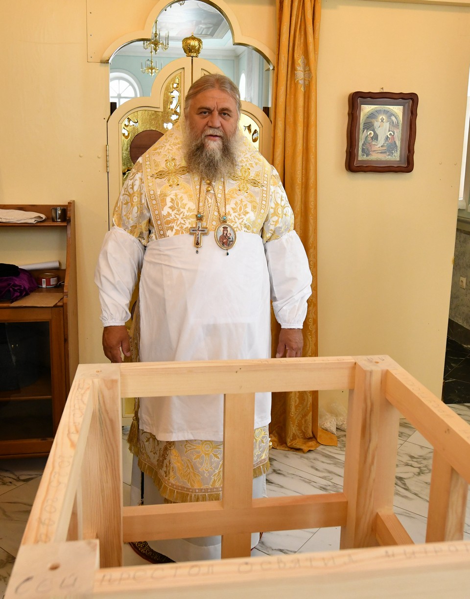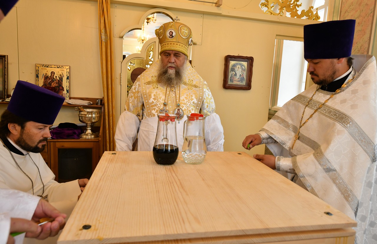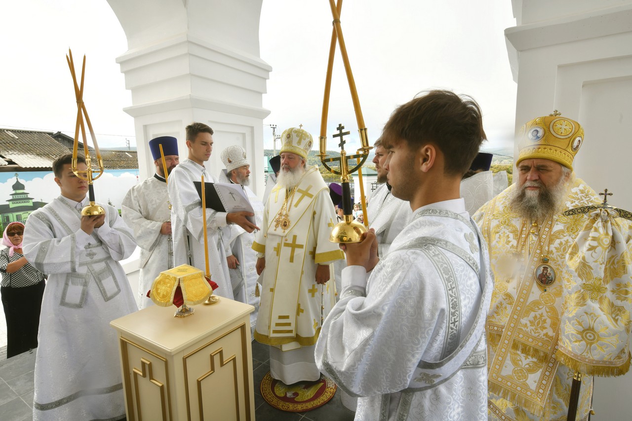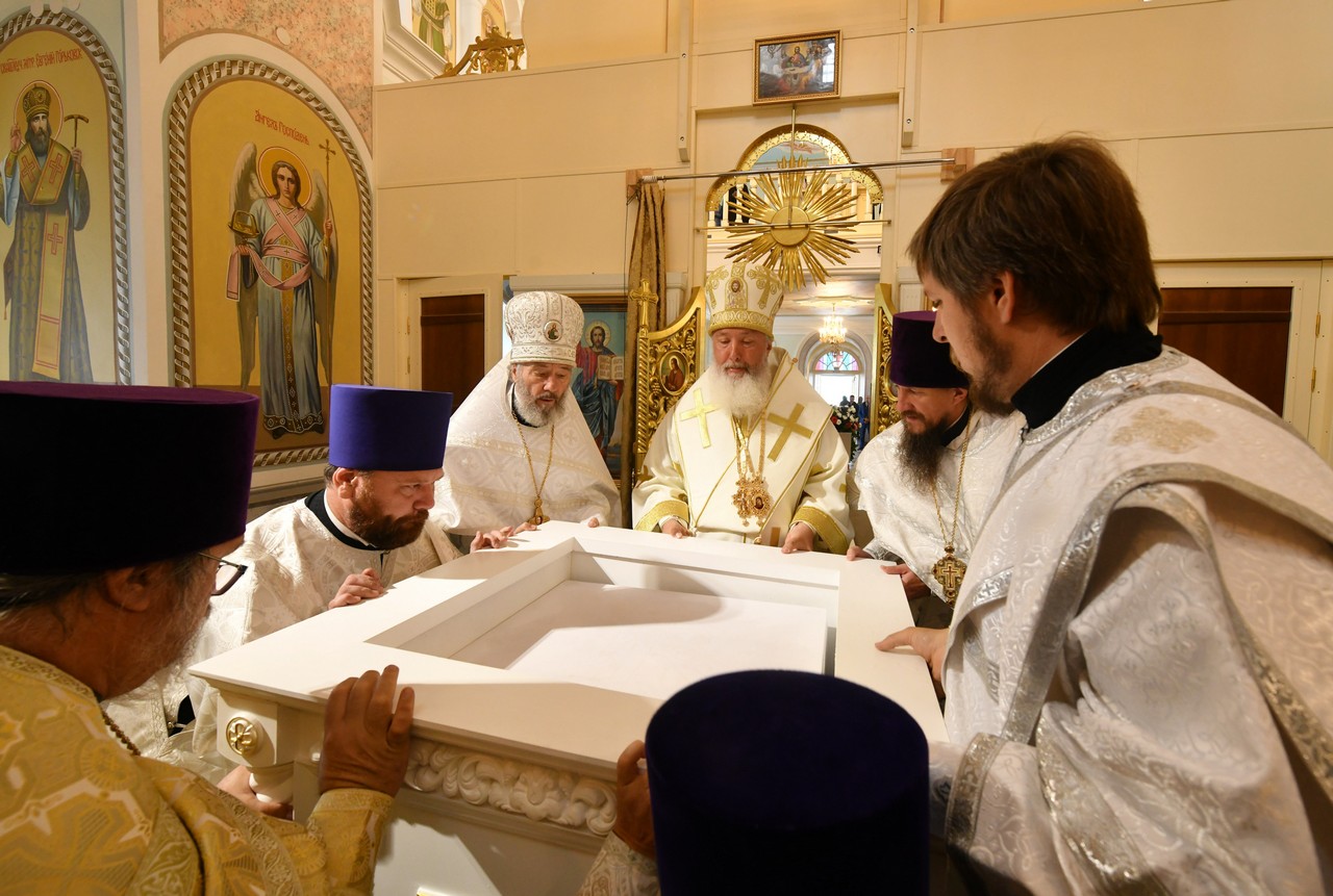 В соборе три придела: главный во имя Воскресения Христова, правый в честь Казанской иконы Божией Матери и левый в честь святителей Николая, Тихона Задонского и Григория Богослова. Казанский придел был освящен в июле, а сегодня освятили главный Воскресенский придел и придел трех святителей.