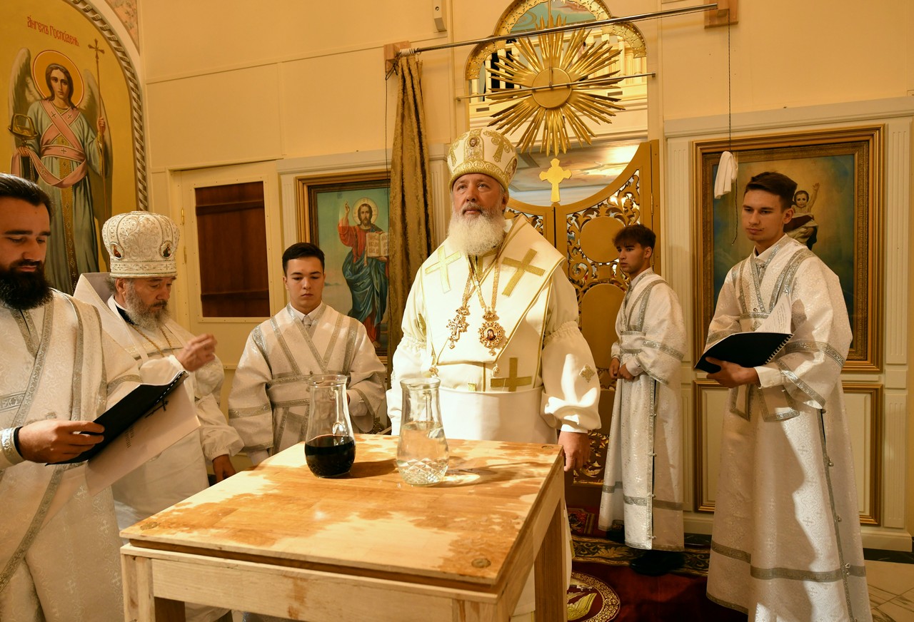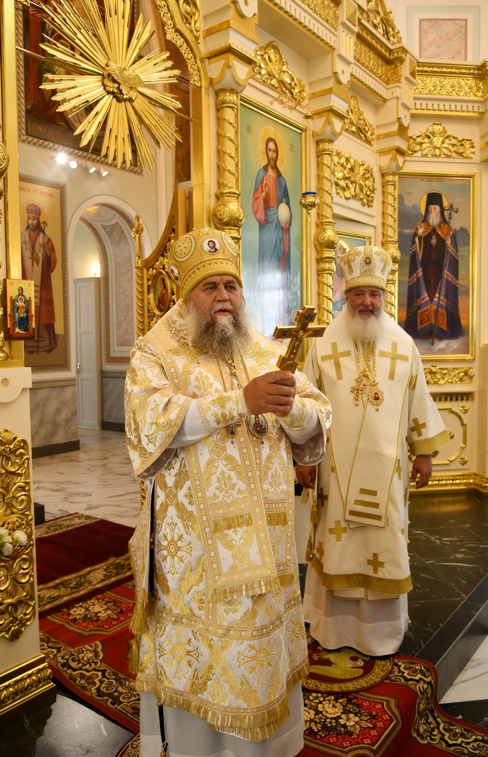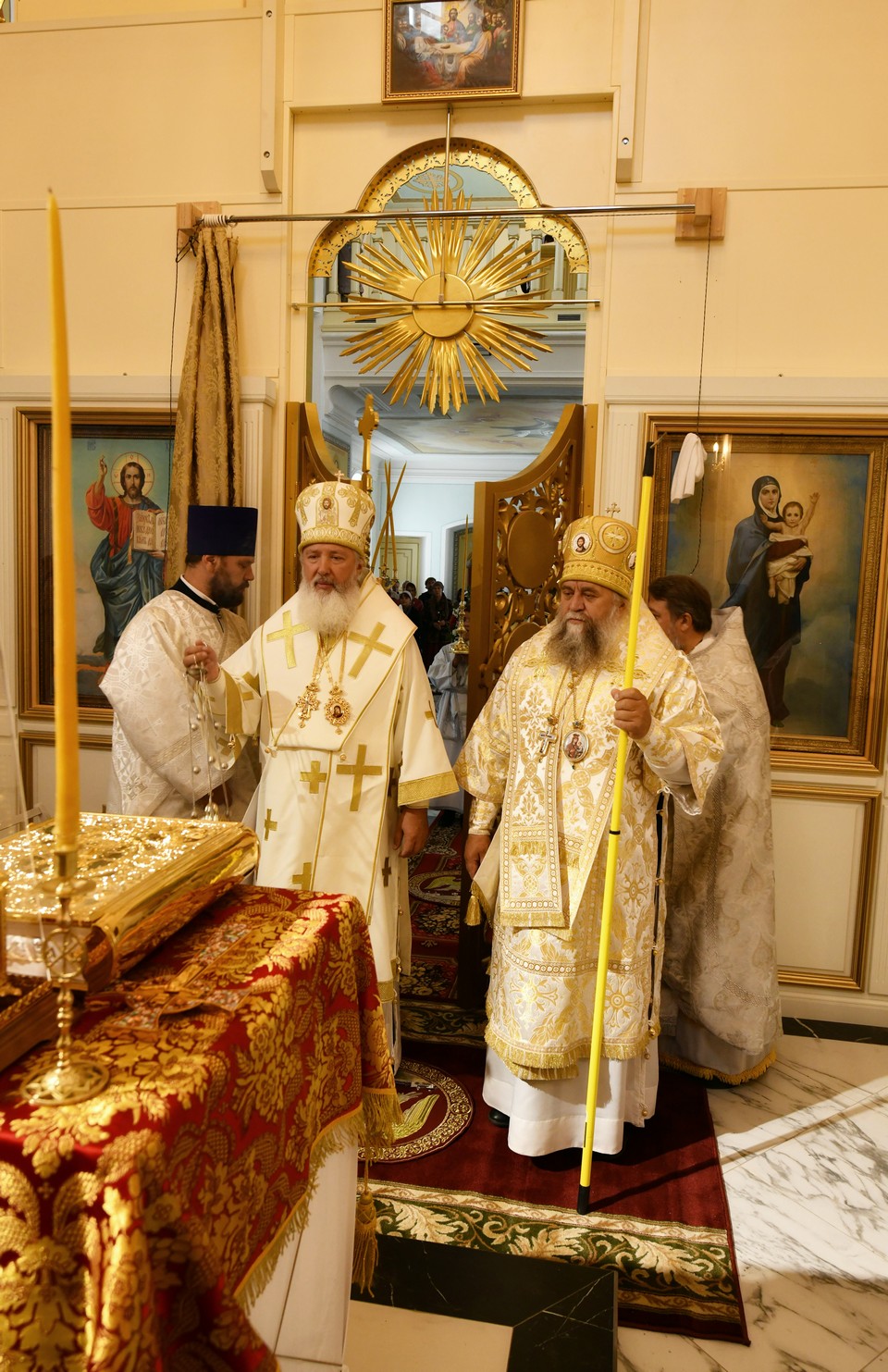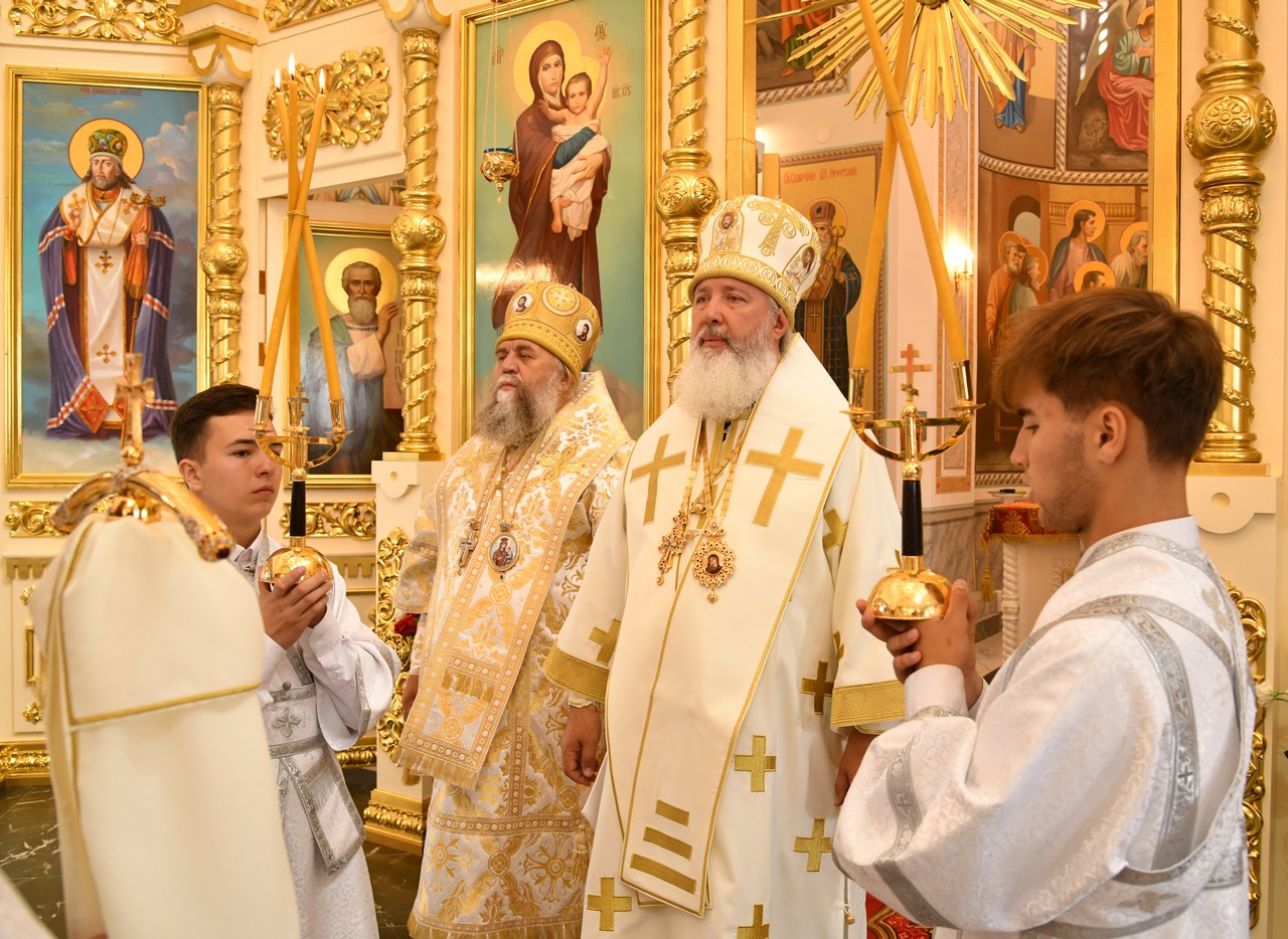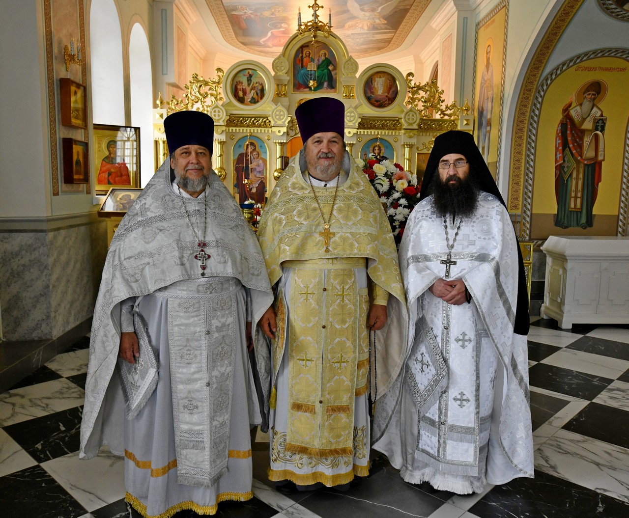 Высокопреосвященнейшим владыкам сослужили 11 священников и 3 диакона: