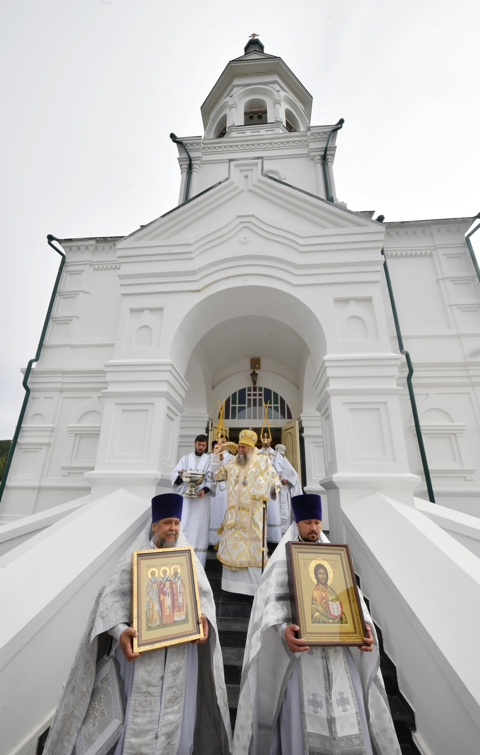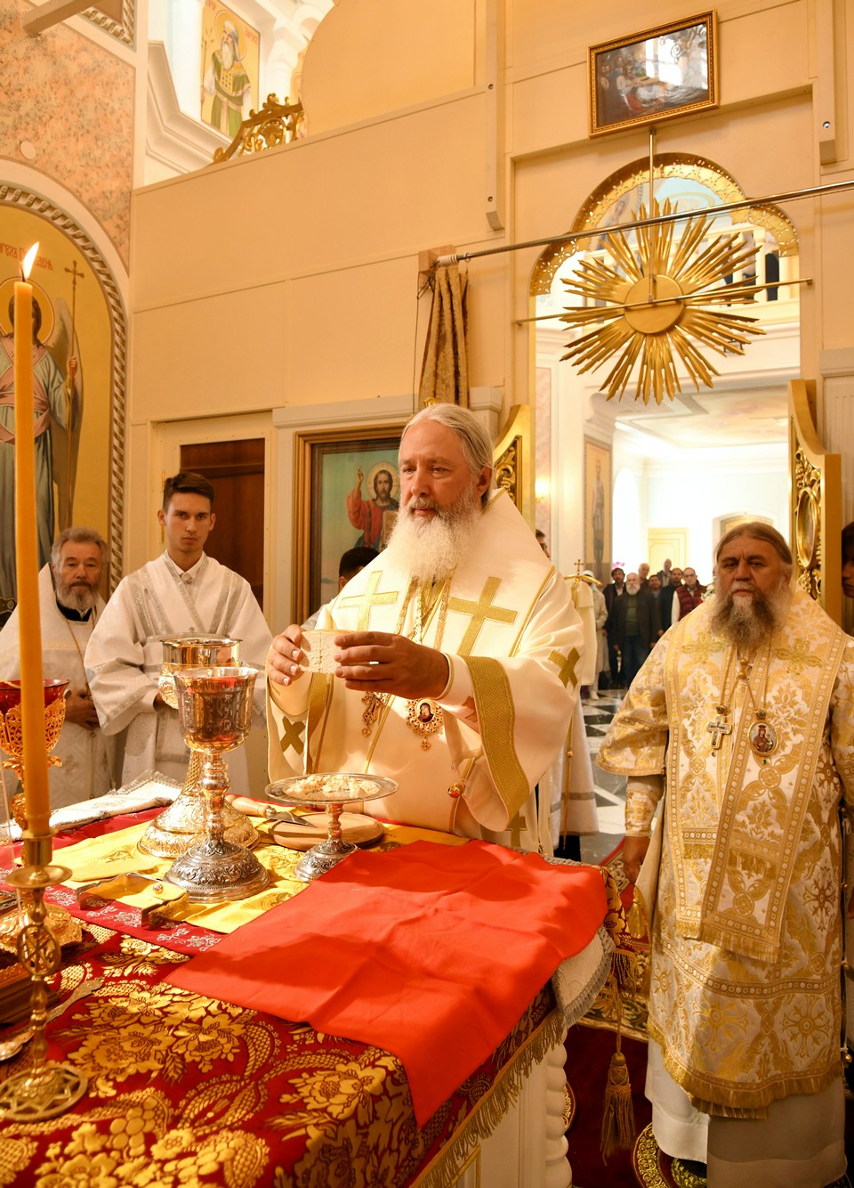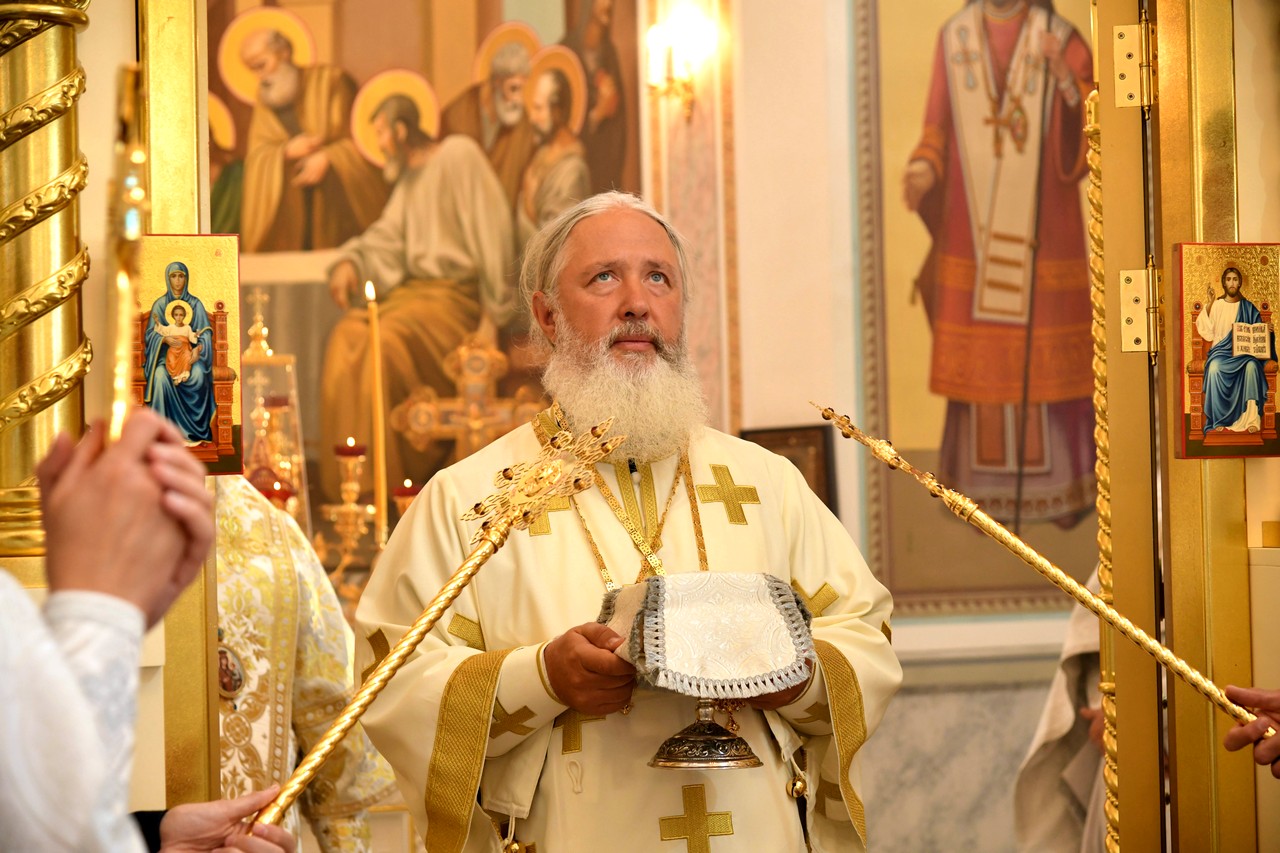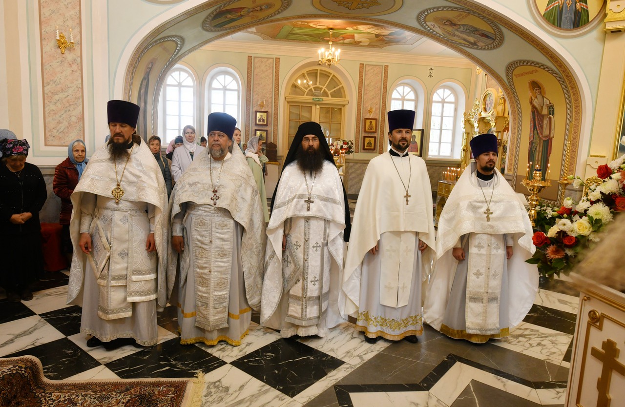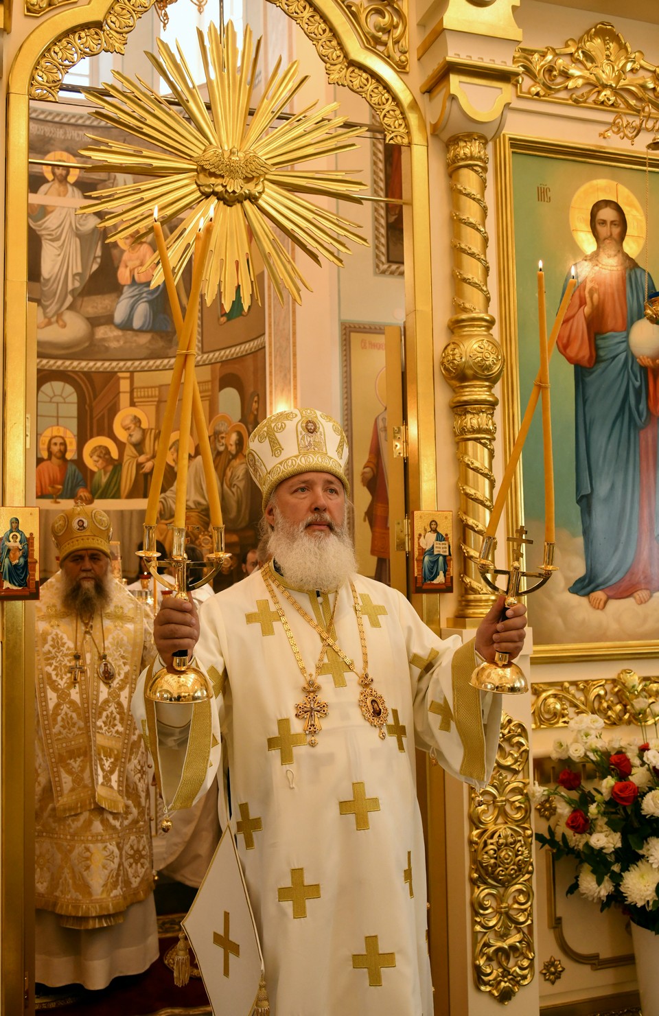 Высокопреосвященнейшим владыкам сослужили 11 священников и 3 диакона: