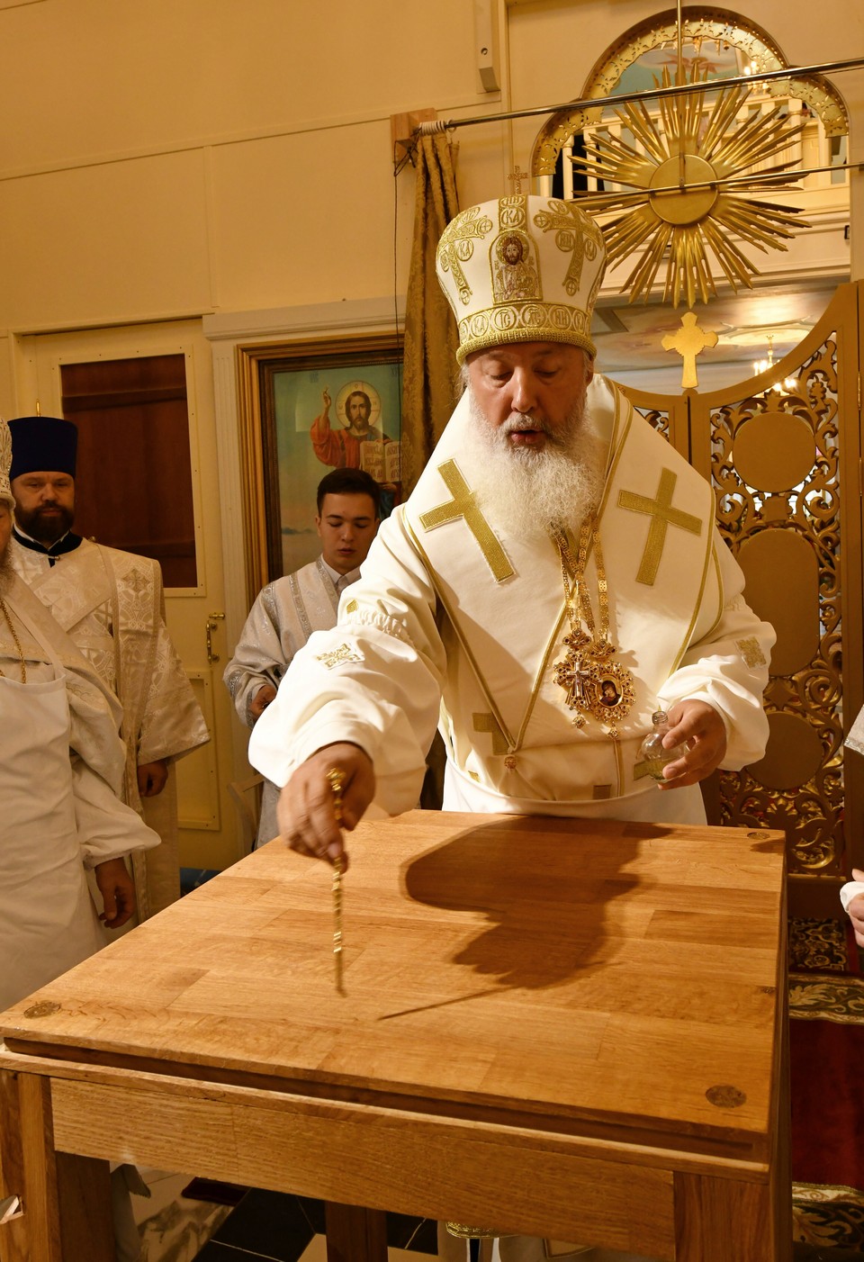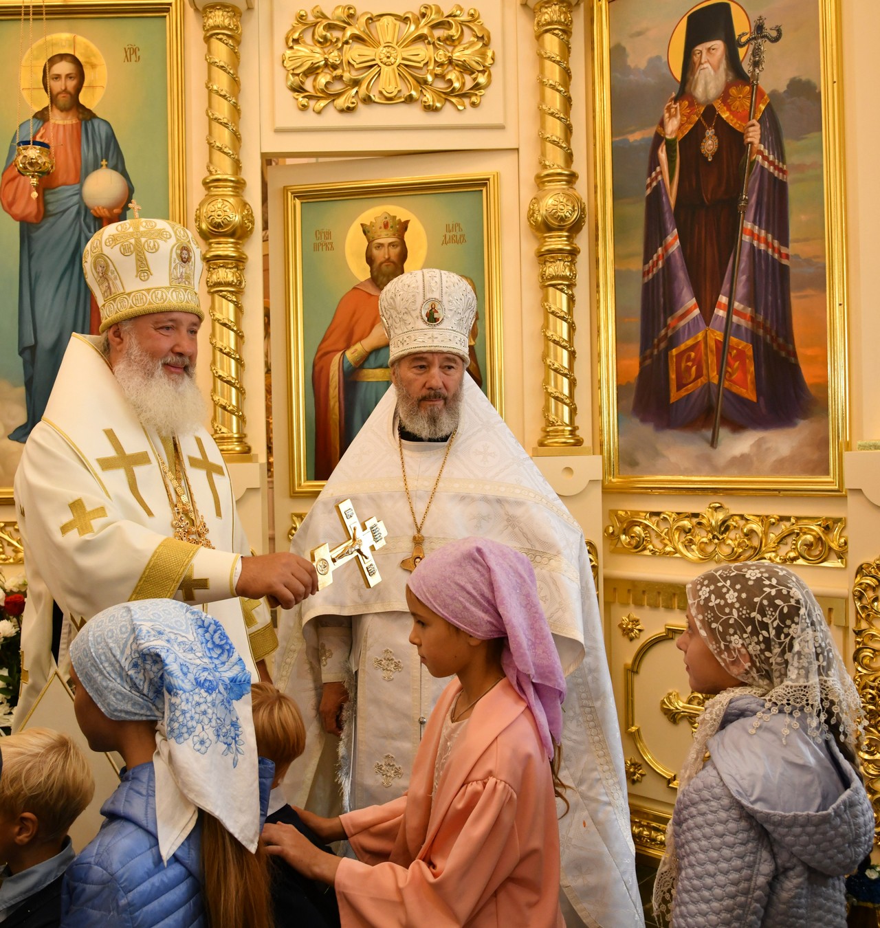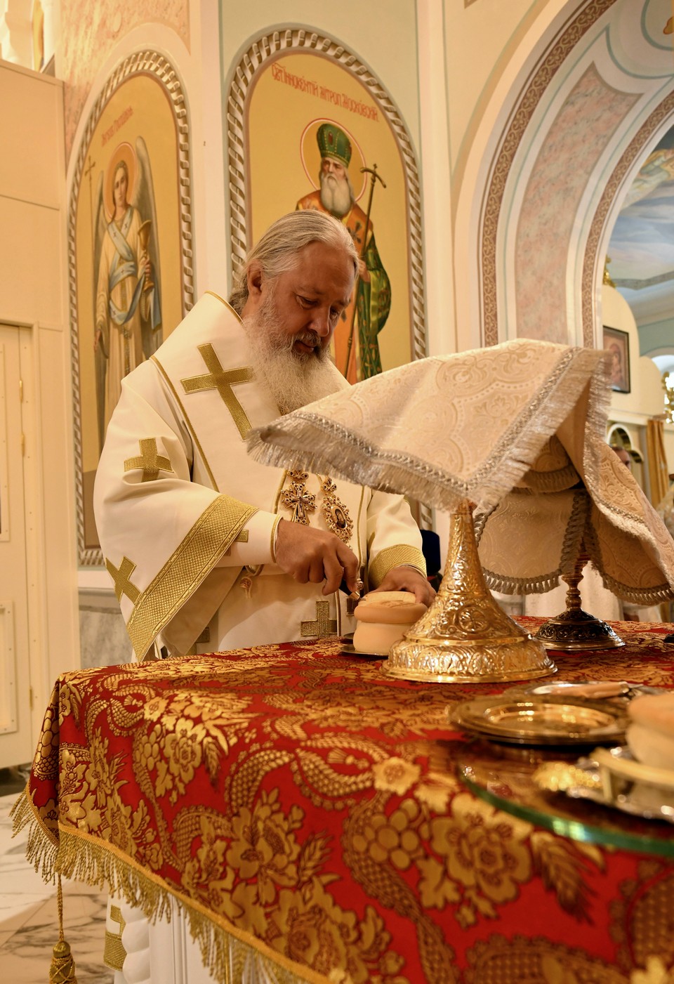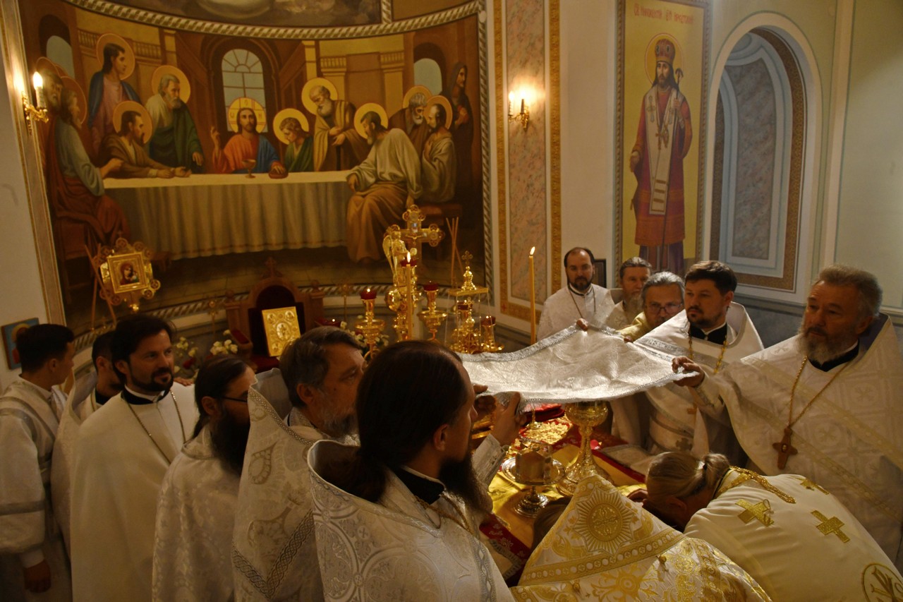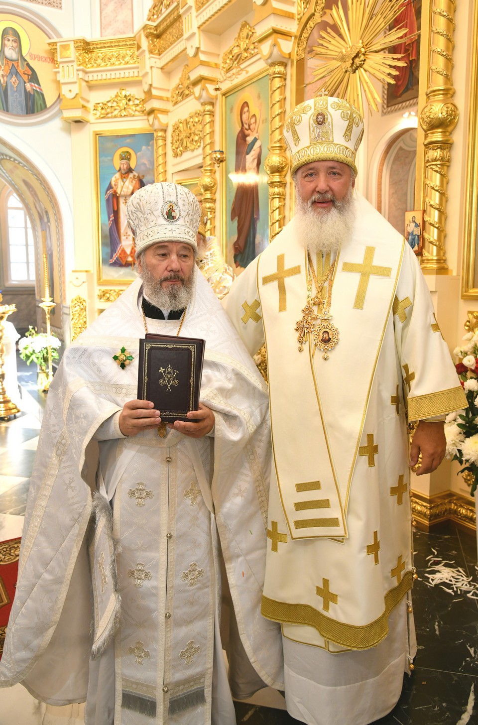 Высокопреосвященнейшим владыкам сослужили 11 священников и 3 диакона: