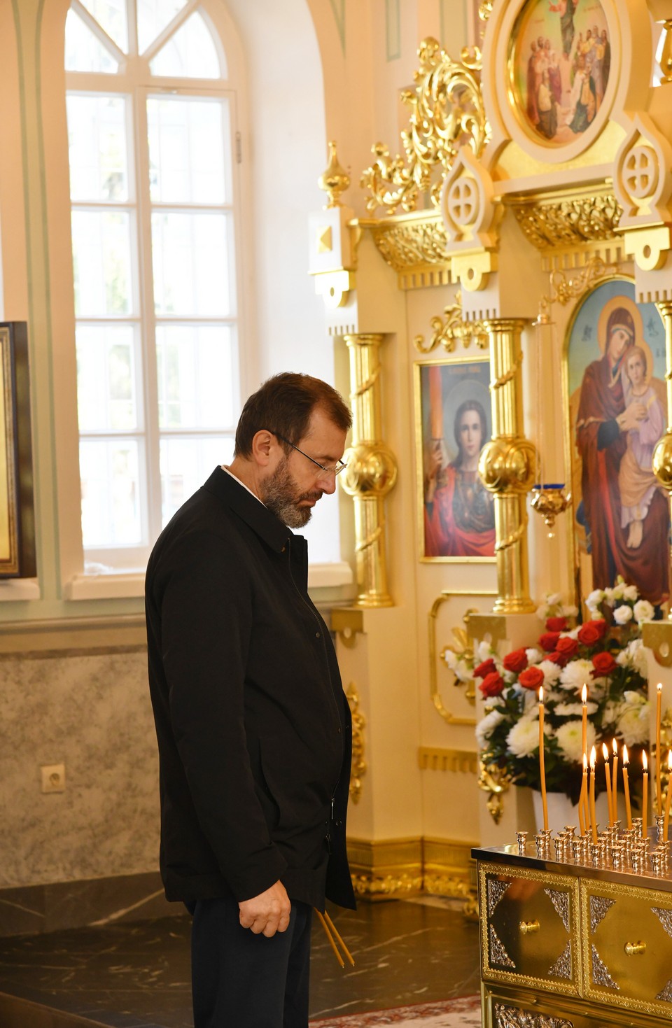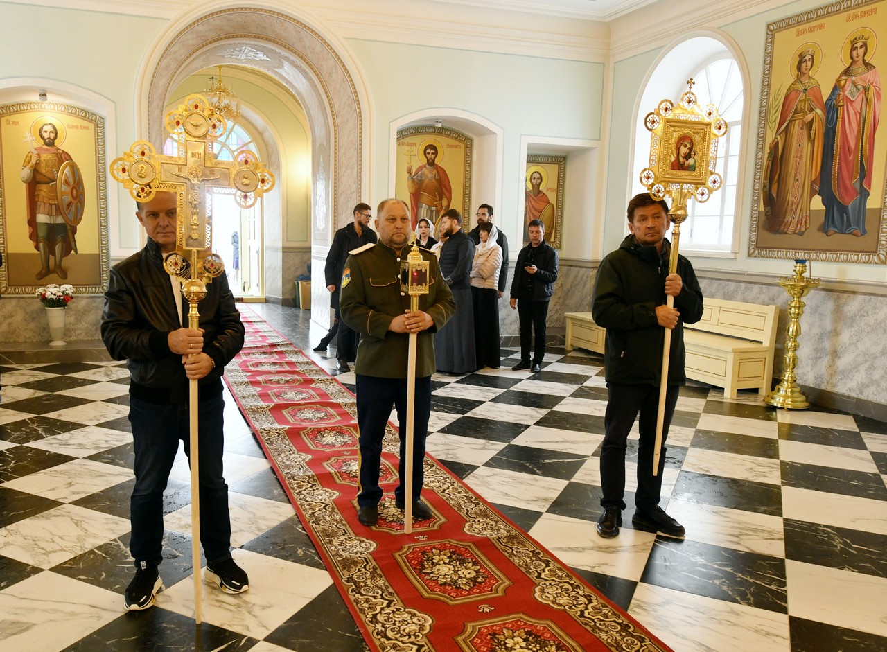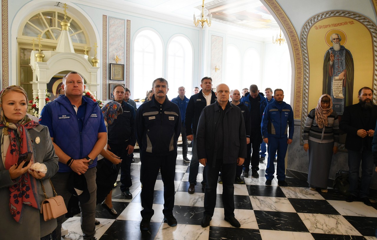 Штаб-квартира ПАО «Газпром» находится в Санкт-Петербурге, поэтому руководители компании преподнесли храму также икону святой блаженной Ксении Петербургской.
