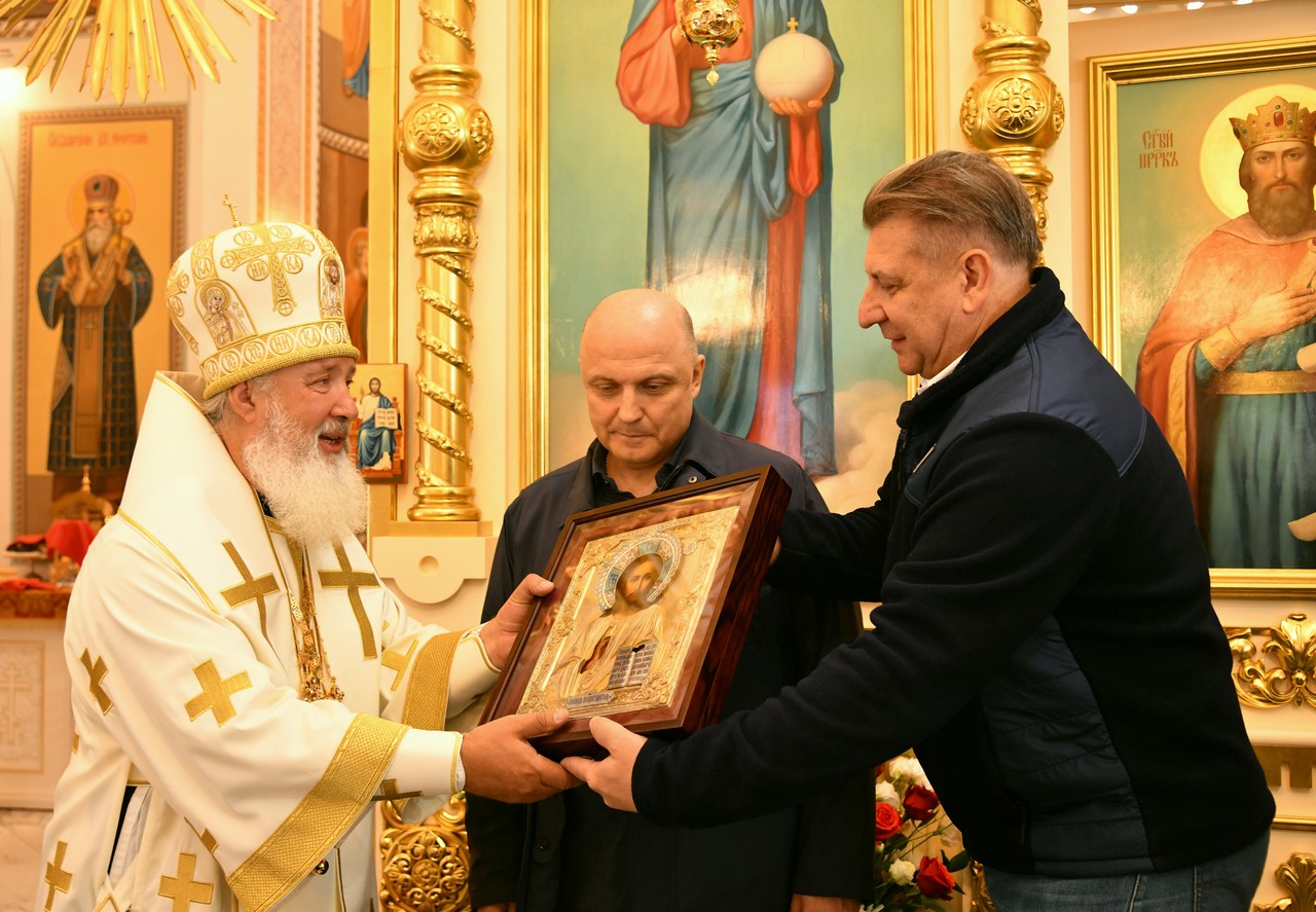Руководители «Газпрома» также преподнесли в дар храму на молитвенную память подарки: от Алексея Борисовича Миллера, председателя правления ПАО «Газпром», заместителя председателя Совета директоров ПАО «Газпром» - отреставрированную икону 19 века «Вознесение Господне» и от всей команды представителей «Газпрома», принимавших участие в восстановлении собора - отреставрированную икону 19 века «Господь Вседержитель».