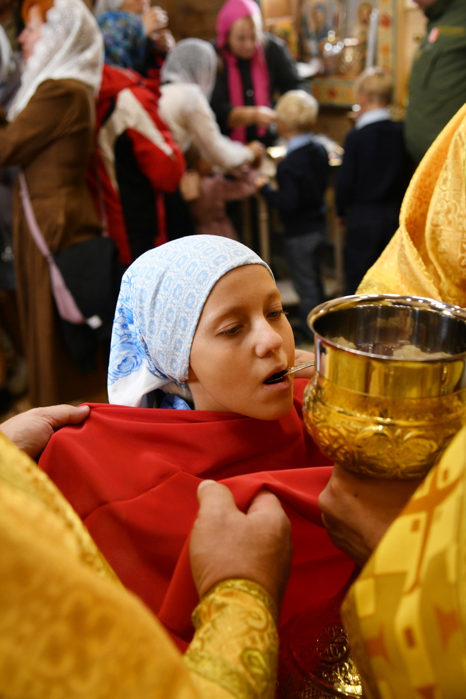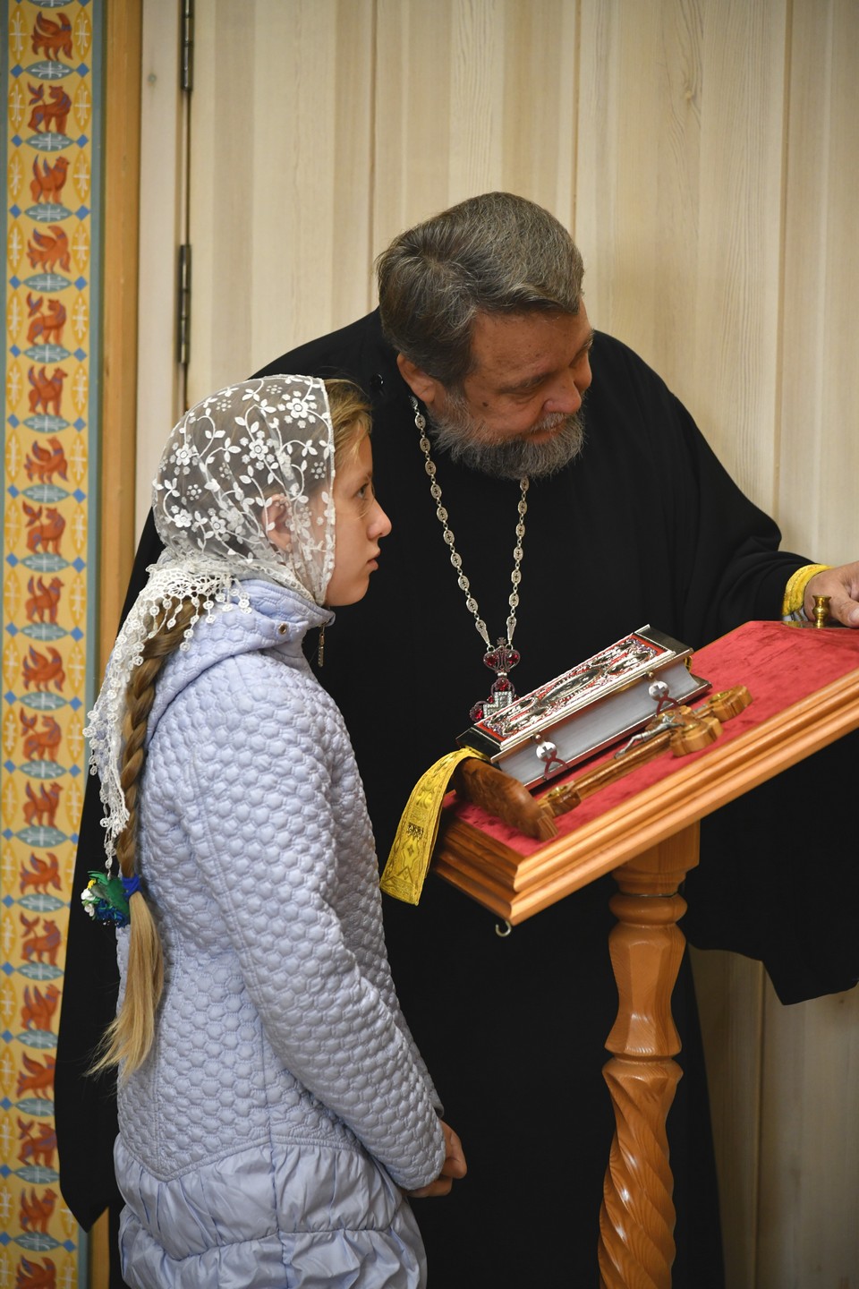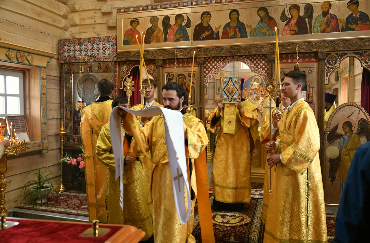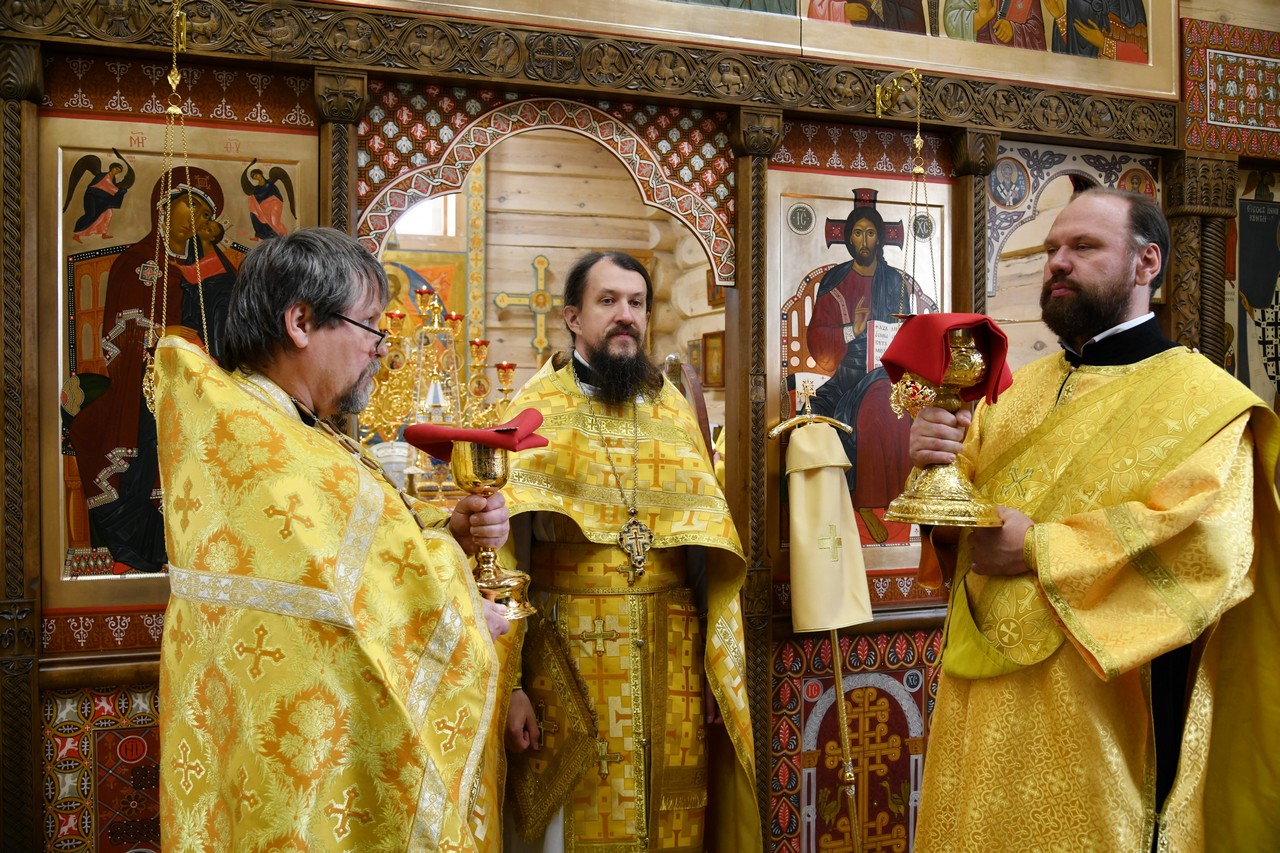 В словах проповеди перед Причастием священник Максим Кузнецов напомнил о подвиге жизненного пути свт.Иннокентия (Вениаминова), особо подчеркнув горячую веру, послушание Промыслу Божию и активную миссионерскую деятельность святого, которую он проводил с искренней любовью к своим пасомым.