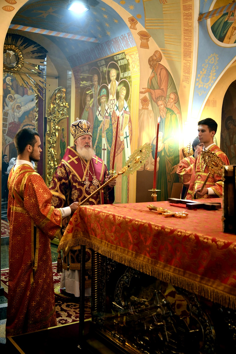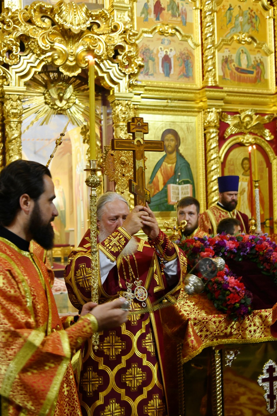 26 сентября, в канун праздника Воздвижения Честного и Животворящего Креста Господня, владыка Максимилиан благоговейно совершил вечернее богослужение с одним из самых красивых Чинов - Чином Воздвижения Креста в Богоявленском кафедральном соборе г. Иркутска.