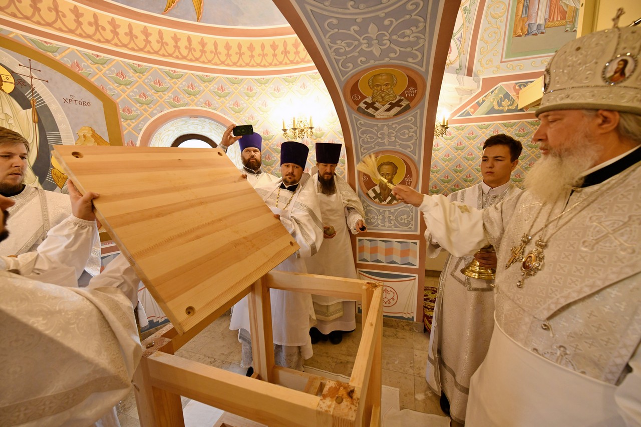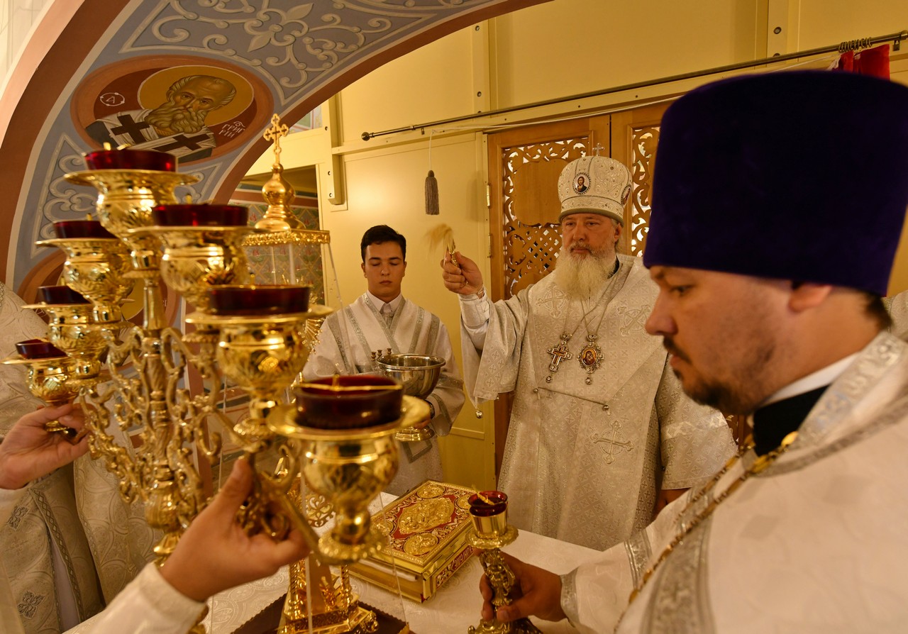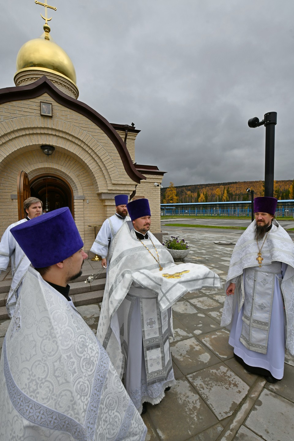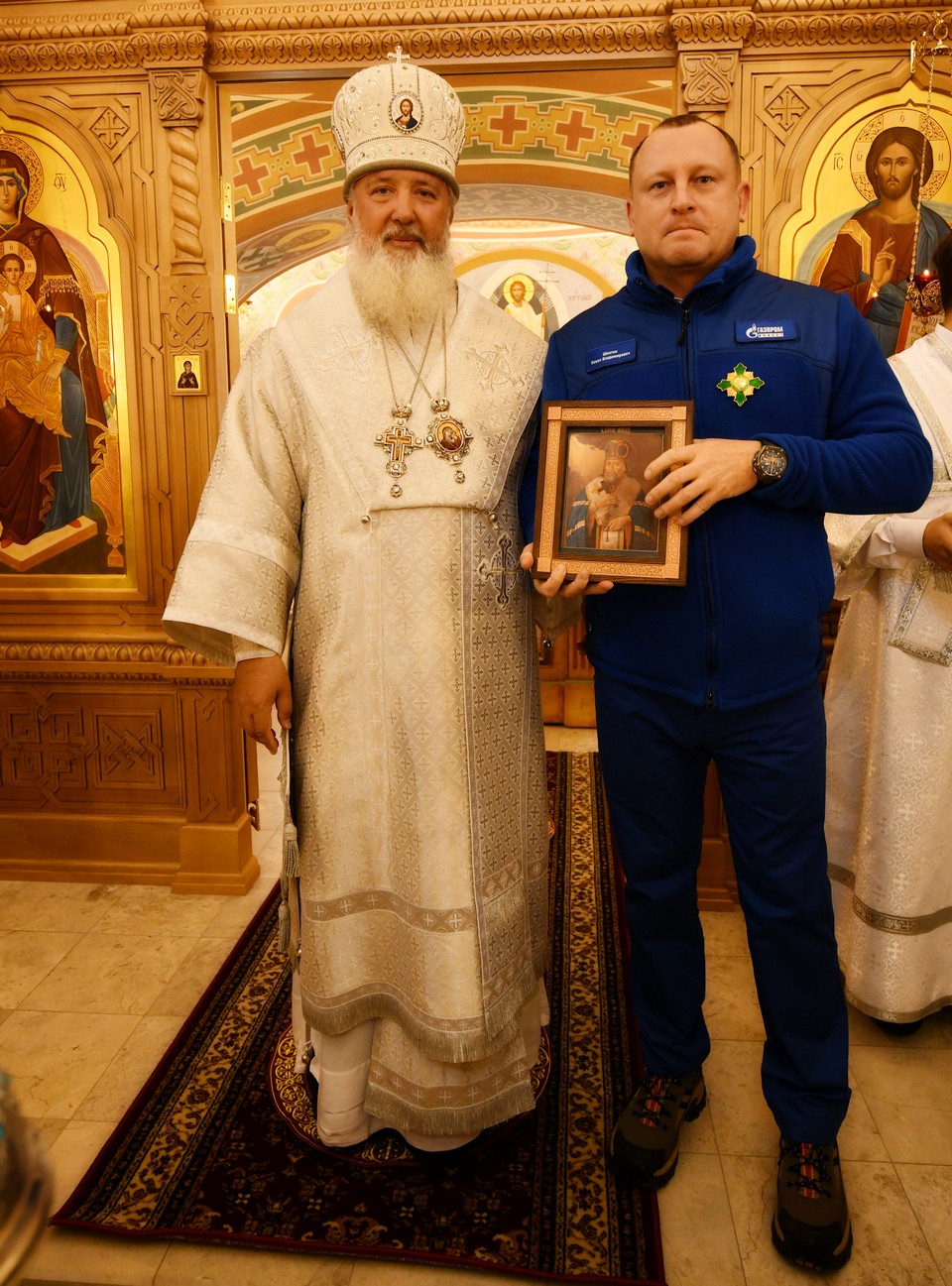 Владыка подчеркнул, что храм по молитвам Святителя был возведен очень быстро и будет духовной поддержки для всех верующих вахтового поселка, чтобы и они, находясь долгое время вдали от дома, могли помолиться и причаститься Святых Христовых Таин.