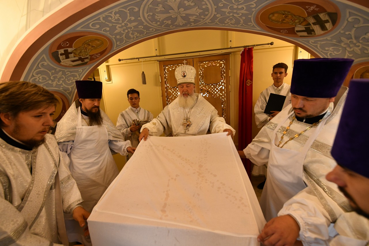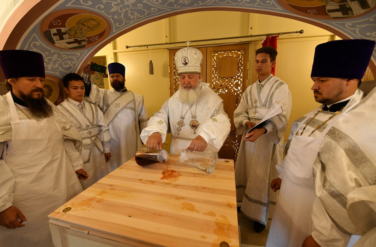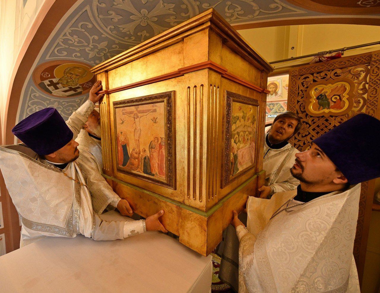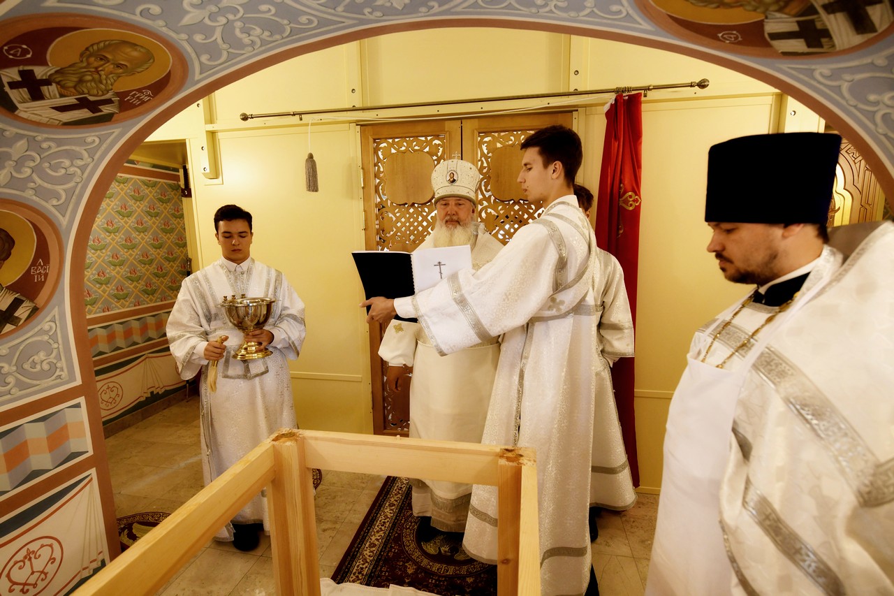 Владыка подчеркнул, что храм по молитвам Святителя был возведен очень быстро и будет духовной поддержки для всех верующих вахтового поселка, чтобы и они, находясь долгое время вдали от дома, могли помолиться и причаститься Святых Христовых Таин.