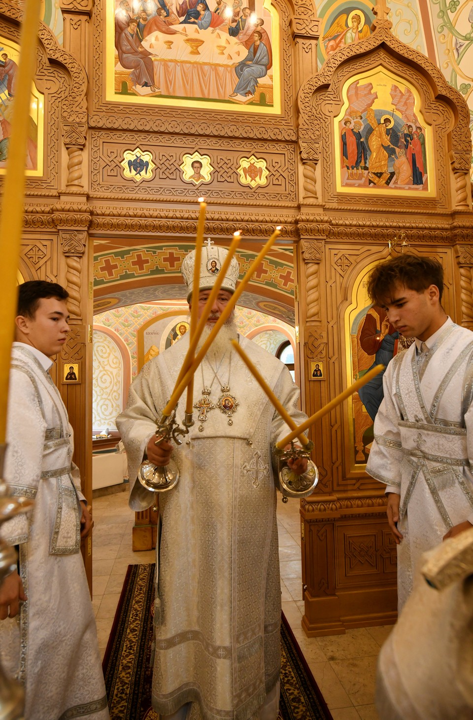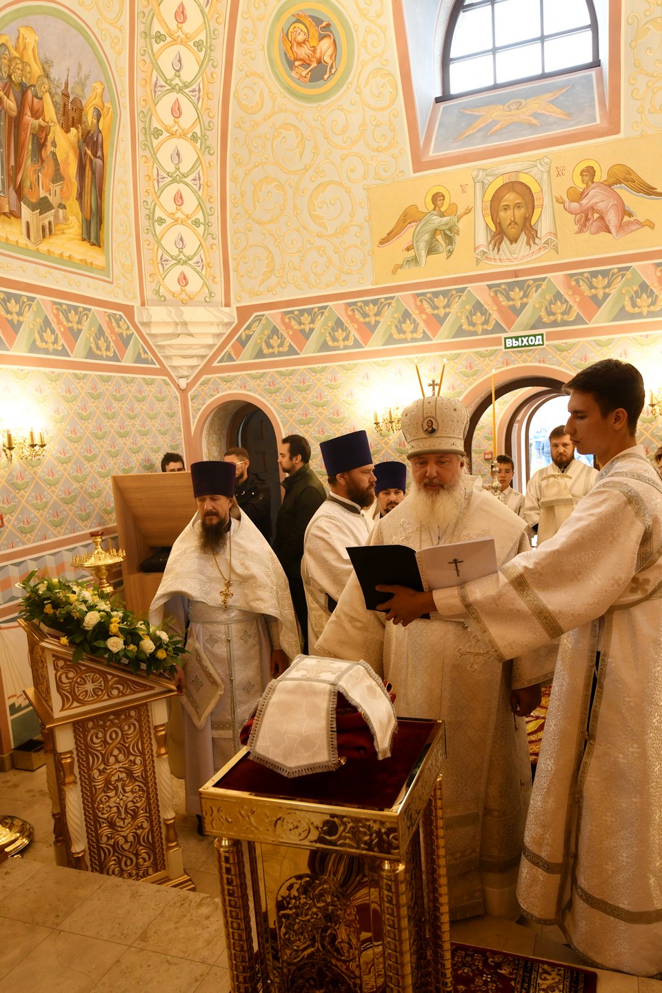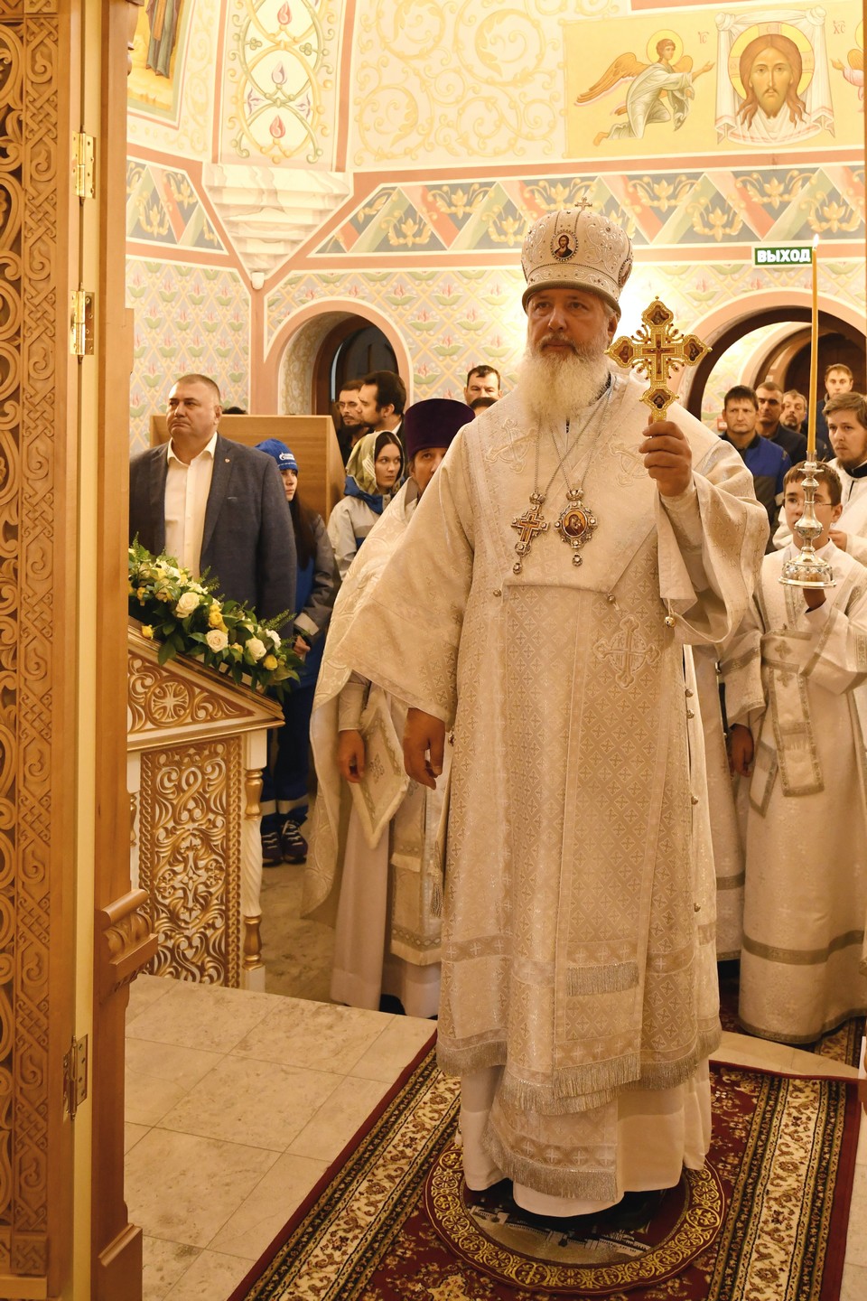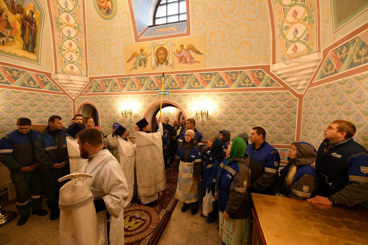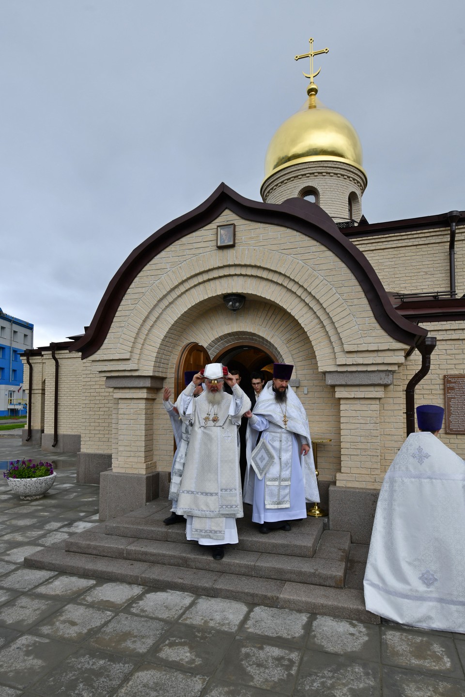 Поздравляя присутствующих с освящением храма, митрополит Максимилиан, напомнил, что храм в вахтовом посёлке был задуман 5-6 лет назад, чтобы благословение Божие пребывало на тружениках, которые добывают здесь газ для Родины. Имя Небесного покровителя храма - епископа Иннокентия Иркутского - было выбрано в беседе владыки с Павлом Владимировичем Шкитиным не случайно: «как покровителя земли Сибирской, главного молитвенника пред Престолом Божиим за эту землю и за этих людей».