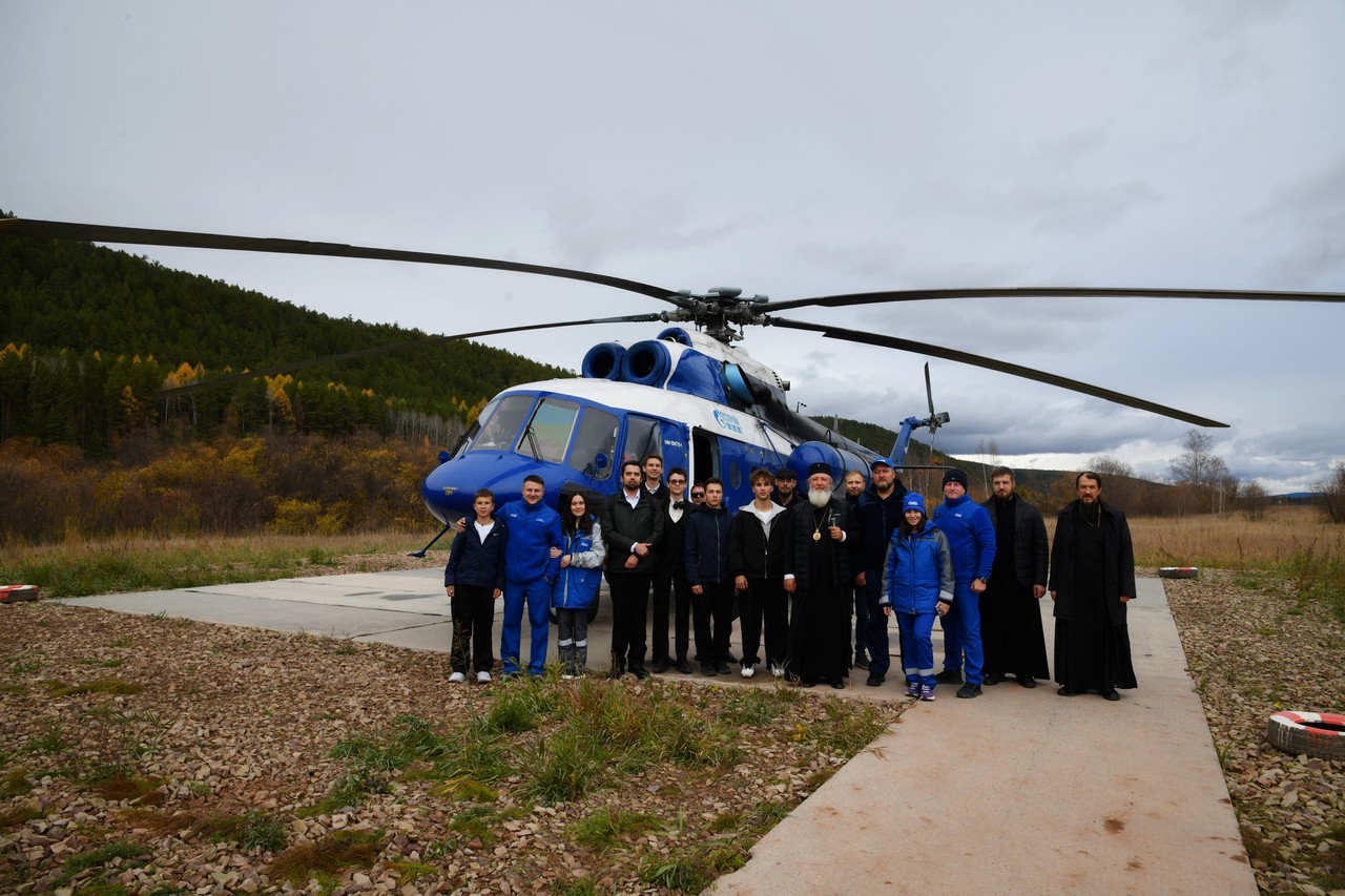 На место освящения храма и обратно владыка и сопровождающие его священники, диаконы и иподиаконы добирались на вертолете компании «Газпром», любезно предоставленном хозяевами.